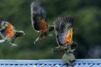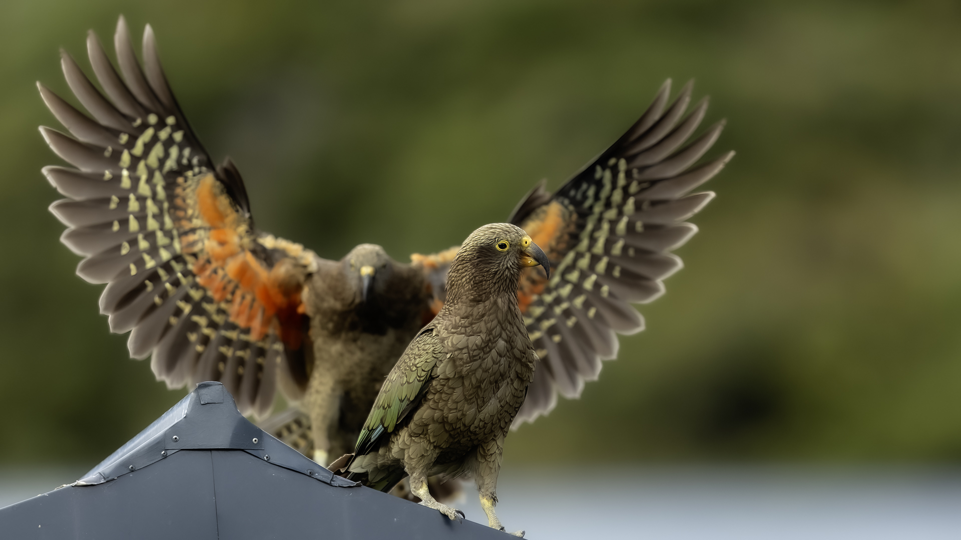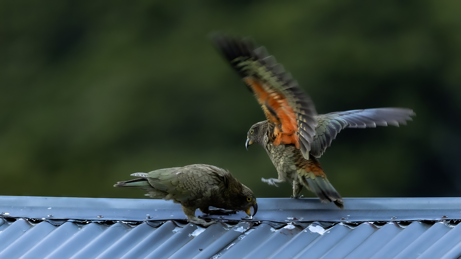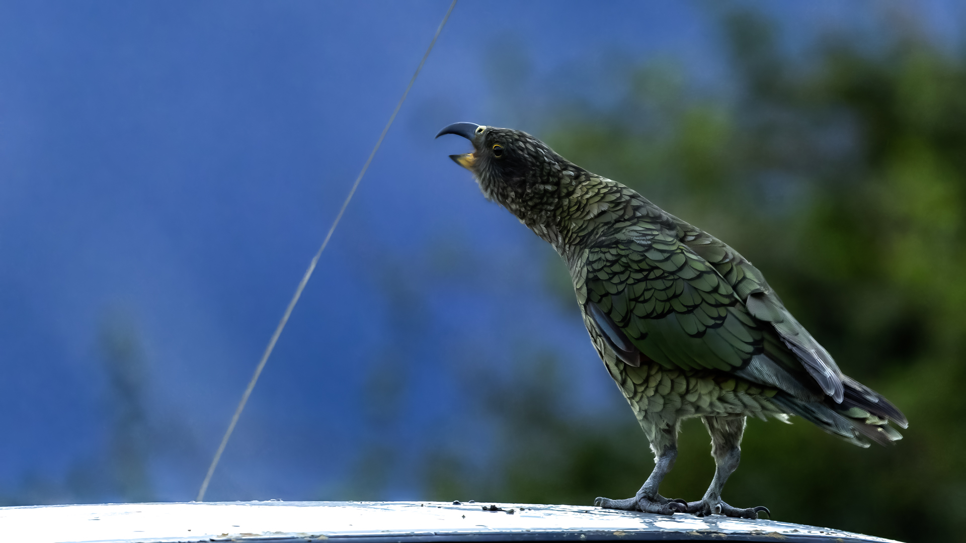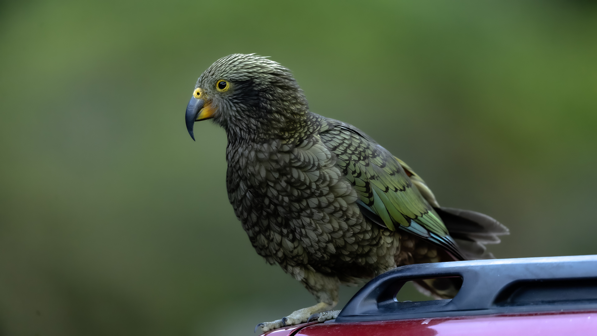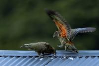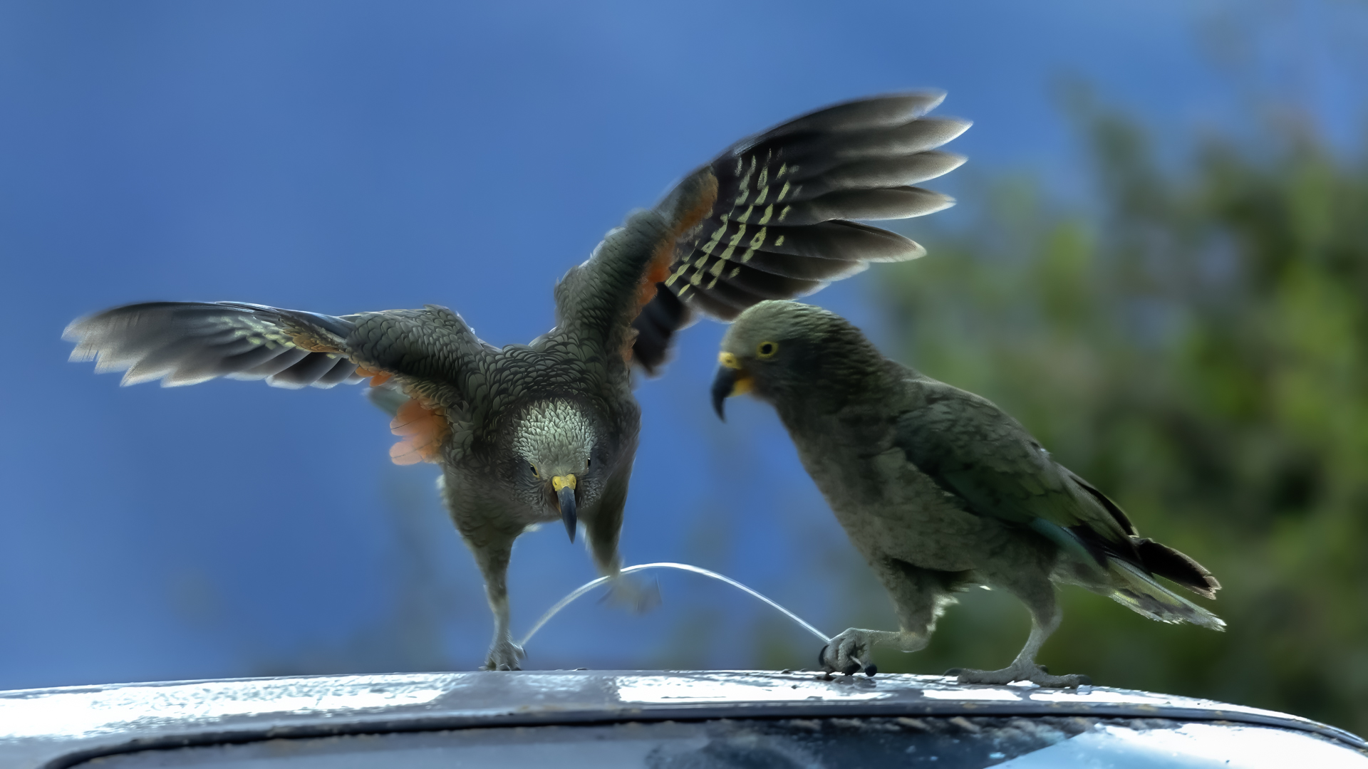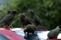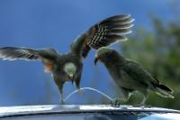 The gallery of New Zealand birds will become part of my website. It will not feature many species, however. This especially applies to some endemic New Zealand species. Kea is a conspicuous animal, being the only flying mountain parrot in the world. It mainly inhabits the plateaus of the island. Therefore it is easier to come across in the mountains. When I was checking at the hotel in the mountains, I inquired about this species of bird and the receptionist told me that I would meet the bird before sunset not far away from the hotel. I was really surprised by this information, as the bird is very rare and it is impossible to find it anywhere else in the world. Just before sunrise, I took my equipment, the photo camera and a microphone and when I was leaving the hotel, I could hear a distinct noise made by a group of birds. When I approached the place from which the noise was coming I could see many parrots playing between cars and attracted to anything made of rubber. They started playing with car antennas and wipers. Unluckily, it was too dark to start taking photos, but I could record the sounds that the birds were producing. When it finally dawned, I took some photos of these parrots. Some of the photos, however, are blurred, as my camera had lens with too long focal length. Unfortunately, a group of Japanese tourists left the hotel and when they started to take photos of the view, the birds started flying away. I managed to take one dynamic photograph that captures the beauty of this bird’s plumage. Kea is a large parrot, having the wingspan of 90 cm. It only inhabits the southern island of New Zealand. it follows the same diet as other species of parrots. But it also visits dustbins in search of human leftovers. It also hunts for other animals. I wish I had managed to photograph them playing in the park, where they were turning around, laying on the back, teasing other birds. That view offered to a photographer many interesting themes. The first gallery pictures presents birds in their natural habitat and, frankly speaking, these photo were difficult to take. The others pictures shows their assault on the cars and roofs and shows them in an urban area. I strongly recommend to view my website and I hope you see the birds natural everyday behaviour.