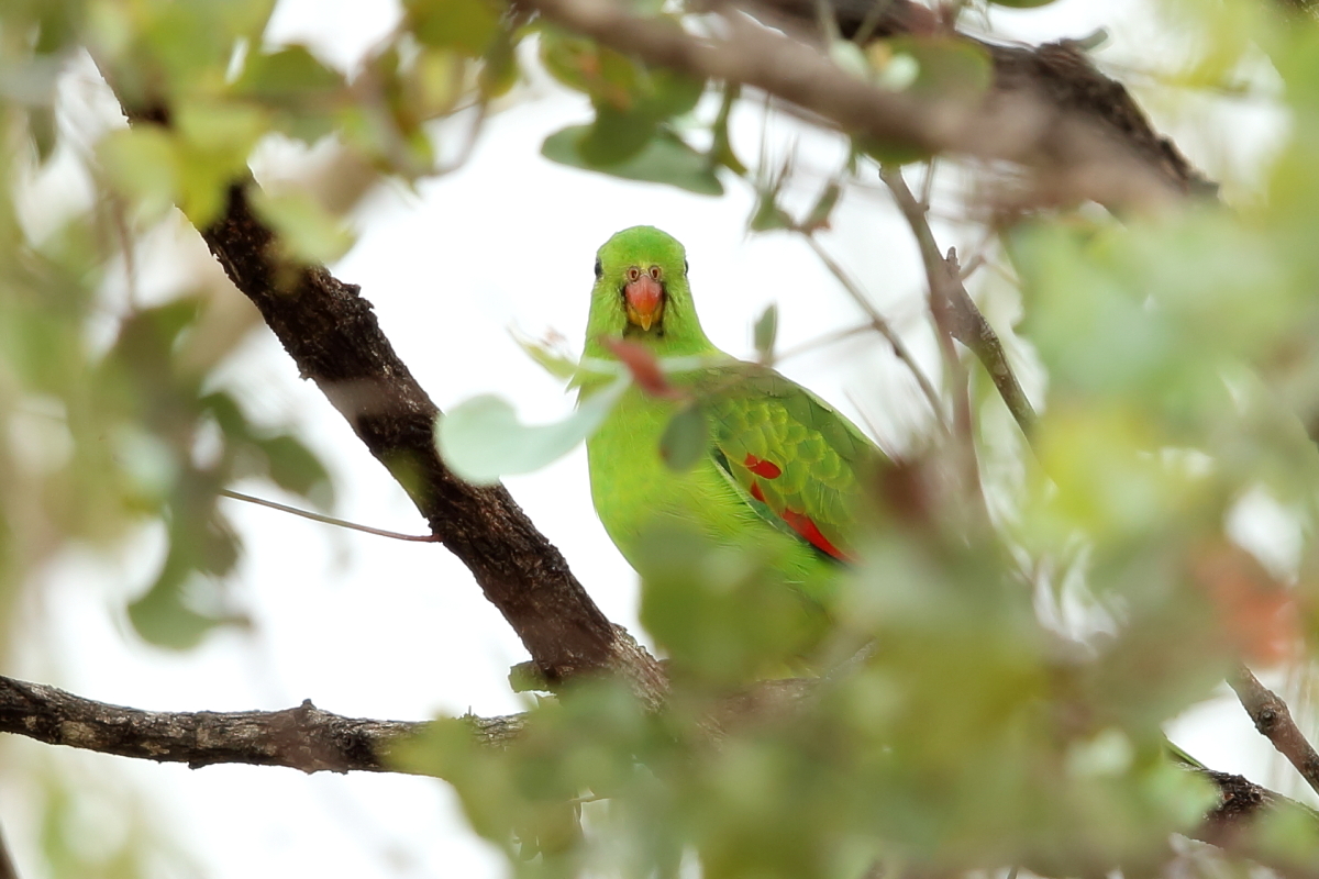 Well, unfortunately such a beautiful bird has so few documentary photos. Unfortunately, but the Red-winged Parrot did not want to cooperate. It kept a large distance and watched me closely. But here we have some photos to publish. Due to its beauty it is also a breeding bird. The adults are about 30 centimeters long.