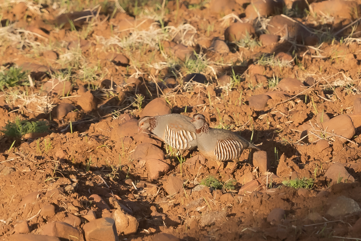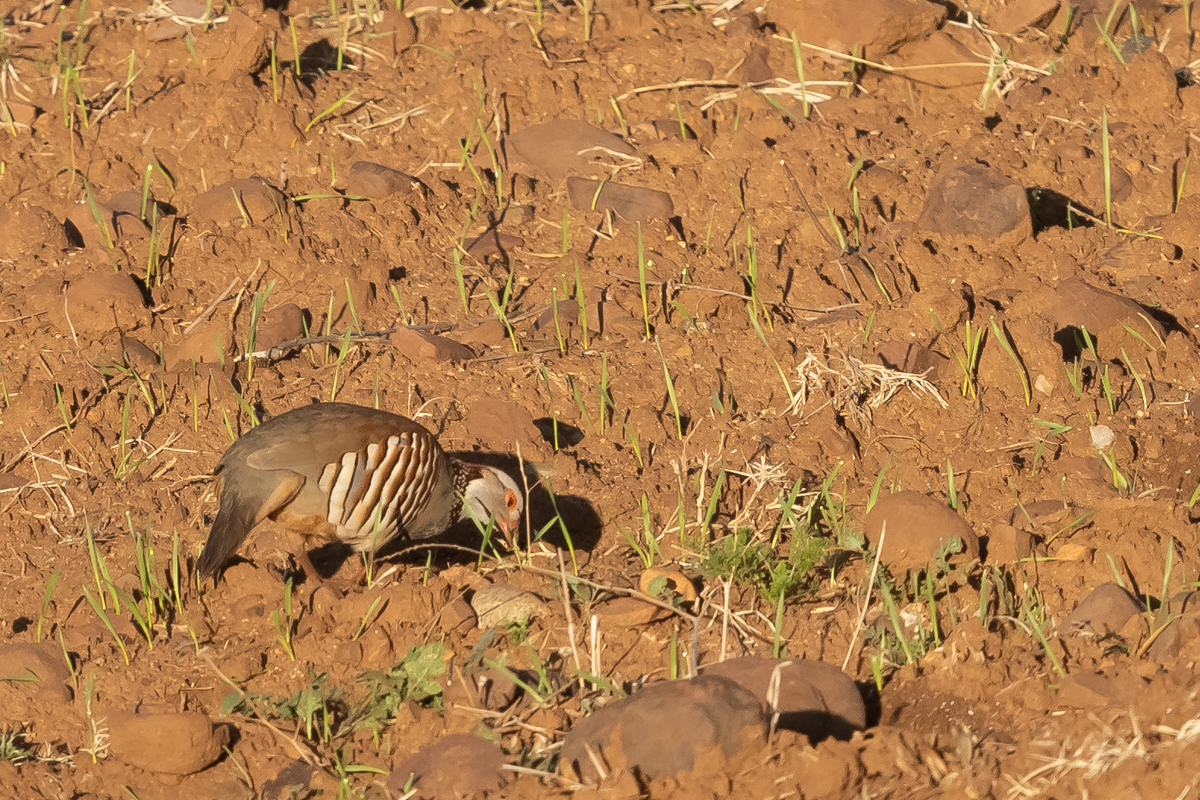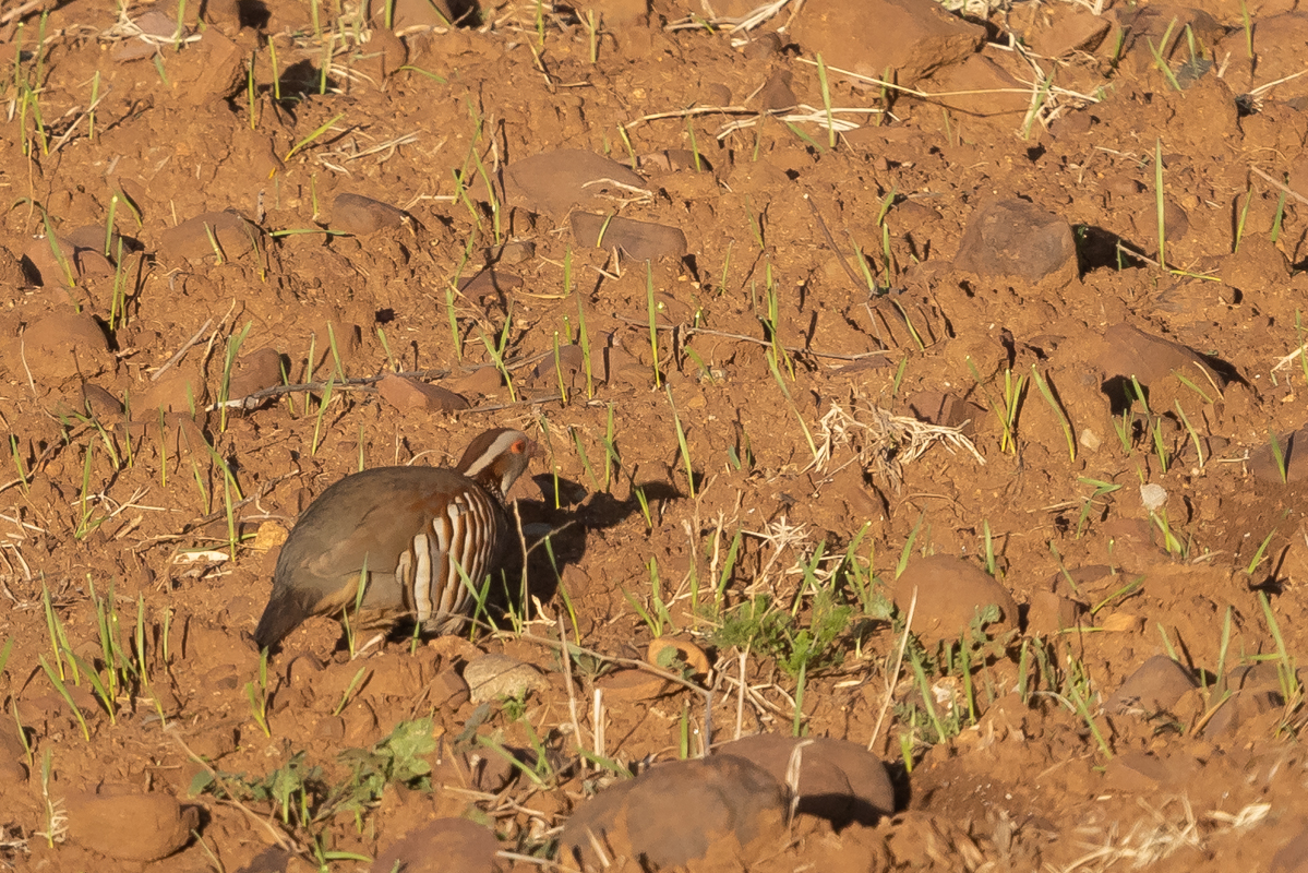 Fortunately, this species does not occur exclusively on Fuerteventura, so it is more likely to enrich or to modernize presented gallery. When I dealt with the Barbary Partridge the situation was similar to that with the Courser, with the difference that I was able to take pictures of partridges, as far as coursers are concerned I took only one photo and of poor quality. Well, this gallery is not created. Barbary partridges appeared for a moment, and as in case of all birds living all around desert  of Fuerteventura they were very skittish. They could be seen there on top of the hill and after a while hid behind. A pity, because it's a pretty representative of Galliformes. Its weight does not exceed half a kilogram and the wingspan is less than half a meter. This species is artificially introduced on the Island. Its natural habitat is the northern Africa.