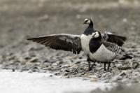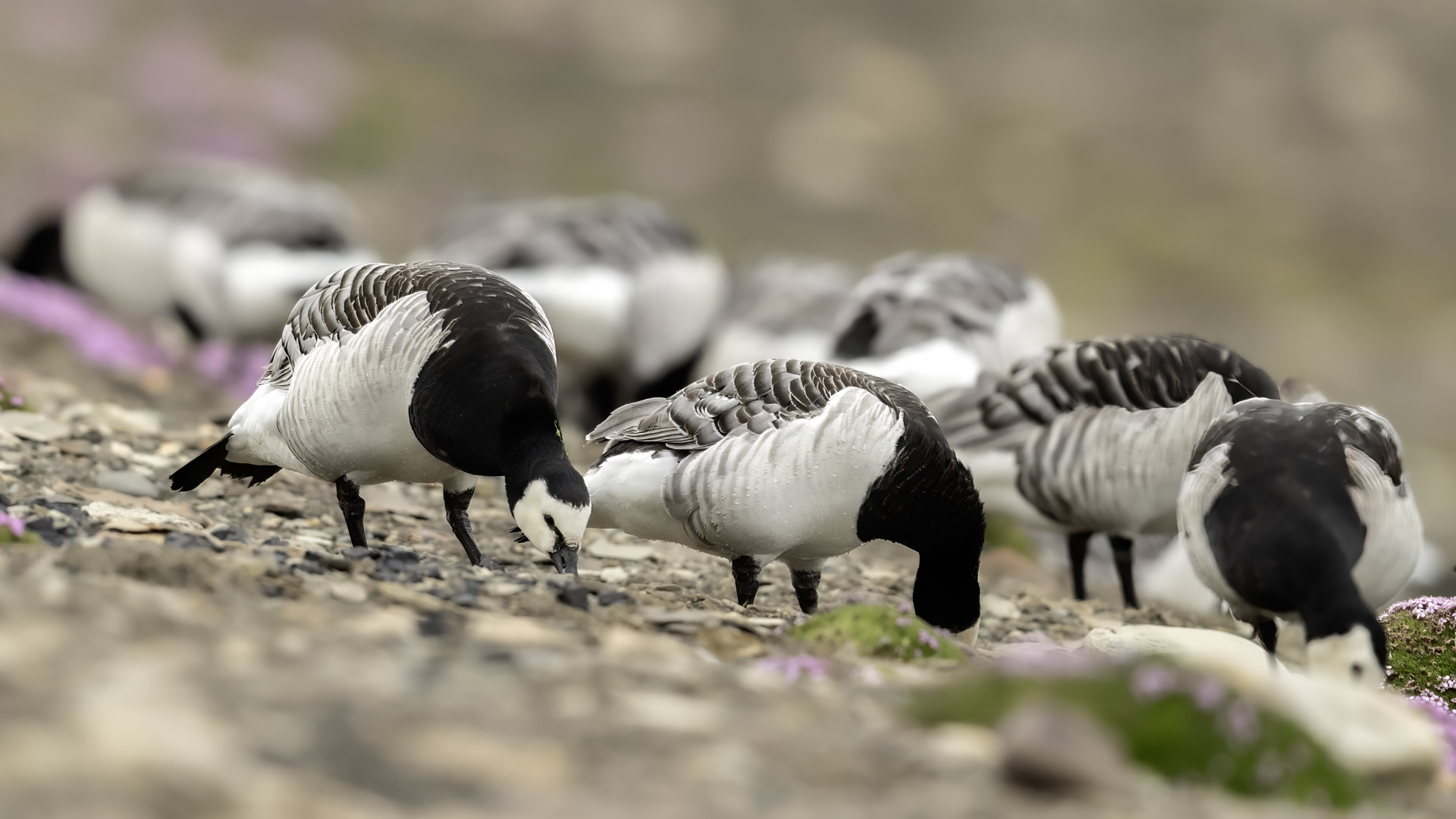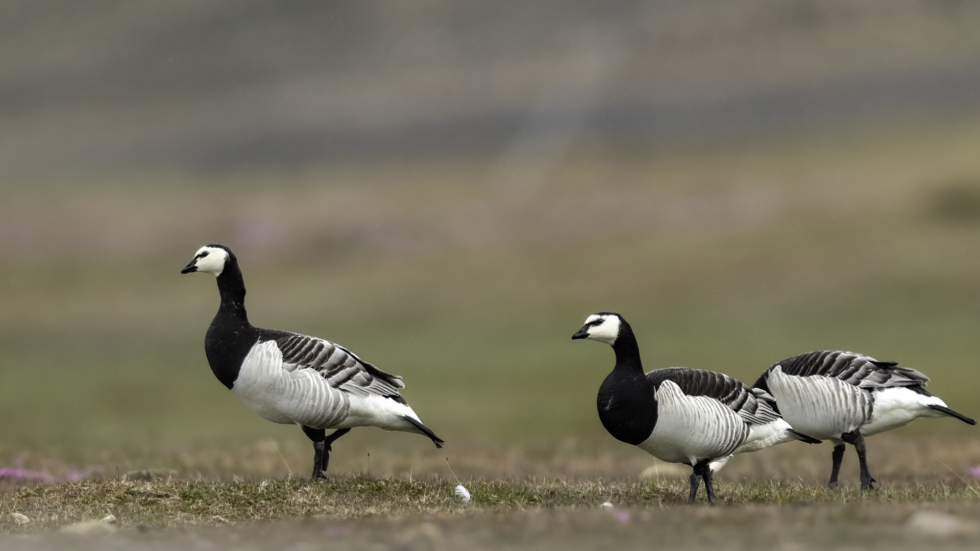 Galeria bernikli białolicej do ubogich na mojej stronie nie należała, ale jeszcze nie ma takiej galerii, której nie dałoby się poprawić. Zwłaszcza na Spitsbergenie, który jest naturalnym miejscem gniazdowania tych ptaków. Miejscami było ich sporo, ale ich zachowanie było podobne, jak w przypadku lisa polarnego. W miejscach oddalonych od siedzib ludzkich zachowywały znaczną odległość, bliżej ludzi, można było podejść i wykonać lepsze zdjęcia. Dodałem też nagranie głosu bernikli białolicej.