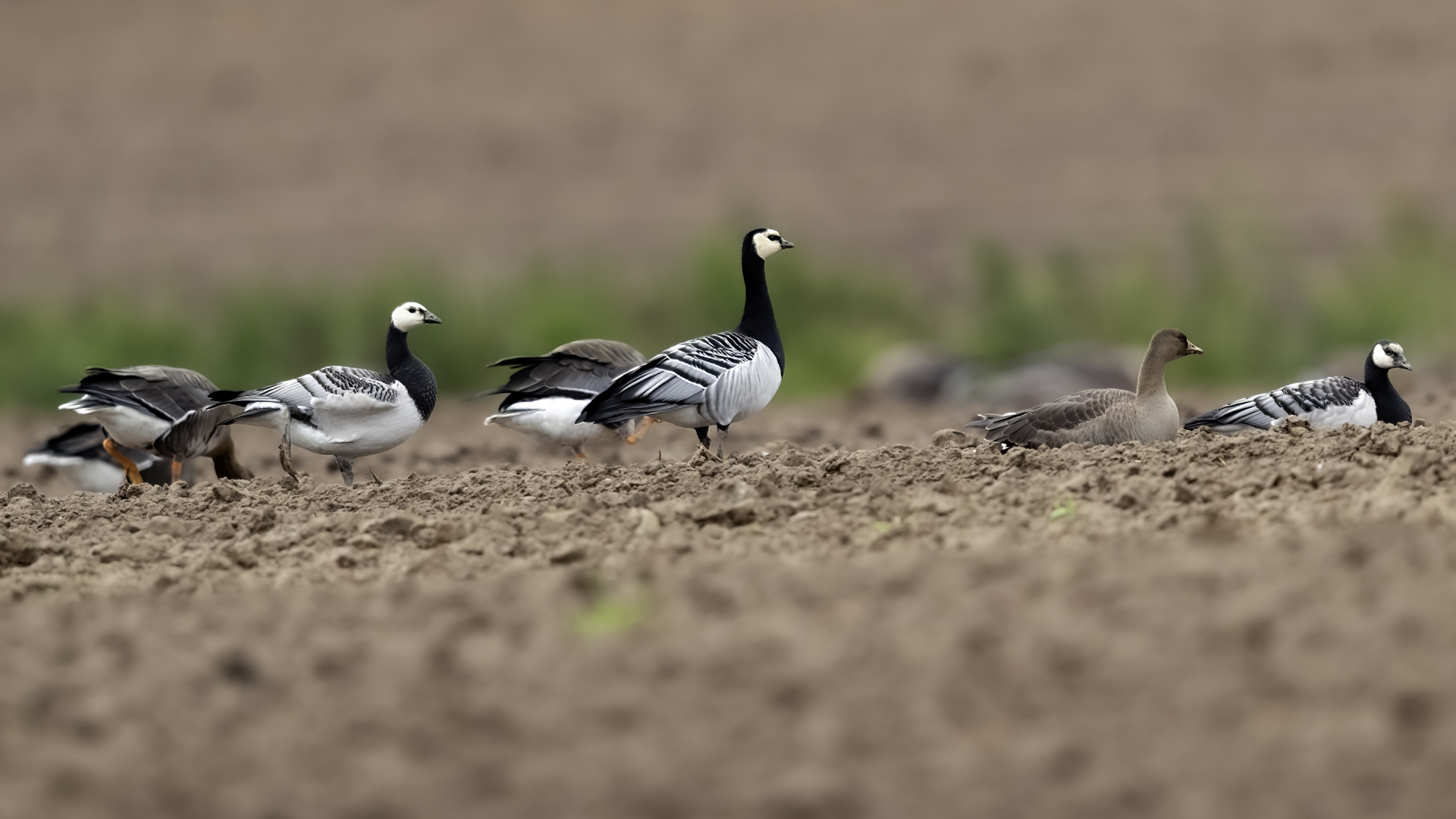 Z trzeciego spotkania z berniklą białolicą powstało kilka zdjęć, które wprowadziły urozmaicenie galerii. Wprawdzie odległość była trochę za duża, ale bernikle w towarzystwie innych gęsi, żerujace na polu trzeba było dodać do galerii. Takich jeszcze nie miałem...