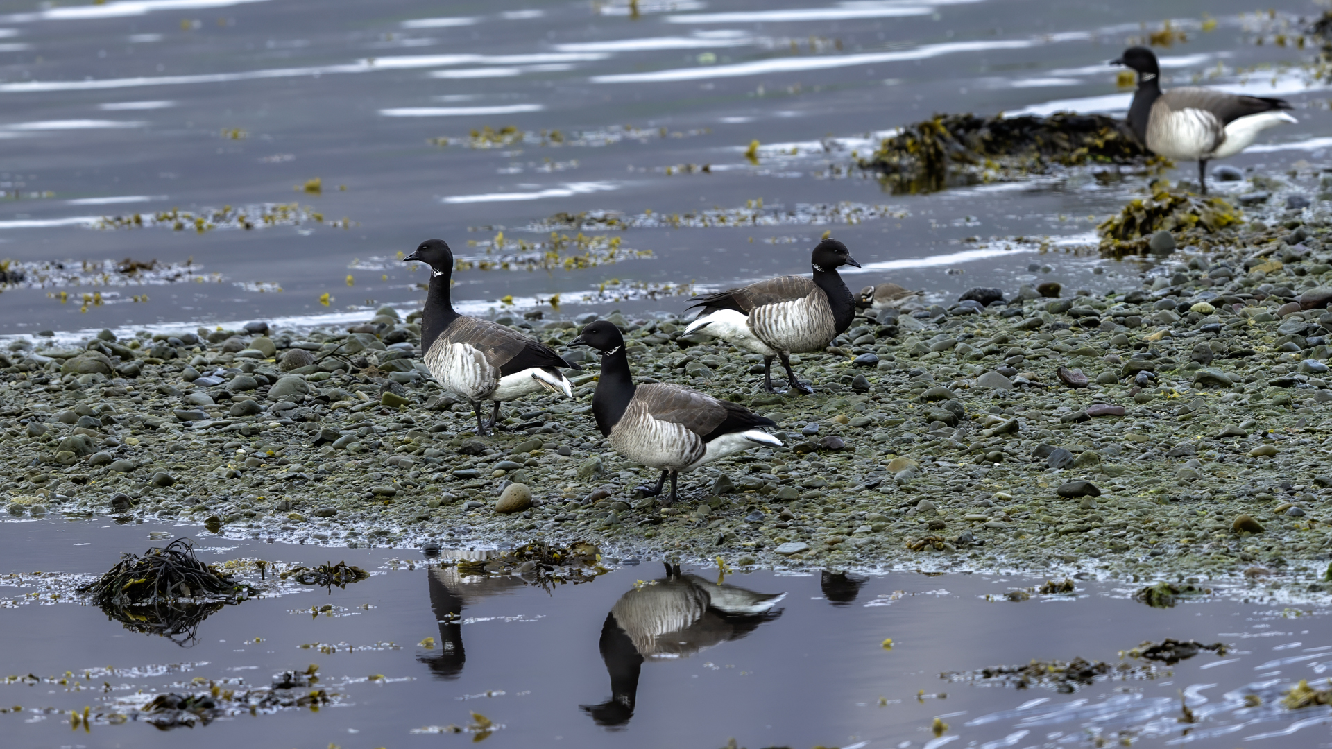 Berniklę obrożna udało się spotkać na Islandii kilka razy. Nie zabiegałem o zdjęcia tego ptaka, bo w korelacji możliwości uwiecznienia nowych gatunków na Islandii, to drugie okazało się ważniejsze. Niemniej jednak, powstało kilka zdjęć stada bernikli, które pod tym względem wprowadzają pewną odmienność w mojej galerii tego gatunku.