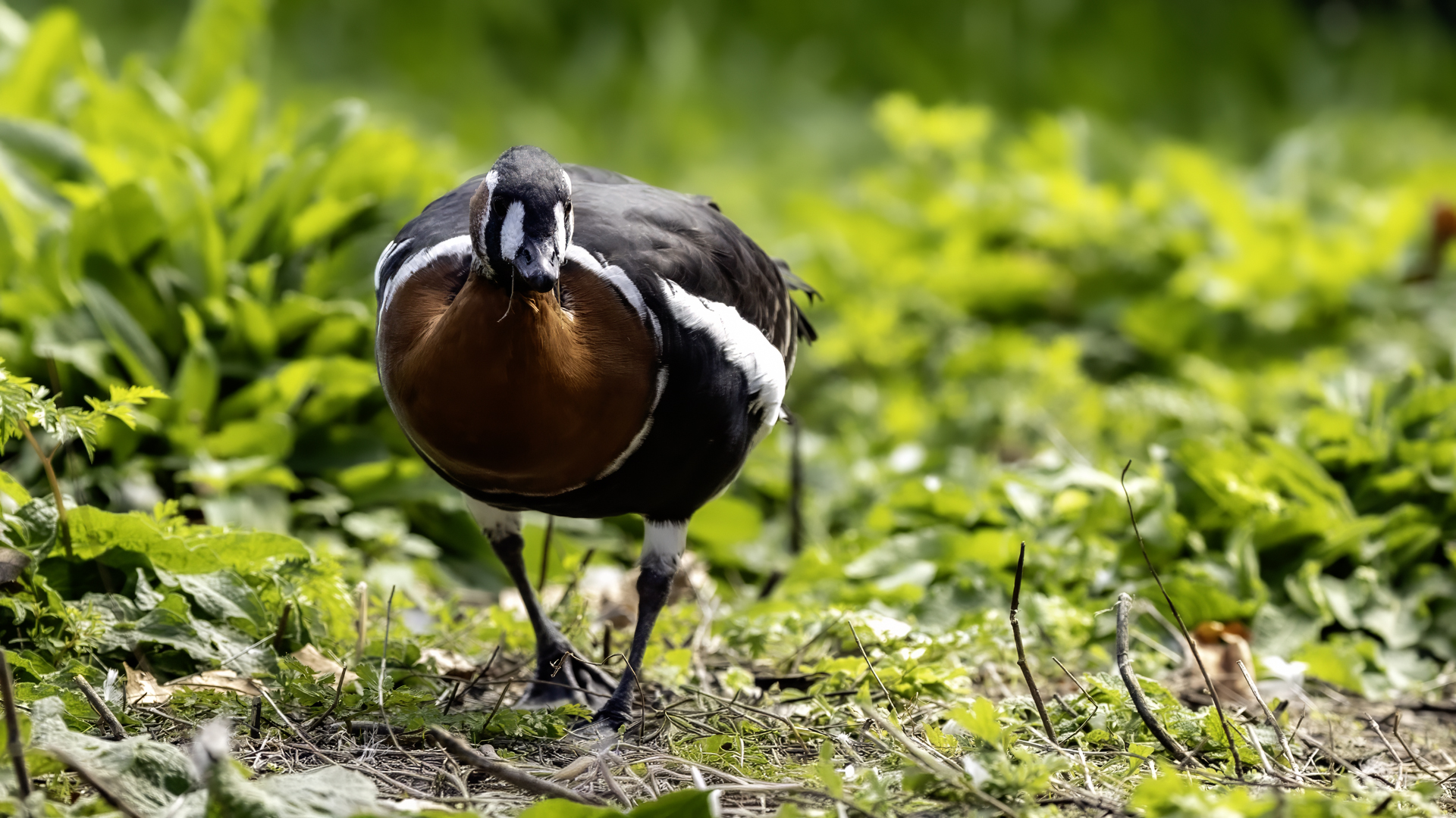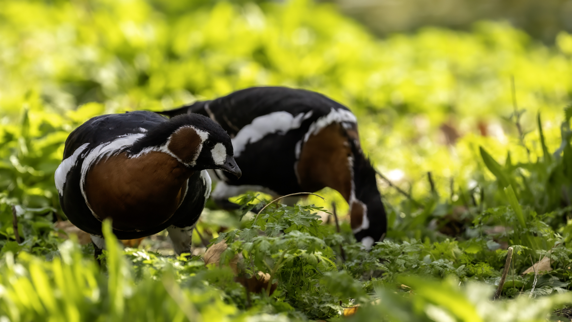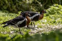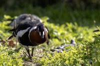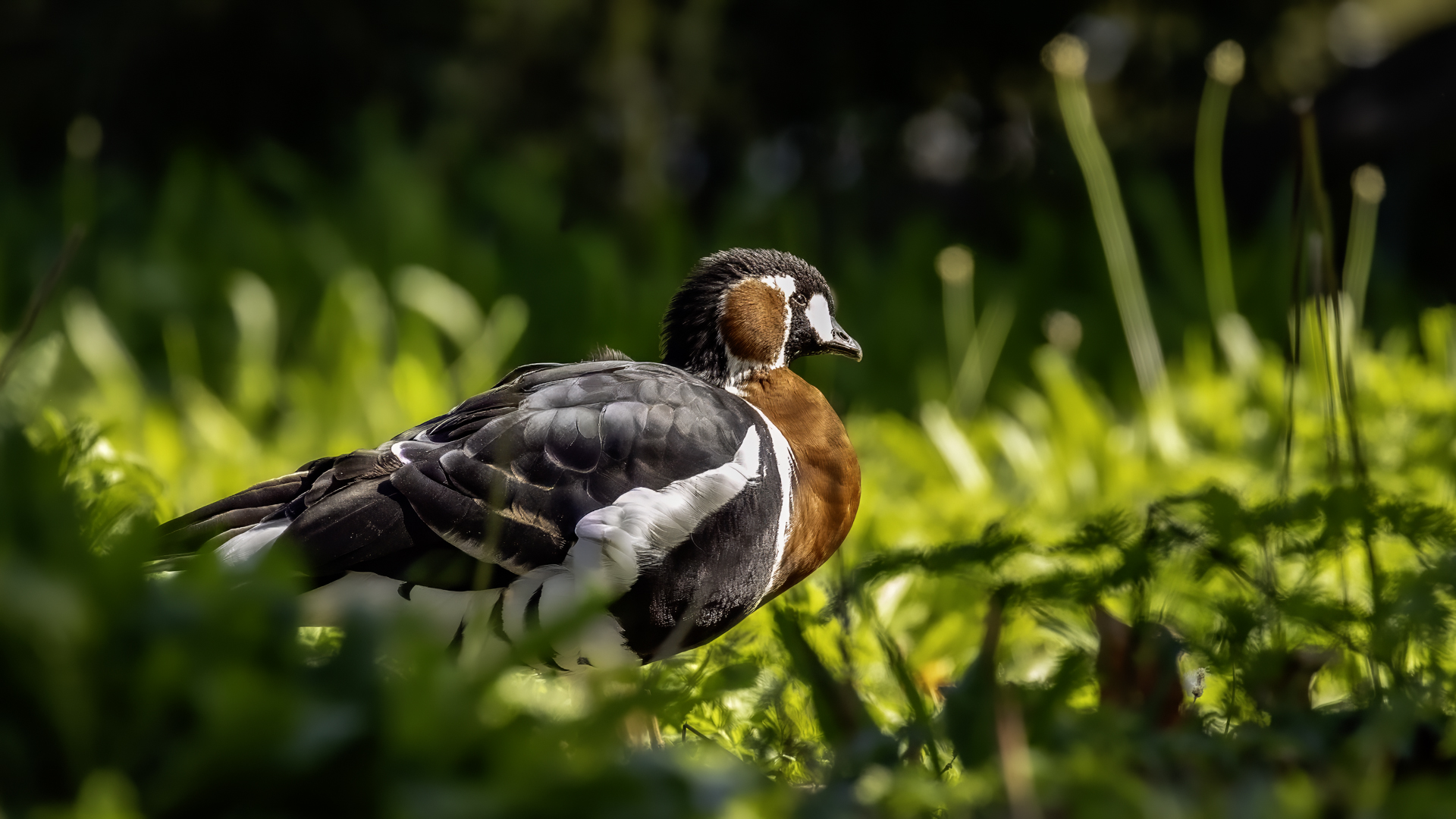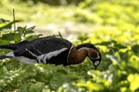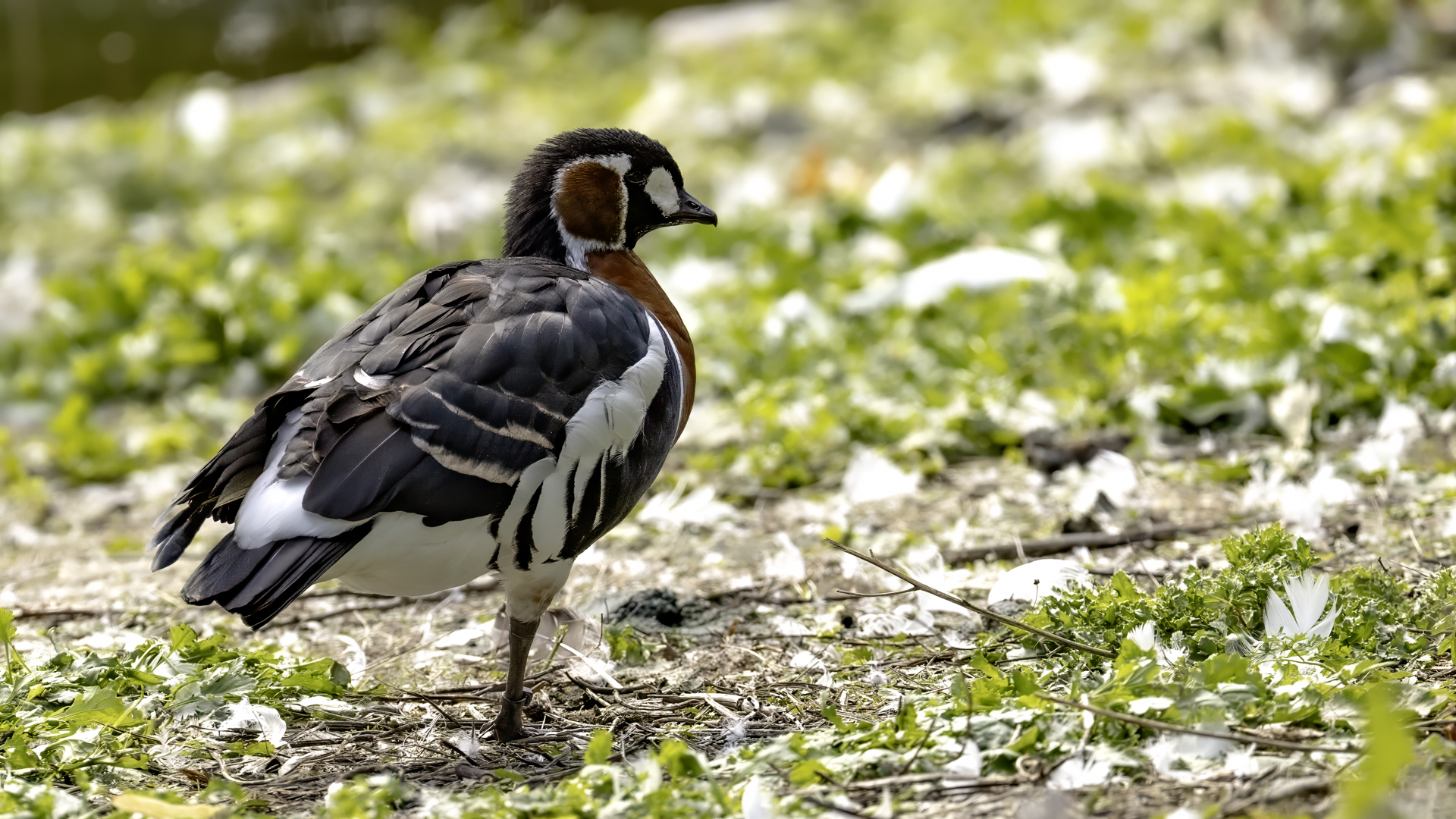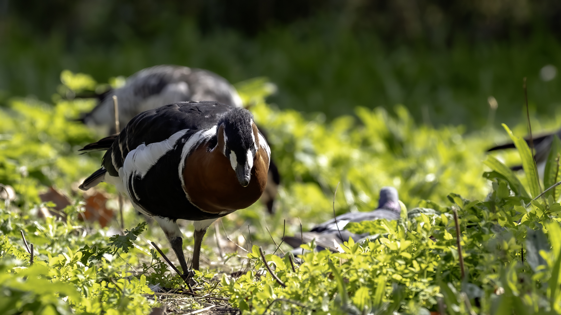 Chyba najpiękniejsza z bernikli dotychczas fotografowanych przeze mnie. Niestety mimo zastosowania konwertera 2x i 600-milimetrowego obiektywu odległość była tak duża, że widać mocne kadrowanie zdjęć. Ale to ważny dla mnie gatunek z dwóch powodów. Pierwszy to taki, że uwiecznienie tego ptaka jest dopełnieniem sfotografowania przedstawicieli rodziny bernikli sporadycznie występujących w Polsce. Druga, że to 400-setny gatunek ptaka zamieszczony na mojej stronie. Bernikla rdzawoszyja jest dość rzadko spotykana w Polsce, bo jej naturalnym środowiskiem jest zachodnia Syberia. Zimują na południu Azji, nad morzem Kaspijskim i w Zatoce Perskiej. Mam nadzieję, że będzie jeszcze okazja i uda się wykonać ciekawsze zdjęcia tej najmniejszej, ale jakże ciekawie ubarwionej bernikli. Tym razem nie było łatwo, bo trudność polegała na dostrzeżeniu jednej, jedynej bernikli, spośród setek, jak nie tysiąca ptaków. Kaczki krzyżówki, gęsi białoczelne, gęgawy, gęsi zbożowe, czajki, czaple siwe i białe, bekasy, biegusy, łabędzie krzykliwe, czarnodziobe- w jednym miejscu to przepiękny, ale rzadki widok w Polsce. Niesamowite, piękne, ciekawe miejsce, do którego trzeba będzie wrócić na wiosnę.  Bernikla rdzawoszyja osiąga masę ciała do 1,5 kilograma, a rozpiętość skrzydeł to około 1,2 metra.