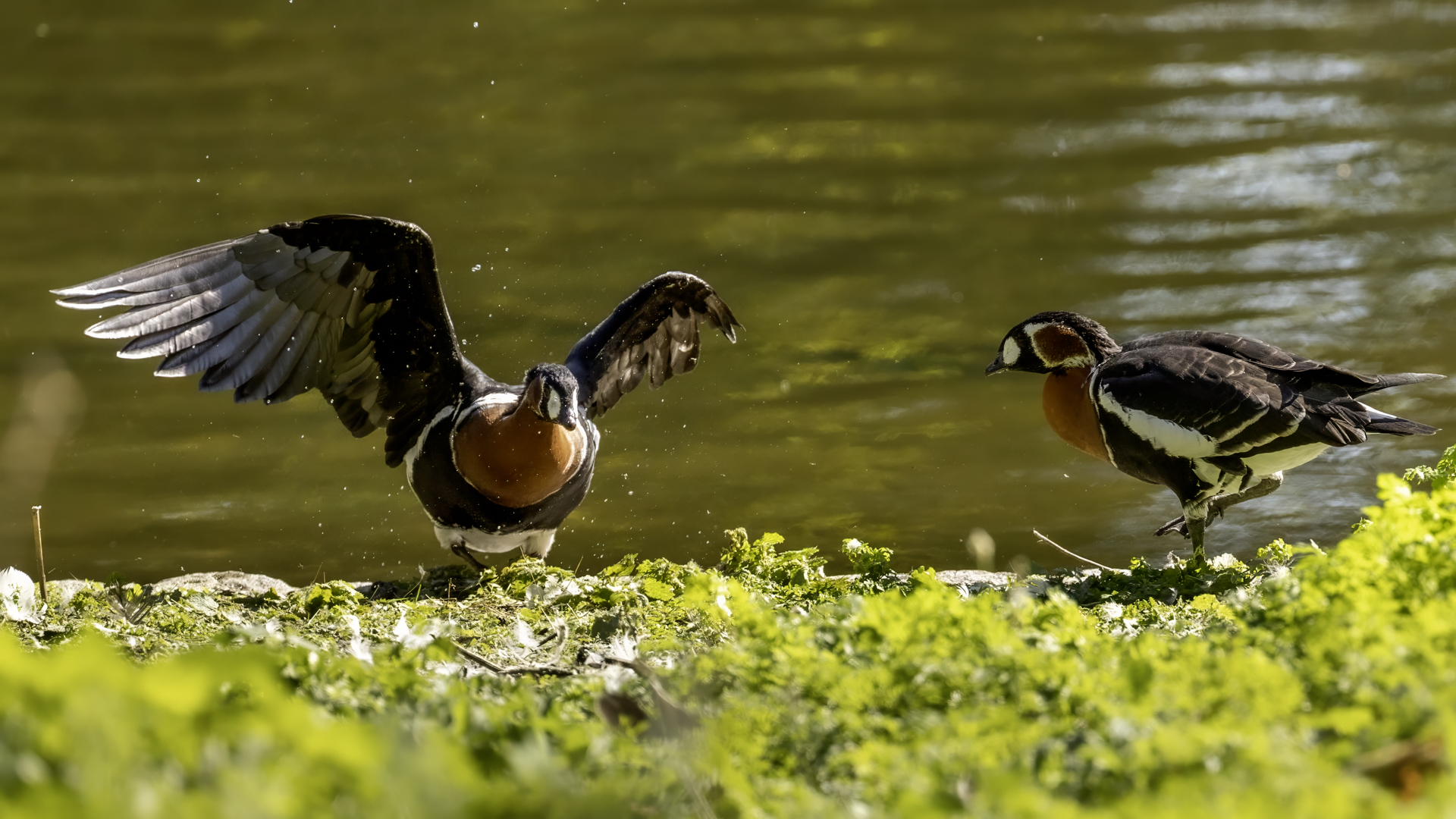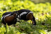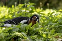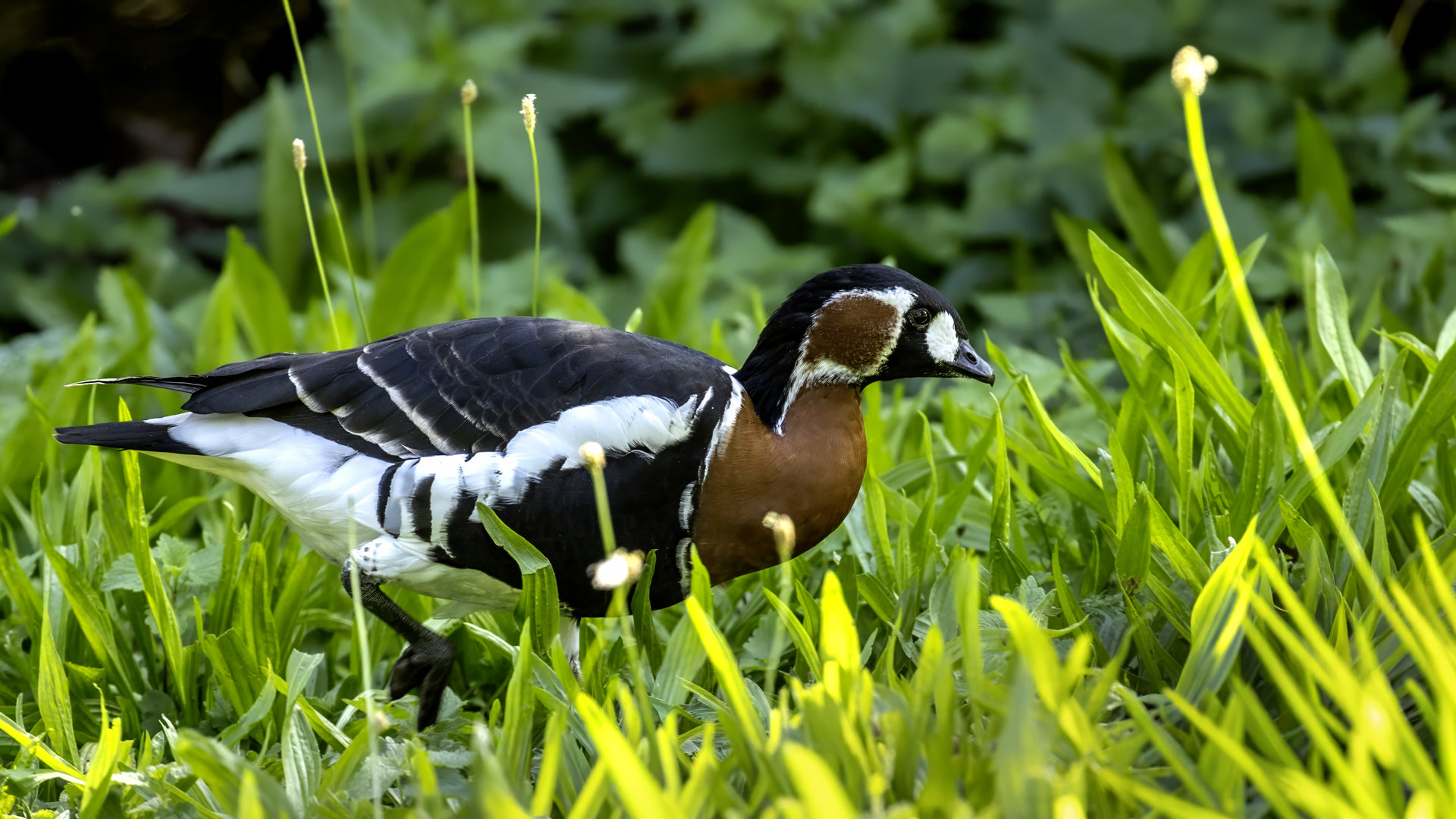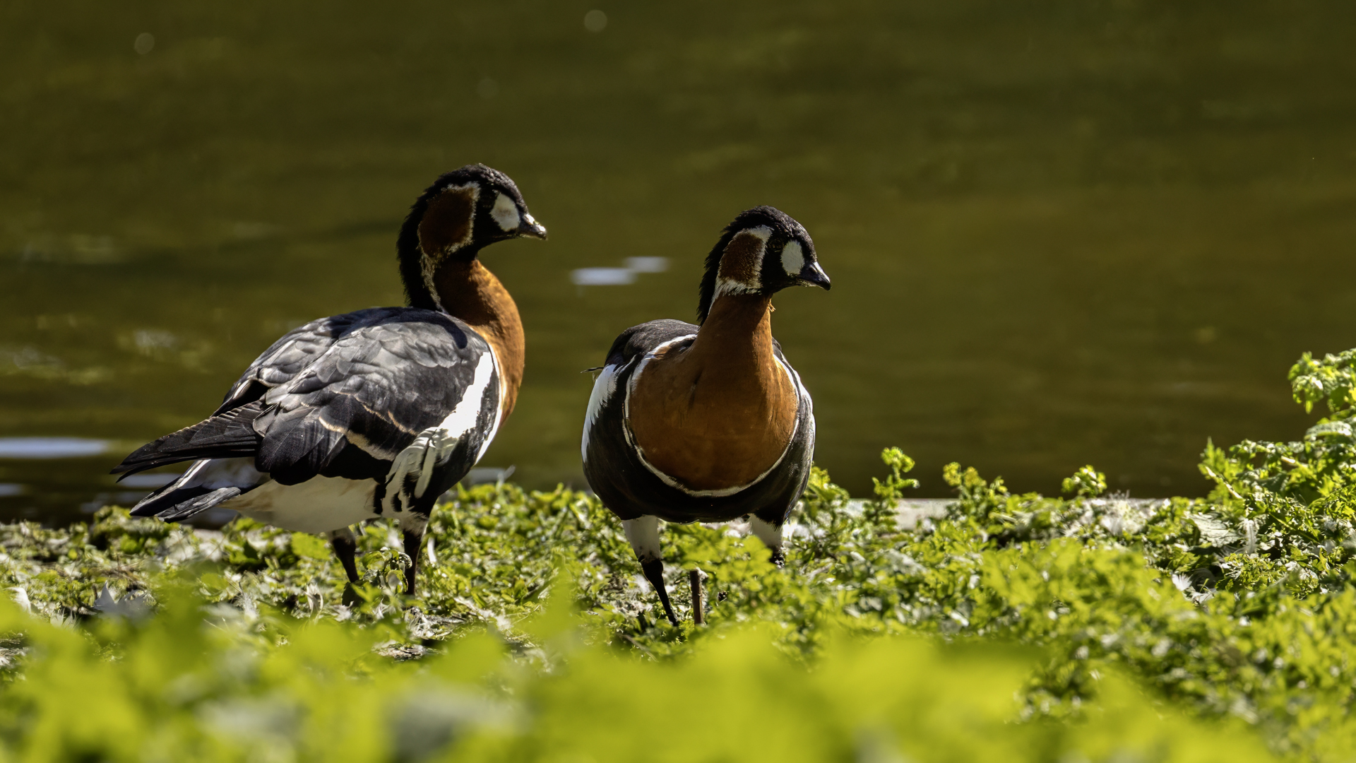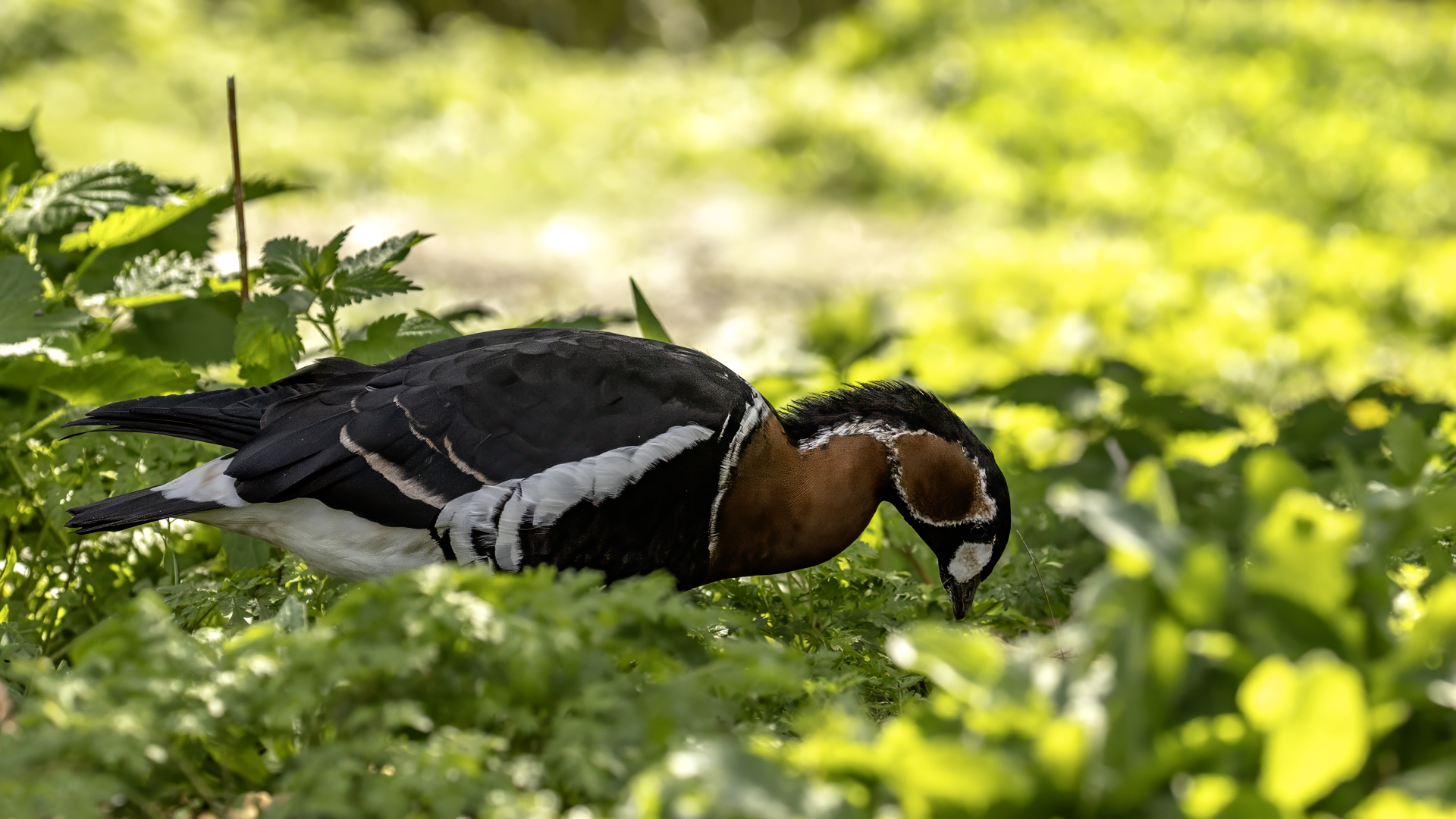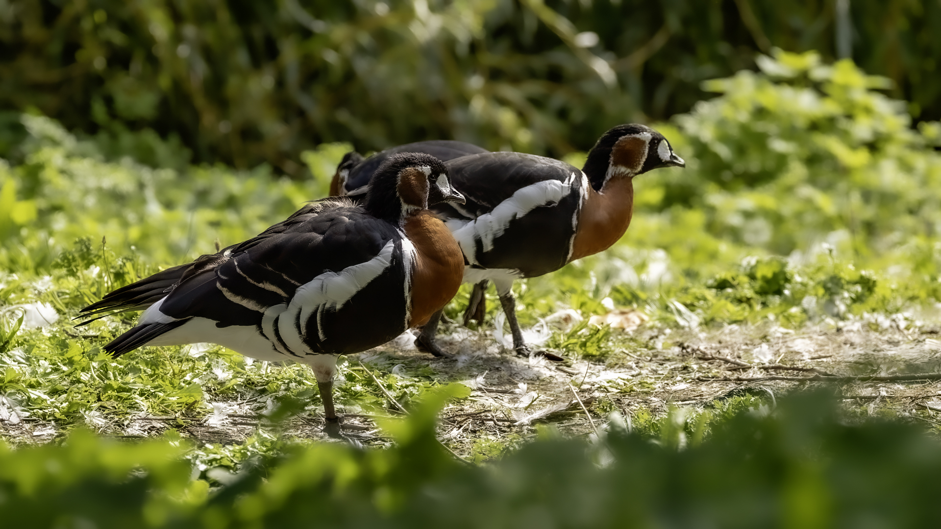 Chyba najpiękniejsza z bernikli dotychczas fotografowanych przeze mnie. Niestety mimo zastosowania konwertera 2x i 600-milimetrowego obiektywu odległość była tak duża, że widać mocne kadrowanie zdjęć. Ale to ważny dla mnie gatunek z dwóch powodów. Pierwszy to taki, że uwiecznienie tego ptaka jest dopełnieniem sfotografowania przedstawicieli rodziny bernikli sporadycznie występujących w Polsce. Druga, że to 400-setny gatunek ptaka zamieszczony na mojej stronie. Bernikla rdzawoszyja jest dość rzadko spotykana w Polsce, bo jej naturalnym środowiskiem jest zachodnia Syberia. Zimują na południu Azji, nad morzem Kaspijskim i w Zatoce Perskiej. Mam nadzieję, że będzie jeszcze okazja i uda się wykonać ciekawsze zdjęcia tej najmniejszej, ale jakże ciekawie ubarwionej bernikli. Tym razem nie było łatwo, bo trudność polegała na dostrzeżeniu jednej, jedynej bernikli, spośród setek, jak nie tysiąca ptaków. Kaczki krzyżówki, gęsi białoczelne, gęgawy, gęsi zbożowe, czajki, czaple siwe i białe, bekasy, biegusy, łabędzie krzykliwe, czarnodziobe- w jednym miejscu to przepiękny, ale rzadki widok w Polsce. Niesamowite, piękne, ciekawe miejsce, do którego trzeba będzie wrócić na wiosnę.  Bernikla rdzawoszyja osiąga masę ciała do 1,5 kilograma, a rozpiętość skrzydeł to około 1,2 metra.