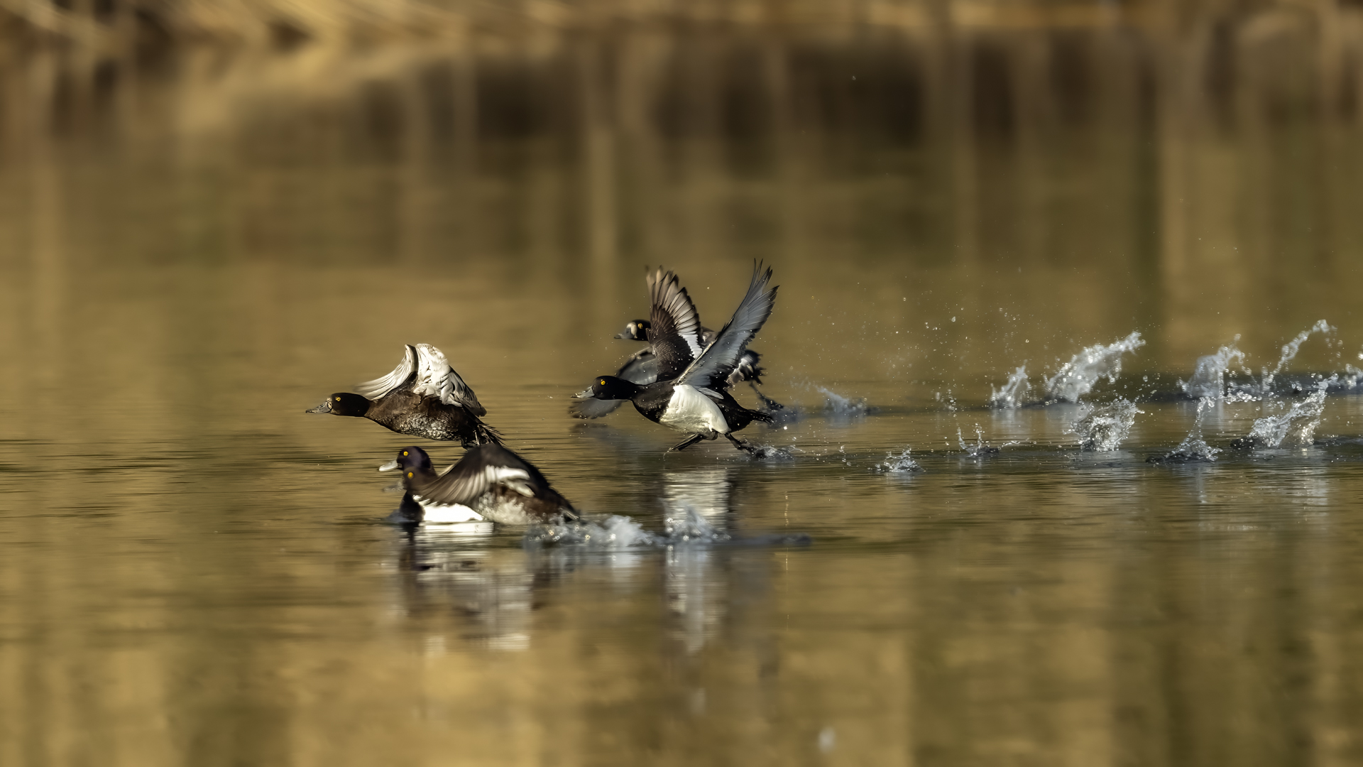 Po ośmiu latach, zupełnie nieplanowanie powstały zdjęcia czernic zmieniające radykalnie zawartość galerii. A to za sprawą testowania pływadełka. Chcąc zrobić z ciekawej perspektywy zdjęcia ptactwa wodnego trzeba wejść niestety do wody. Niestety, bo to dla mnie trochę już ekstremalne fotografowanie. Fotografowanie bielaczków dało mi mocno w kość, bo nie byłem tak przygotowany jak tym razem. Do rozpoczęcia fotografowania tą nową techniką gruntownie się przygotowałem. Przebywanie w wodzie samemu i to na początku fotografowania w godzinach nocnych wymusza zastosowanie wszystkich dostępnych narzędzi, które spowodują, że powinno być bezpiecznie. Po analizie możliwości jakie oferuje rynek zakupiłem pływadełko (link- https://www.floating-hide.com/ ). Wprawdzie było wodowane tylko kilka razy, ale trzeba powiedzieć, że jego ergonomiczność, łatwość montażu, stabilność robi wrażenie. Wszystko jest tam przemyślane i działa tak jak powinno. Dodałem jeszcze siatkę maskującą, która powoduje, że kamuflażu jest jeszcze bardziej skuteczny. Nie on jednak był najważniejszy. Ptaki na pierwszym wodowaniu były bardzo ostrożne nowym obiektem w trzcinach. Pozostając w bezruchu ptaki z godziny na godzinę były bliżej. To przebywanie w wodzie tym razem jest mocno ograniczone temperaturą i ludzka wytrzymałością. Suchy skafander, odpowiednia odzież powodują, że można wytrzymać nawet 5 godzin w wodzie. To już wystarcza, zakładając, że wchodzi się do wody trochę przed świtem i wszystko się uspokaja tak, aby o poranku, w najlepszym świetle powstały ciekawe ujęcia. Ptaki mimo wszystko potrzebują czasu do przyzwyczajenia się, asymilacji do pływadełka. Jak zwykle potrzeba czasu na wiele prób fotografowania i przyzwyczajenia się otoczenia. Niestety to nadal deficytowe u mnie. Szkoda, bo obserwacja z wody wschodu słońca, zachowań ptaków to niezapomniane wrażenie. Najważniejsze w moich pływadełkowych planach jest perkoz dwuczuby. Widziałem kilka razy ich zachowania godowe, niestety odległość była zbyt duża nawet dla 600-tki z konwerterem. Ptaki przyglądały się sobie nawzajem, pokazały na co dzień prawie niewidoczna kryzę, która została postawiona i pięknie wyeksponowana. Po wielu zrachowaniach godowych, nagle jeden z partnerów (chyba samiec) niczym bazyliszek, pełen energii, podniecenia, tak szybko przebierał nogami, że dosłownie chodził po wodzie na odcinku chyba stu metrów. Emocje opadły i na zakończenie tego spektaklu nagle powstała ściana wody zasłaniająca całego ptaka. Trzeba to kiedyś sfotografować! Pływadełko daje duże możliwości otwarcia nowego etapu w moim fotografowaniu i przerobienia dotychczasowych galerii zdjęciami z ciekawszej perspektywy. Jak czas pozwoli to pewnie się to stanie, choć o to jak zawsze najtrudniej. W praktyce, latem trzeba wstać około 2 w nocy, by uwzględnić całą logistykę, aby około 10 godziny zakończyć sesję fotograficzną. Dzisiaj, po kilku próbach fotografowania wiem, że przedstawione zdjęcia w galerii trzeba traktować jedynie jako ciekawe próbki. Poświęcenie czasu na przebywanie w pływadełku doprowadzi do powstania znacznie ciekawszych zdjęć, jakich jeszcze nie było na mojej stronie. Narzędzie jest tylko czas pokaże, czy udało się go na tyle dużo znaleźć, aby móc obserwować i fotografować z kaczej perspektywy wodne ptaki….