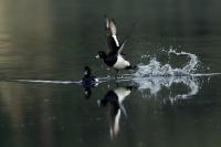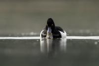 Gdy fotografowałem na Islandii perkozy rogate w ich sąsiedztwie pływały w niewielkiej odległości czernice. Światło na szczęście nie było kontrastowe i udało się uwiecznić subtelności ubarwienia głowy samca czernicy. Zdjęcia trafiły do galerii.
