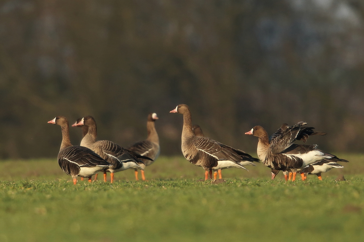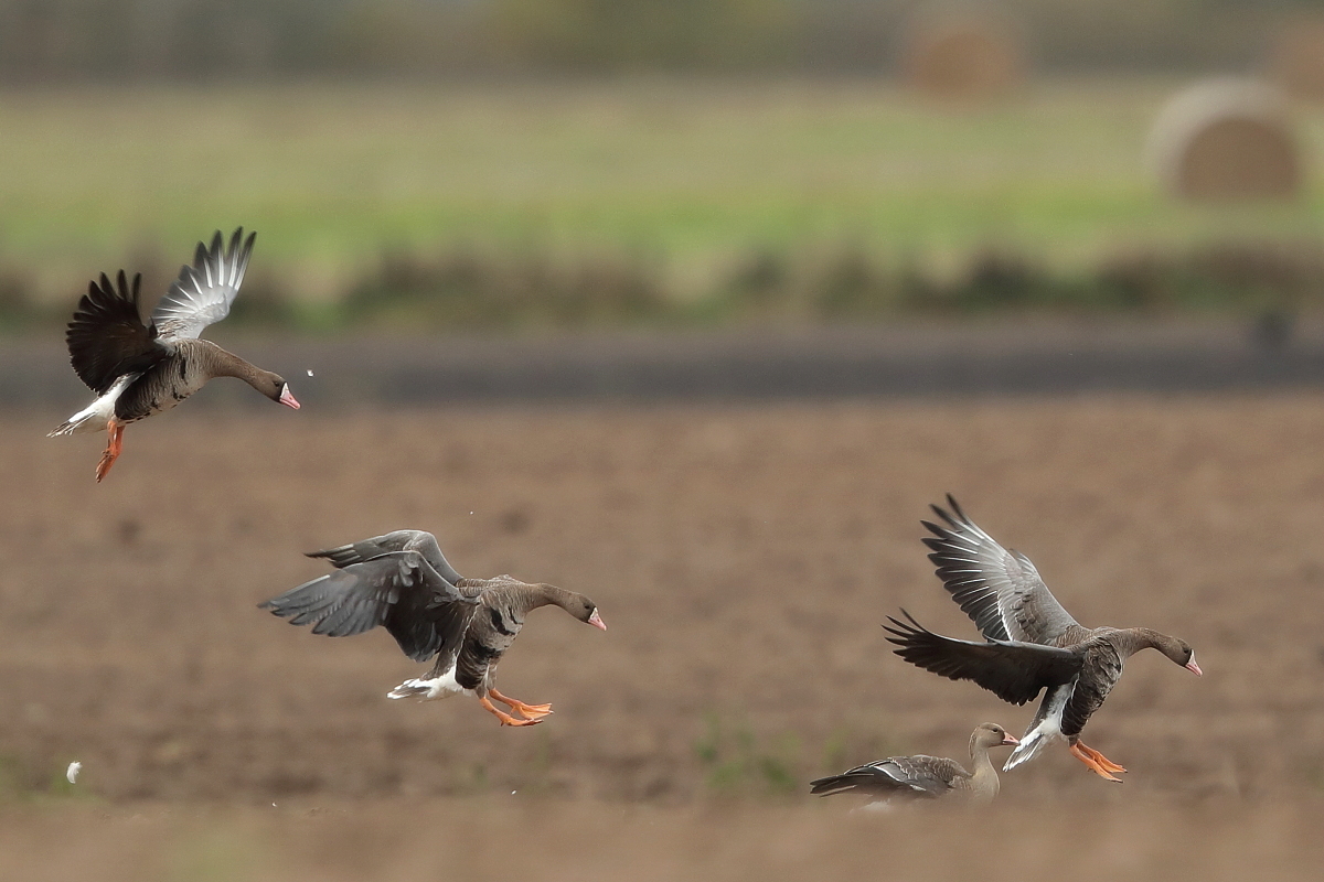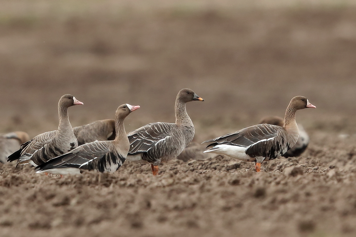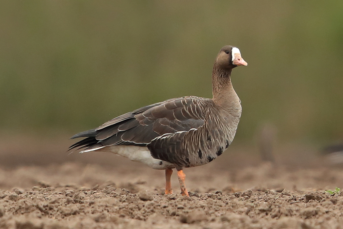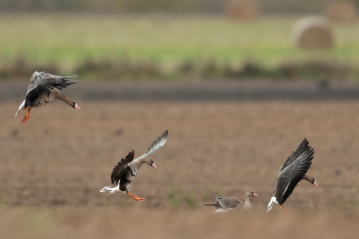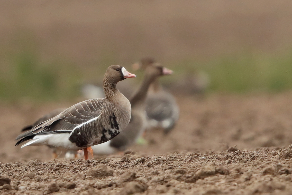 Nie są to jeszcze zdjęcia o bardzo dobrej jakości, ale wprowadzają znaczne urozmaicenie w dotychczasowej, skromnej galerii. I znów sprawił to przypadek. Widząc żerujace przy drodze duże stado gęsi zatrzymałem samochód i powoli zacząłem fotogragować. Wśród żerujących ptaków były gęsi białolice, bęsi białoczelna, zbożowe, gęgawy i szpaki. Odległość była nieco za duża, ale powstały besprzecznie najciekawsze moje, jak dotąd wykonane zdjęcia gęsi białoczelnej.