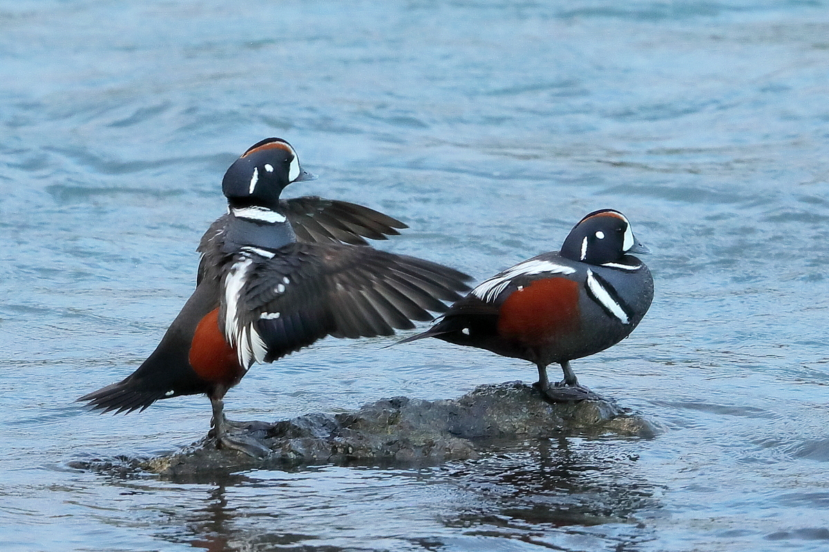 Kamieniuszki udało mi się spotkać na Islandii kilka razy. Zawsze w nurcie dość bystrych rzek. Czasami widać było je wygrzewające na przybrzeżnych kamieniach. Jest barwną kaczką, osiągającą wagę do 800 gramów i rozpiętości skrzydeł do 70 centymetrów. Najlepsze zdjęcia powstały podczas fotografowania nura rdzawoszyjego, gdzie kamieniuszki przepływały nieco dalej, na szczęście udało mi się to zauważyć, bo w nury byłem tak zapatrzony, że siedzące nieopodal edredony zauważyłem dopiero podczas odejścia z brzegu rzeki. Niestety kamieniuszki były dość płochliwe i nie pozwalały zmniejszyć znacznie dzielącej nas odległości. Zawsze bacznie obserwując powoli się oddalały. Kamieniuszki w Europie występuje wyłącznie na Islandii. Och populację tam szacuje się zimą na 14 tys. osobników (2014).