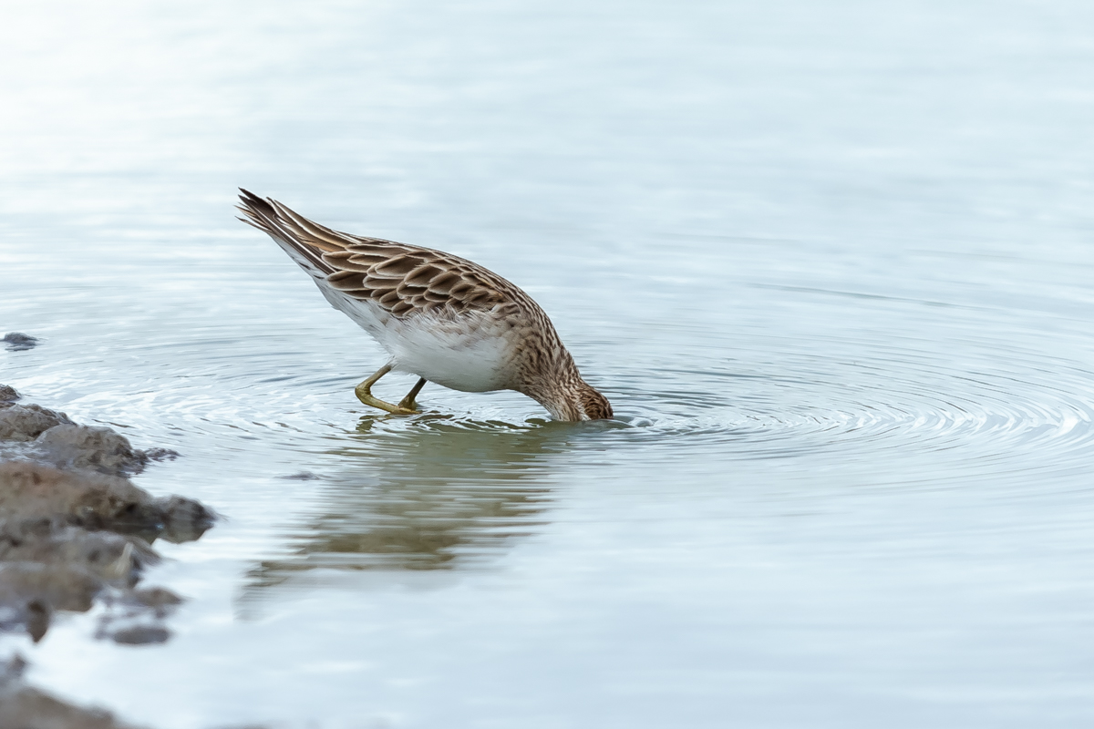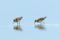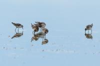 Australia zaskakiwała mnie wiele razy bogactwem fauny i flory, przestrzeniami, na tyle że nie sposób nie chcieć tam wrócić. Kolejną miłą niespodzianką było spotkanie biegusa ostrosternego. Jadąc przez niemal cały dzień przez busz mijaliśmy co najwyżej jakieś oczka wodne, stawy, ale częściej widywaliśmy kangury i papugi niż przedstawiciela ptactwa wodnego. A tu nagle pokazało się duże jezioro, na brzegu którego żerowały szczudłaki i biegusy, a w oddali widać było jeszcze stada innego ptactwa wodnego. Póki co wszystkie swoje biegusy sfotografowałem nad Bałtykiem i to na przelotach. Tu w Australii, w lutym, w środku upalnego lata, w temperaturze przekraczającej 30 stopni obserwuję nad jeziorem biegusy, które, jak to bywa w Australii, bez większego problemu dały sobie wykonać kilka zdjęć. Jedynie chęć spotkania innych gatunków spowodowała, że prezentowana galeria jest dość skromna.