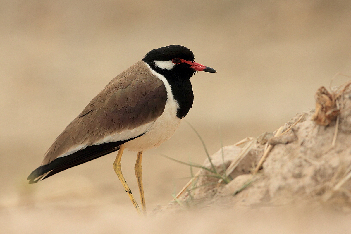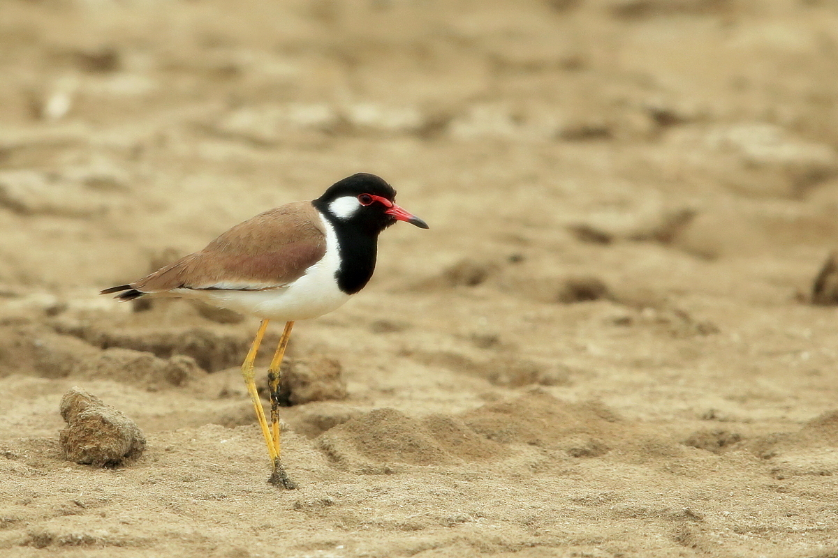 Czwarty gatunek czajki trafia na moja stronę. Znów się zastanawiam jak to się dzieje, że wszędzie na świecie podchodząc spokojnie do czajek można zrobić satysfakcjonujące zdjęcia. W Polsce, bez czatowni się nie da i czajki zawsze z przeraźliwymi odgłosami odlecą. Czajki indyjskie spotykałem w Tajlandii kilkukrotnie i każde kolejne spotkanie było bliższe i powstawały ciekawsze zdjęcia. Do tego stopnia czajki zaakceptowały moje podchodzenie, że ptak mieścił się w pełnym kadrze i dalsze skracanie odległości nie miało już sensu.