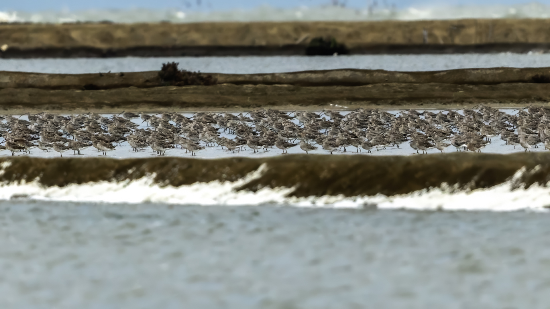 Dodałem jedno dokumentacyjne zdjęcie kulików wielkich, ale taka obserwacja musi mieć swoje miejsce w mojej galerii. Nie dorobiłem sie jeszcze ciekawych zdjęć kulików, bo o zdjęcia w Polsce wcale nie tak łatwo. Zobaczenie kilku osobników na przelotach to już wydarzenie. A tu proszę na zbiornikach, gdzie pozyskiwano sól z wody morskiej wylądowało stado kulików wielkich liczące kilkaset osobników. Oczywiście było bardzo daleko, ale to trzeba było uwiecznić i zamieścić choć jedno zdjęcie taaaakiego stada.....