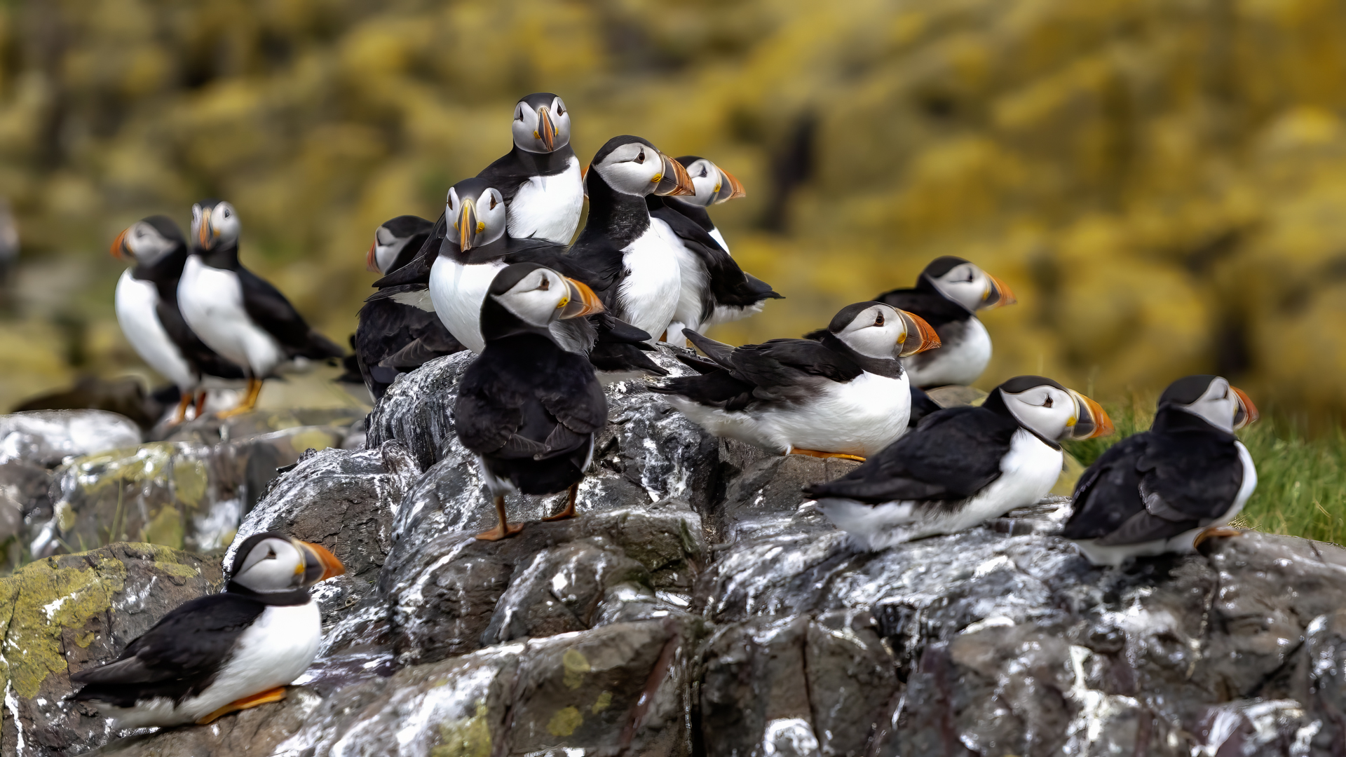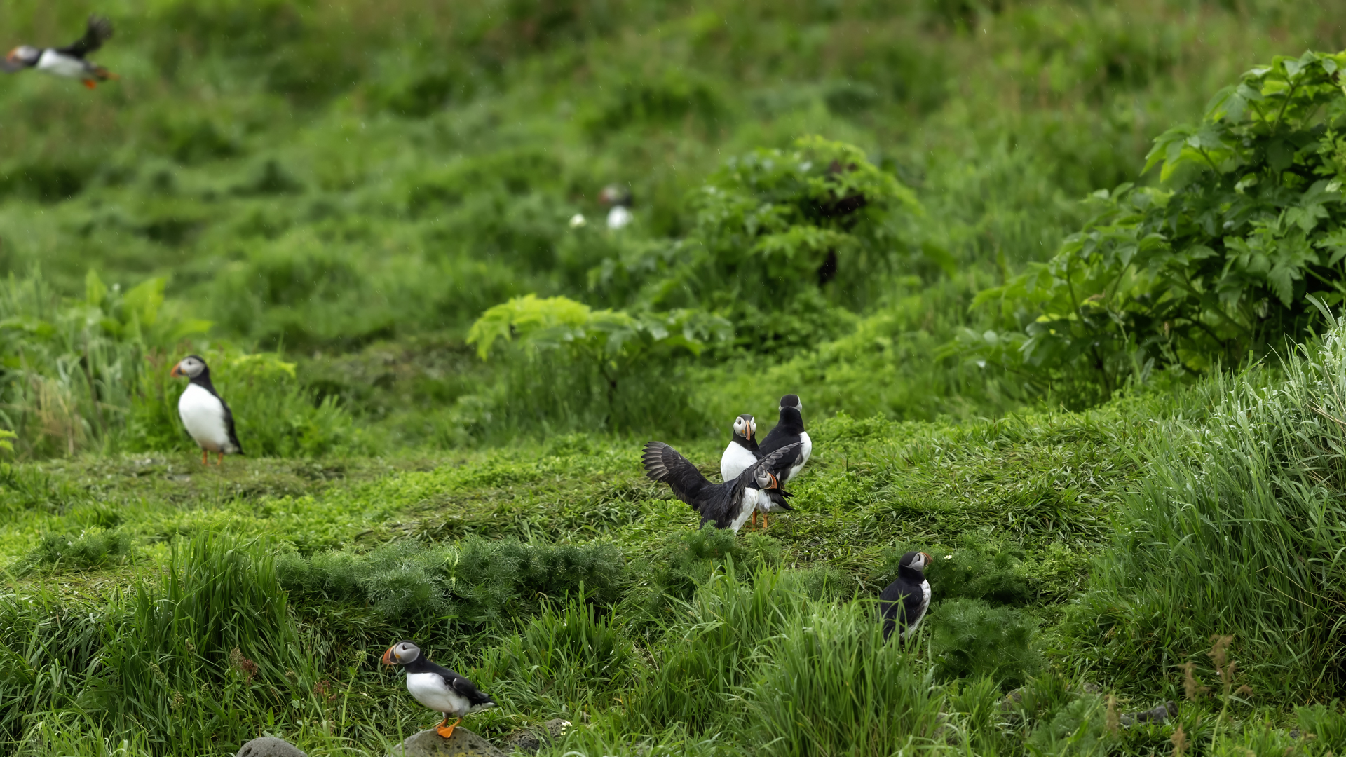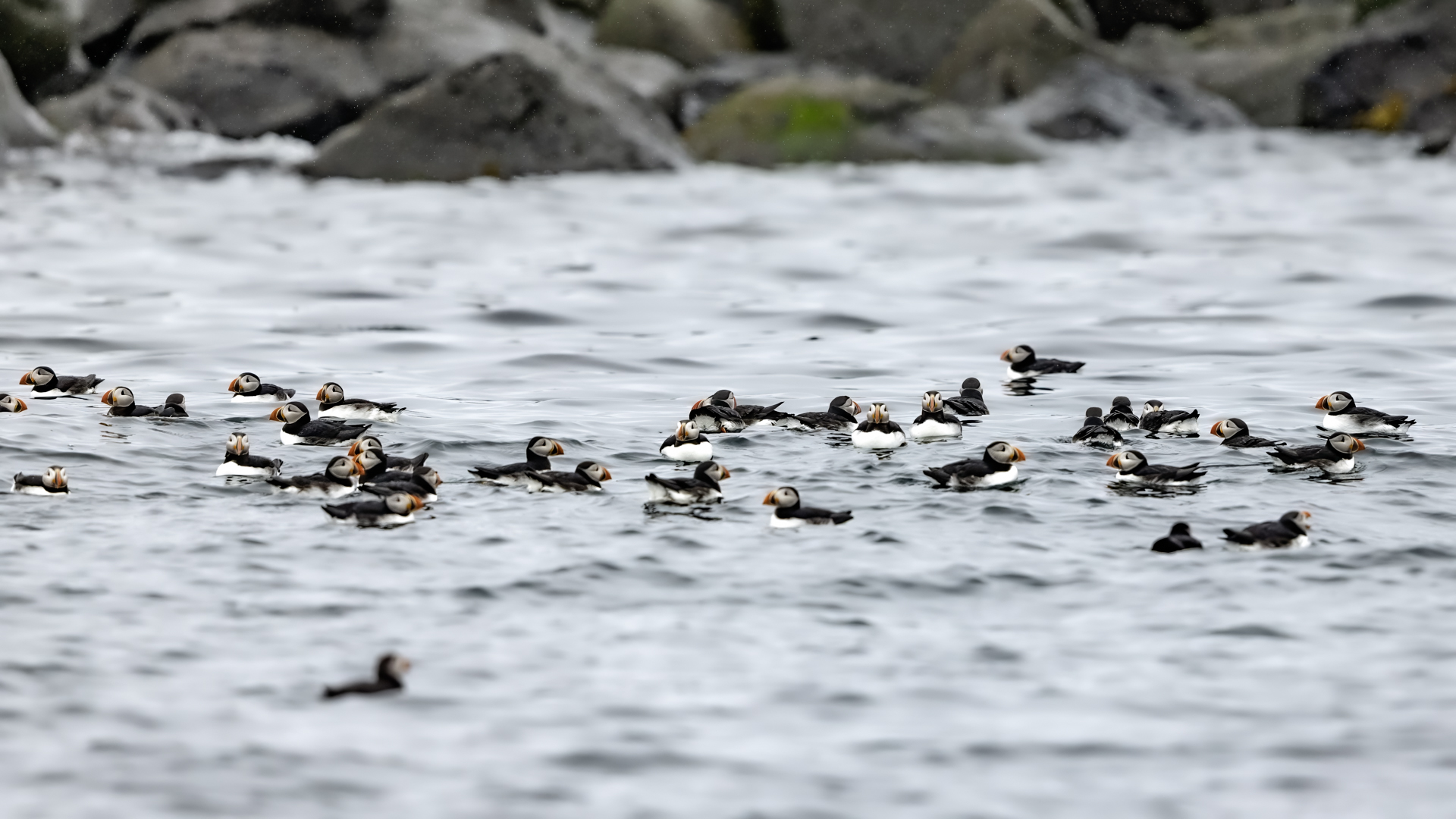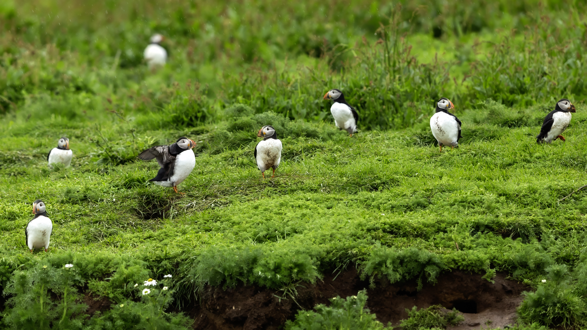To moje już trzecie spotkanie z ptakami tego gatunku. Najbardziej owocne było pierwsze. Tym razem, mimo, że ptaków były setki, jak nie tysiące, odległość była zawsze dość znaczna. Ale udało się wykonać zdjęcia całych kolonii maskonurów oraz kilka dynamicznych ujęć w locie.