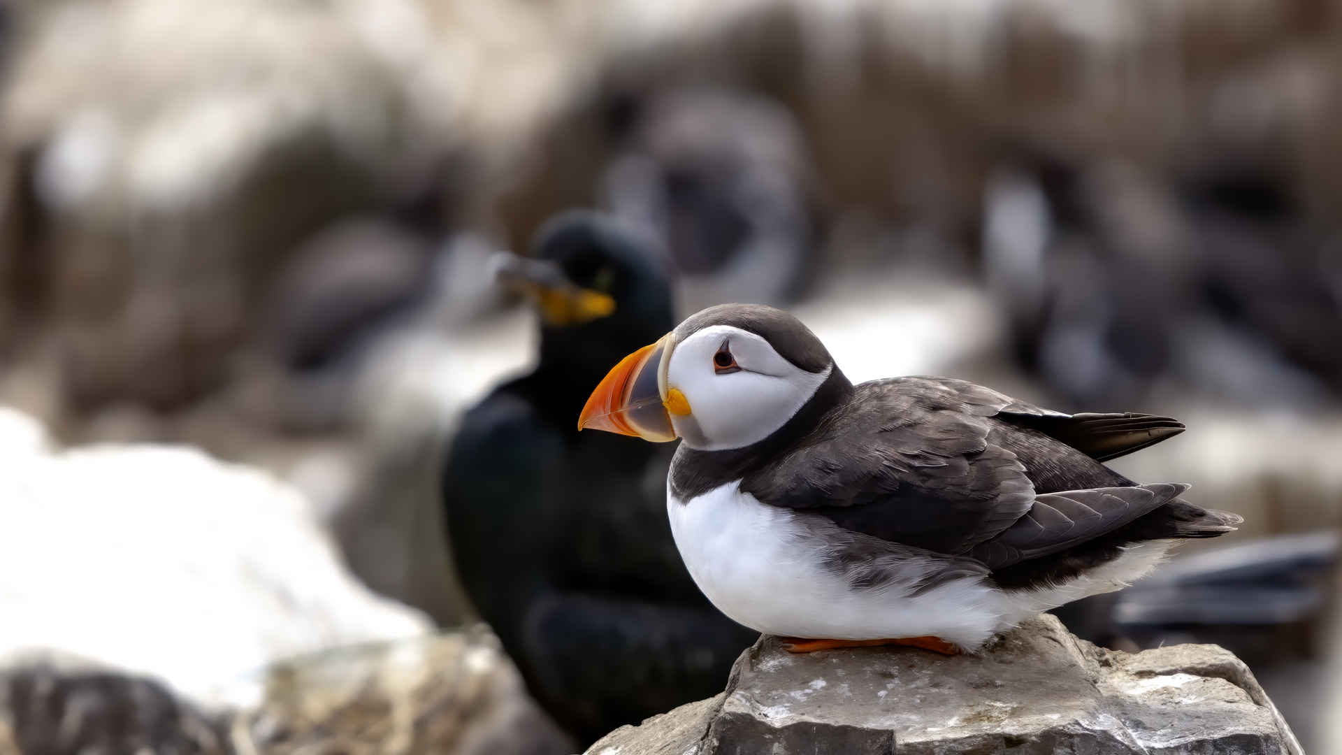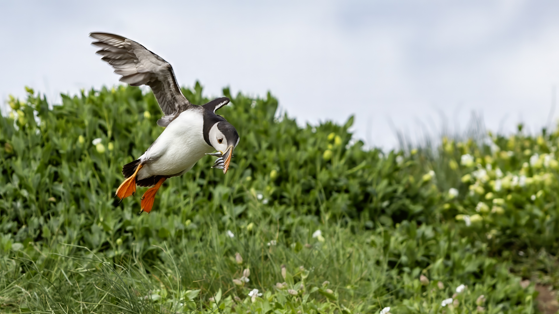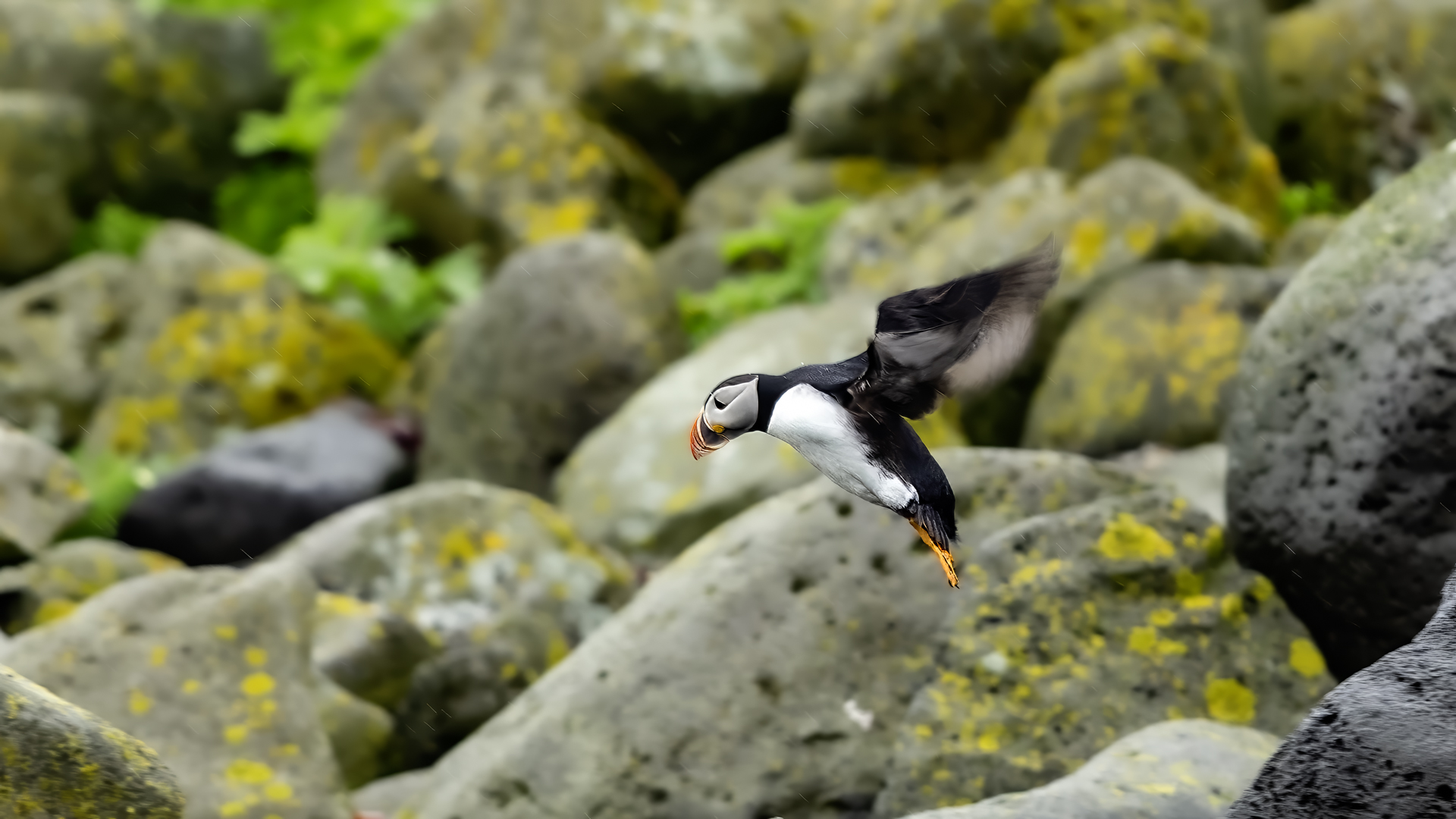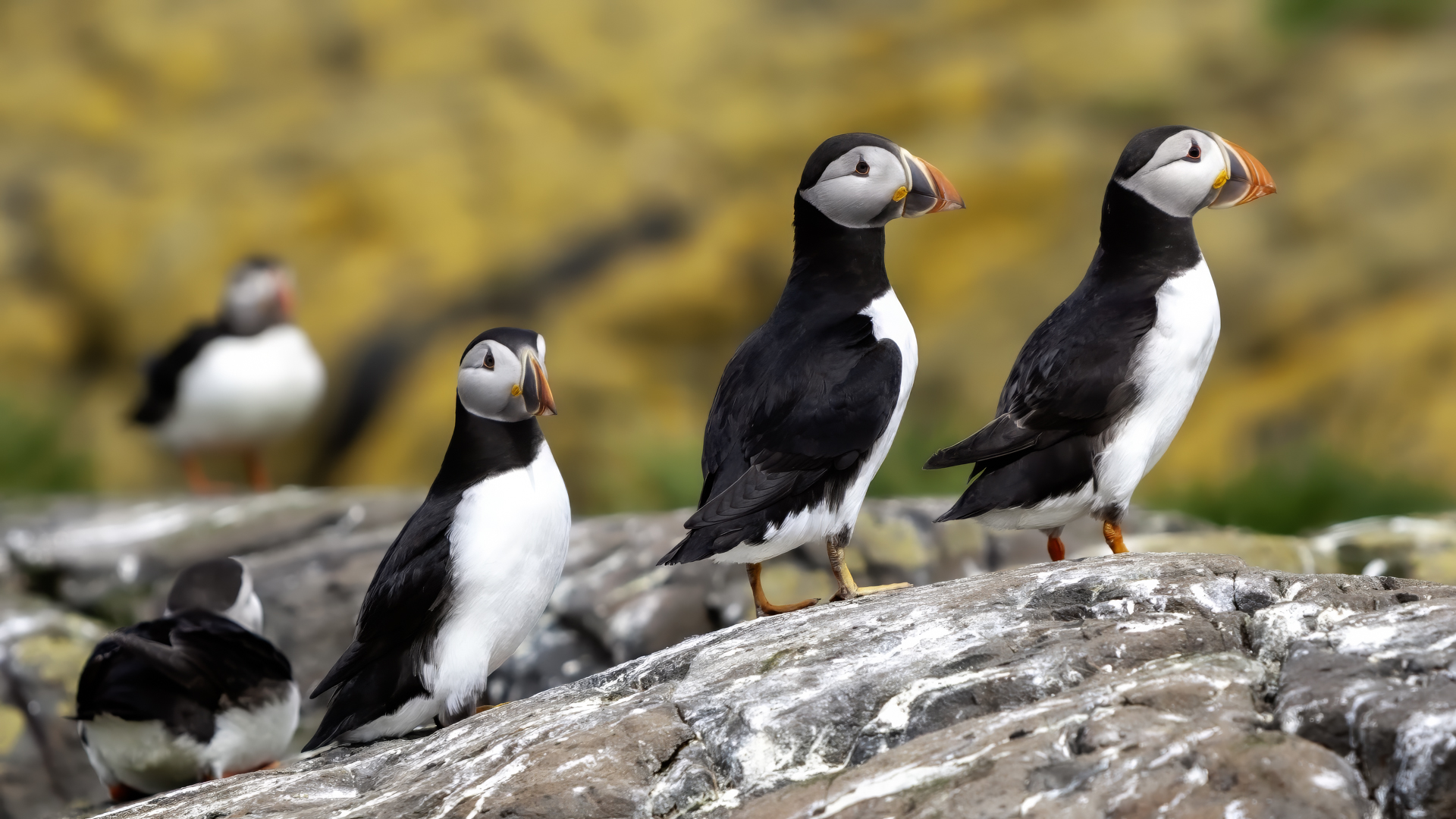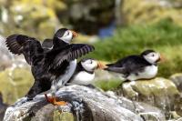 To moje już trzecie spotkanie z ptakami tego gatunku. Najbardziej owocne było pierwsze. Tym razem, mimo, że ptaków były setki, jak nie tysiące, odległość była zawsze dość znaczna. Ale udało się wykonać zdjęcia całych kolonii maskonurów oraz kilka dynamicznych ujęć w locie.