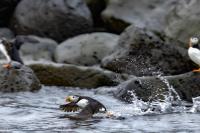 Wyjechać z Islandii bez zobaczenia maskonura to tak jakby być w Afryce i nie zobaczyć słonia. Wszędzie, zwiedzając Islandię widać pocztówki z maskonurami, maskotki maskonurów i inne pamiątki wykorzystujące urok tego bajecznie kolorowego ptaka, nie do pomylenia z innym gatunkiem. Podobno populacja maskonurów na Islandii liczona jest w milionach osobników. Niestety te duże kolonie są najczęściej w niedostępnych miejscach lub po prostu na małych nie zamieszkałych wyspach. Tym razem nasze spotkanie nie było tak bliskie, jak w Szkocji, bo obserwowałem ptaki z łodzi z kilkunastu, kilkudziesięciu metrów. Niestabilna łódź utrudniała wykonanie zdjęć, podobnie z resztą jak aura. Niemniej jednak, maskonurów były setki, jak nie tysiące i najtrudniej było zdecydować, którego na maskonura się zdecydować, by wykonać dynamiczne zdjęcia tego pięknego ptaka. Widok kolonii tych ptaków jest naprawdę nieprzeciętny i przy każdej okazji, warto skorzystać i wrócić do obserwacji tych ptaków. Zaszły zmiany w galerii, ale że dotychczasowe zdjęcia były dobrej jakości, to nie przebudowywałem galerii, ale dodałem na jej końcu nowe zdjęcia z Islandii