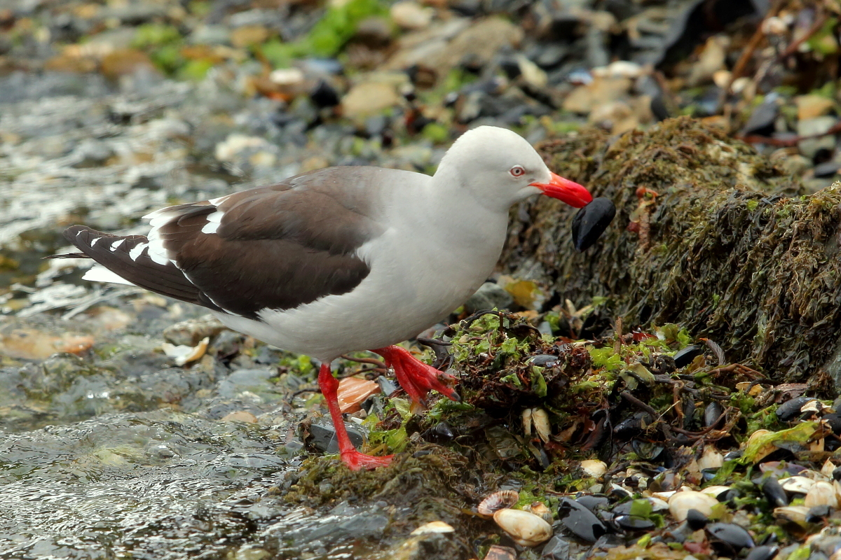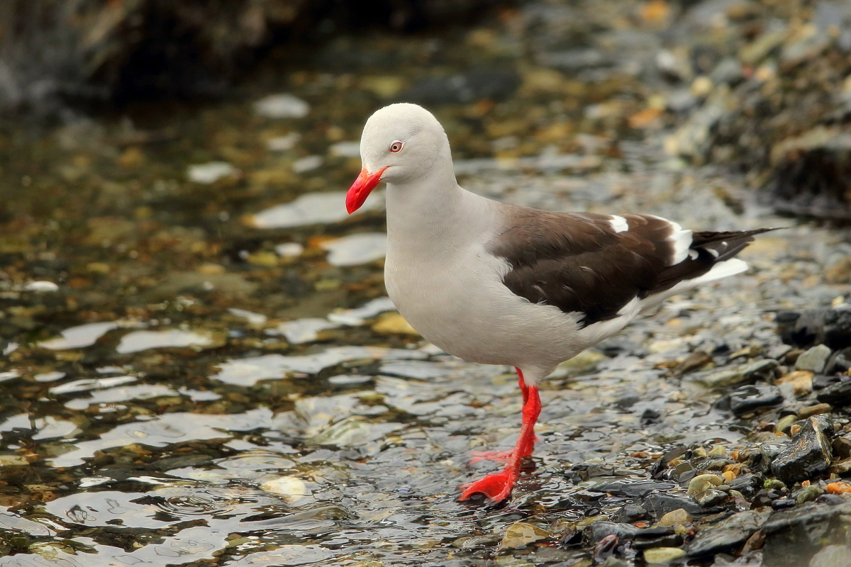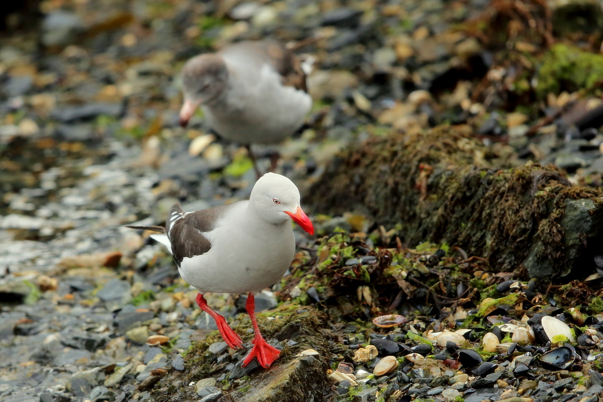 W Ushuaia, w Patagonii, nad morzem dość powszechne były mewy południowe, sporadycznie występowały rybitwy jaskółcze (w koloniach) oraz mewy magellańskie. Według mnie wprowadziły znaczne urozmaicenie do zbioru mew, bo ich „krwisto–czerwone dodatki” podkreślają urodę tego ptaka. Większość fotografii wykonana była w porcie i okolicy. Fotografowanie tych ptaków nie sprawiało trudności, podobnie jak w przypadku mewy śmieszki nad Bałtykiem. Mewa magellańska jest od niej nieco większa. Osiąga rozpiętość skrzydeł nieco ponad metr, a waga jej wynosi około pół kilograma.