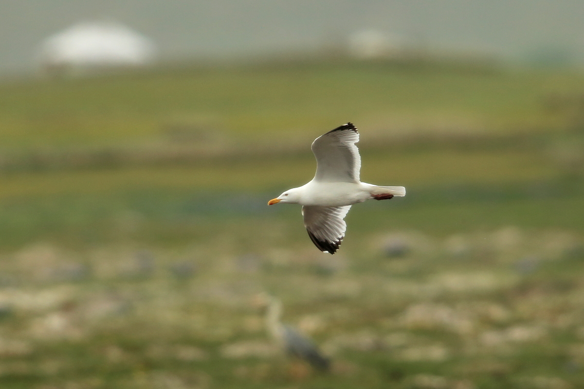 Dość nietypowy gatunek ptaka, jak na warunki jego występowania. Przyzwyczajeni jesteśmy, że mewa kojarzy się zawsze z morzem, oceanem, a tu proszę, Mongolia nie ma dostępu do morza, a ma gatunek mewy występujący w tym kraju. Wszędzie nad zbiornikami wodnymi, czasem nawet niewielkimi, można było zaobserwować te ptaki. Wyczekując na bielika wschodniego czy gęś tybetańską można było wykonać zdjęcia tych ptaków. Mewa mongolska należy do dużych mew. Waga jej to około 850 do 1100 gramów, a rozpiętość skrzydeł - około 1,5 metra.