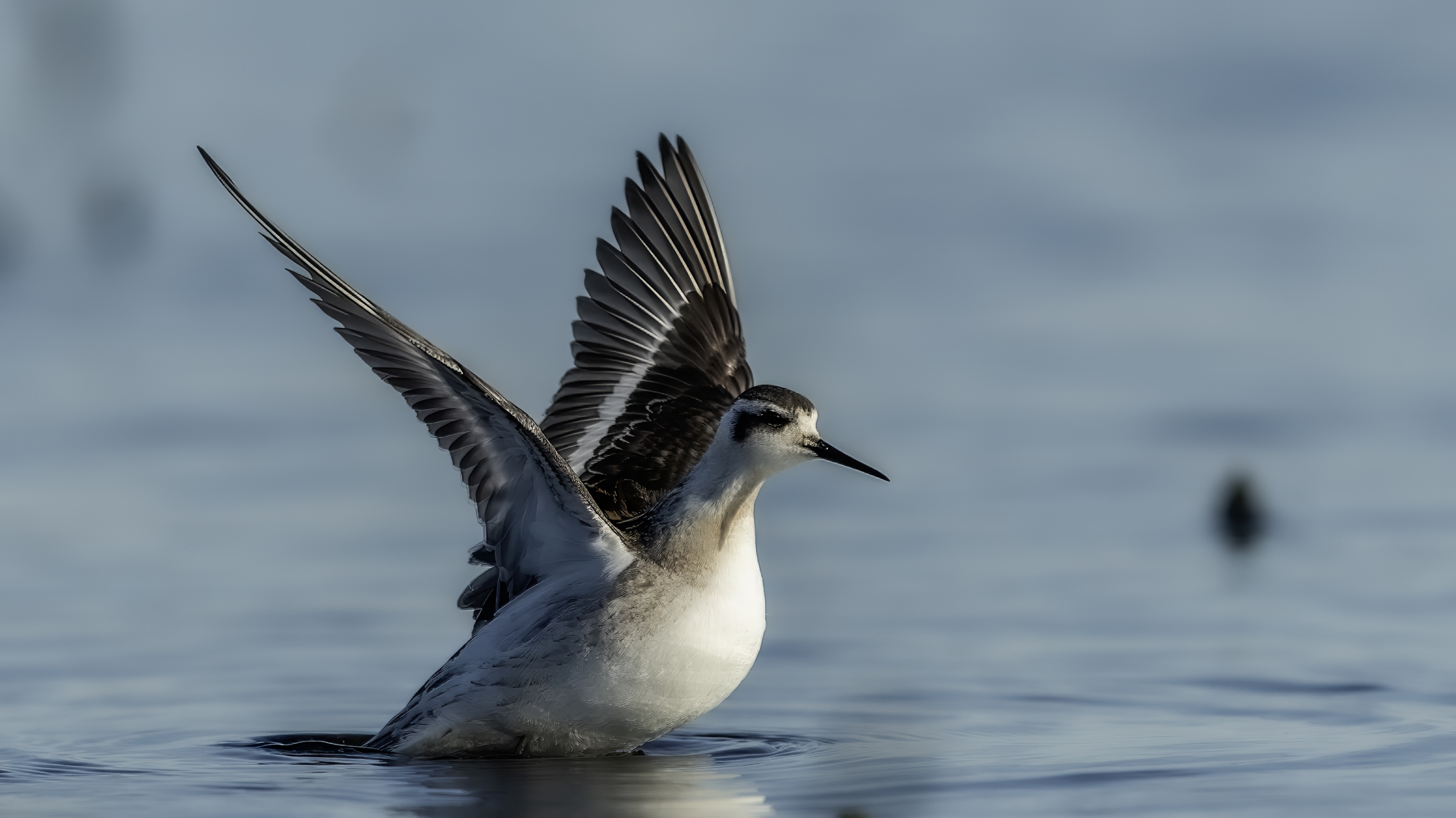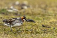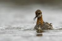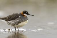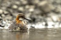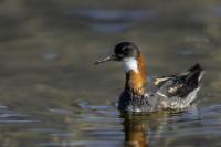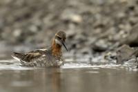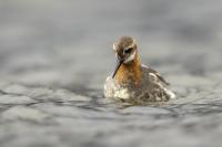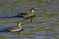 Ciekawy filigranowy ptak żerujący na wodzie w strefie przybrzeżnej, ale także na oczkach wodnych i  jeziorach. Ciekawy z dwóch powodów. Pomijam jego urok, ale gdy siedziałem spokojnie na brzegu jeziora bez większych problemów zawsze przypływał po chwili na odległość pozwalającą wykonać zadowalające zdjęcia. A odległość ta musiała wynosić zaledwie kilka metrów, bo jest to nieduży ptak. Niewiele większy od wróbla, bo waga jego to około 45 gramów, a rozpiętość skrzydeł to około 35 centymetrów. Porównanie z wróblem w przypadku Islandii chyba nie jest trafione, bo na Islandii nie ma wróbli. Tak, jest to pierwszy kraj, w którym nie widziałem wróbli, czy mazurków. Drugim powodem jest odwrócony dymorfizm płciowy. Zazwyczaj to samce w przyrodzie są ciekawiej, barwniej wybarwione, aby jak najlepiej się zaprezentować w walce o względy samicy. U płatkonogów to samica ma piękniejsze ubarwienie niż samiec. Ze znalezieniem płatkonogów nie było problemów. Zdarzyło się raz, że przy drodze wjazdowej do niewielkiego miasta, przy skrzyżowaniu ulic, gdzie był niewielki staw naliczyłem 6 płatkonogów. Prezentowane zdjęcia powstały przy okazji fotografowania innych ptaków, m.in. perkozów rogatych czy lodowca.