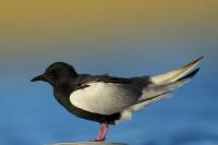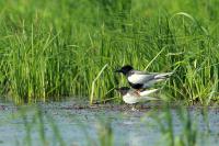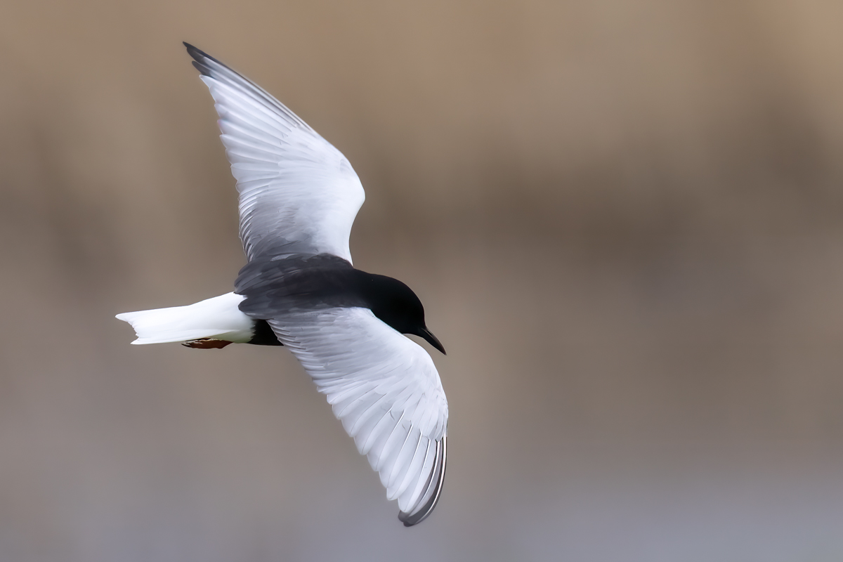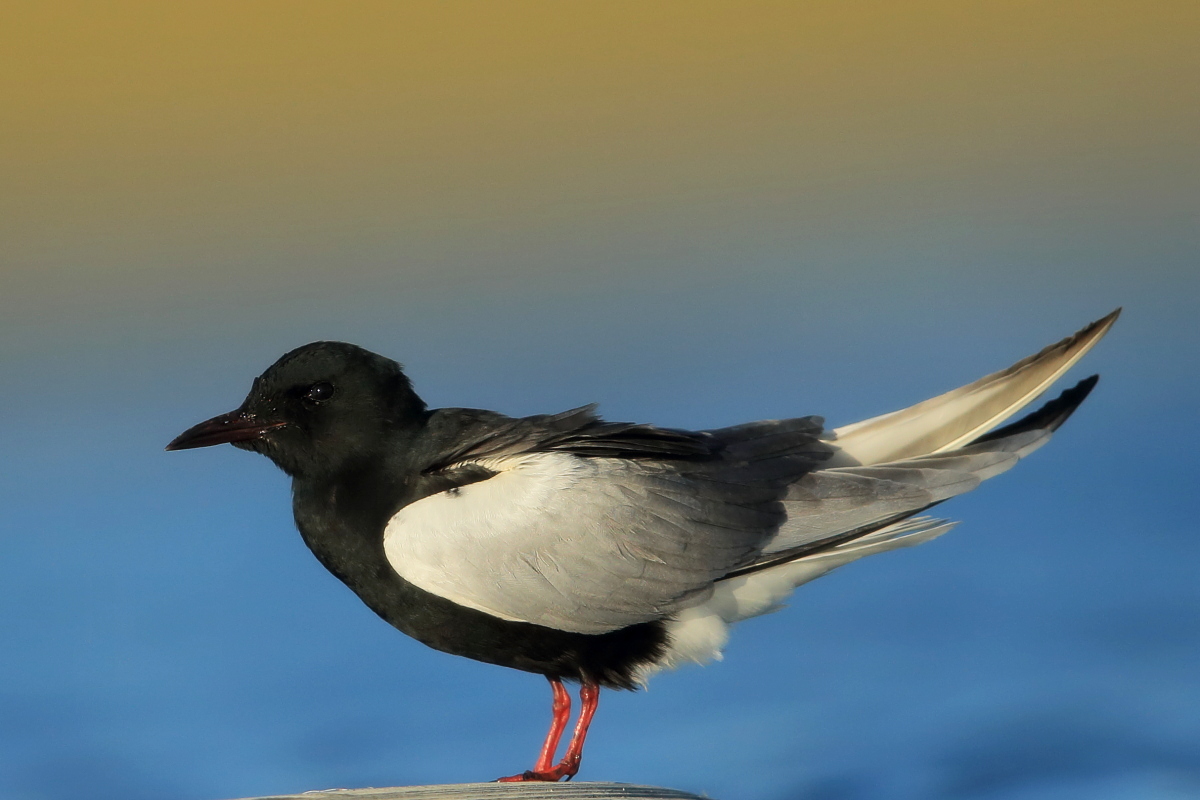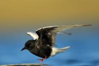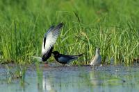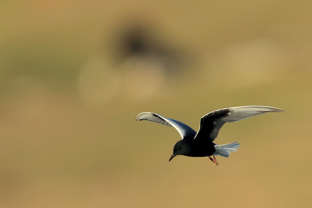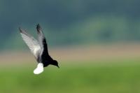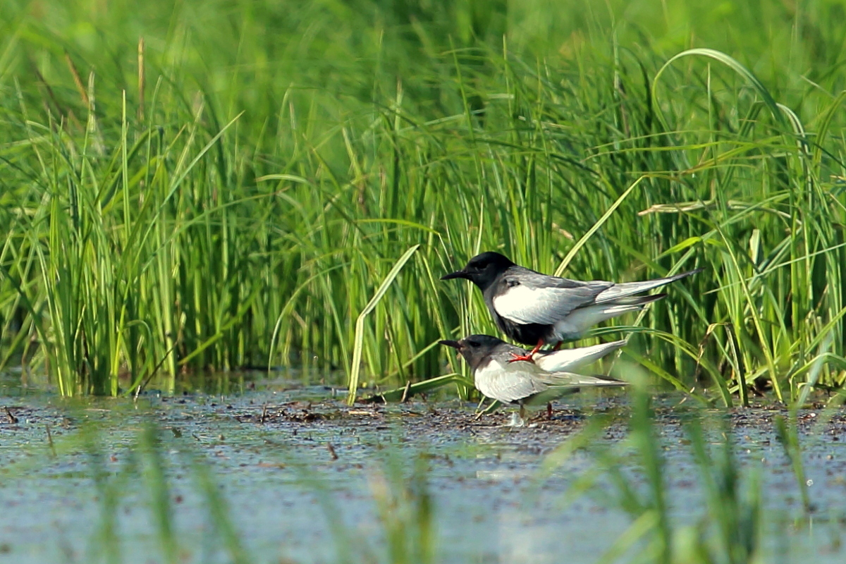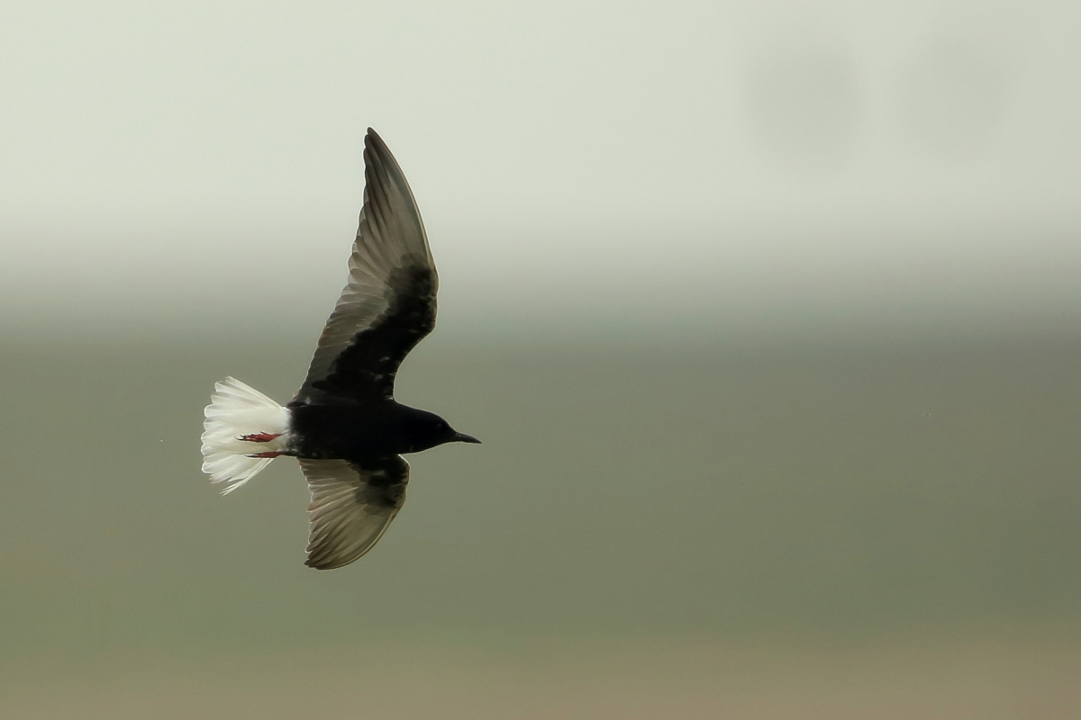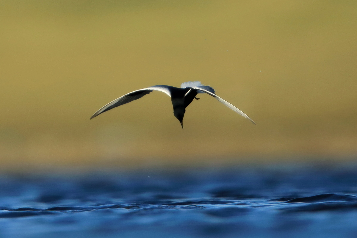 Trudny obiekt do fotografowanie ze względu na dużą mobilność zachowania. Z jednej strony długi teleobiektyw umożliwia zbliżenie i wykonanie satysfakcjonującego zdjęcia, nie mówiąc już o szybszym autofokusie, ale z drugiej strony co z tego, jeżeli często w kadrze znika fotografowany ptak. Krótszy teleobiektyw daje szansę łatwiejszego śledzenia latających rybitw, ale autofokus z racji dużo mniejszego obiektu wolniej działa, no i trzeba mocno kadrować zdjęcie, a więc pogorszyć jego jakość. Nie ma idealnych rozwiązań… Jak Widzicie udało się wykonać kilka zdjęć, na tyle, że powstała niniejsza galeria. Rybitwy żyją w koloniach i co ważne są nie bardzo płochliwe. Nie wymagają nocnych wejść do czatowni, tak jak to ma miejsce w przypadku innych gatunków. Jeżeli w odległości kilkunastu metrów usiądziemy i okryjemy się chociażby siatką maskującą to rybitwy zaakceptują i nadal będą się naturalnie zachowywały. Jedna z mew po 20 minutach usiadła tak blisko przed obiektywem, że nie można było ustawić ostrości i wykonać jej „anatomicznego” zdjęcia. Śledzenie dość szybko poruszających się rybitw to nie lada „ciuciubabka”. Na szczęście co chwila „zawisają” nad wodą i wypatrują zdobyczy. Niestety na tyle wysoko, że w tle mamy niebo, a więc najmniej atrakcyjną opcję. Rzadko schodziły tak nisko, że w tle była zieleń. Rybitwy są pięknym obiektem do fotografowania, szczególnie w szacie godowej. Trzeba mieć dostatecznie dużo czasu i cierpliwości, aby z tysięcy prób dynamicznie poruszających się rybitw, wybrać te godne do ich zaprezentowania. Rybitwa białoskrzydła waży około 60 gramów, przy rozpiętości skrzydeł około 60 cm