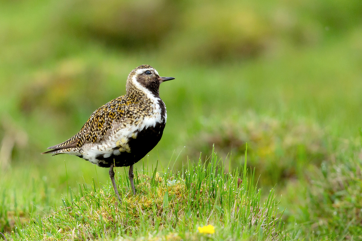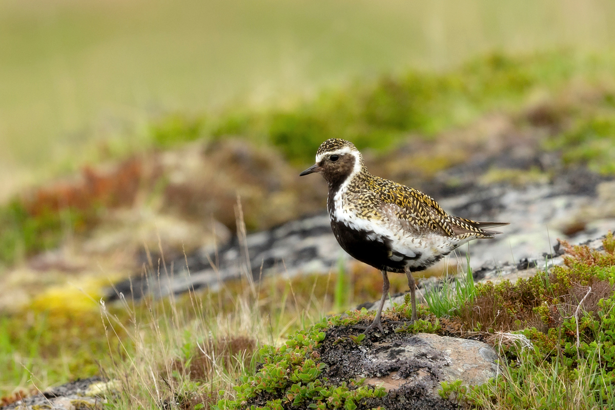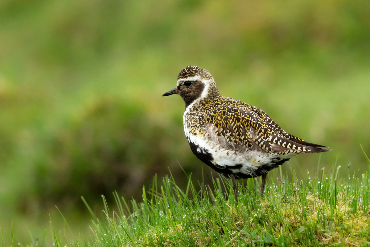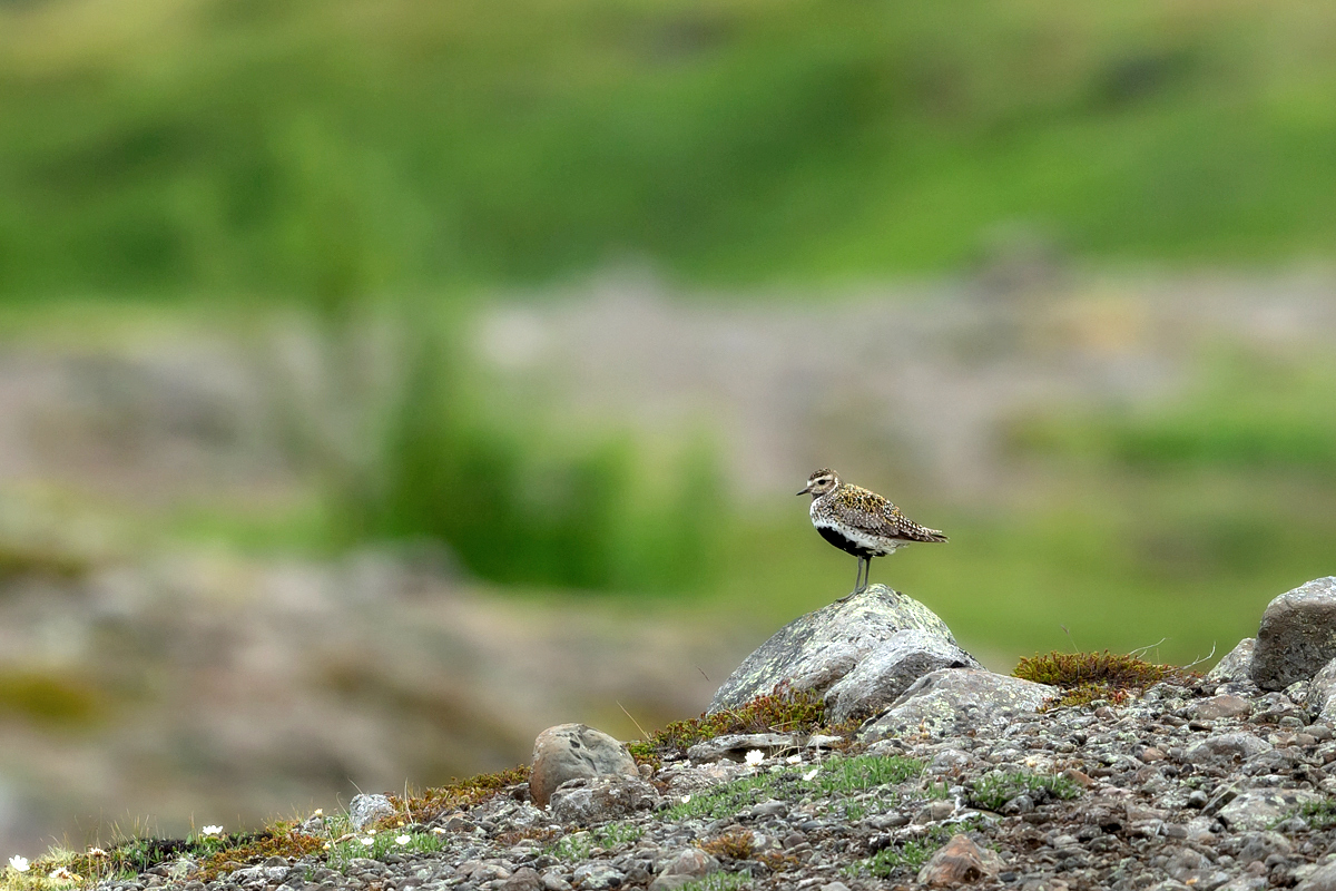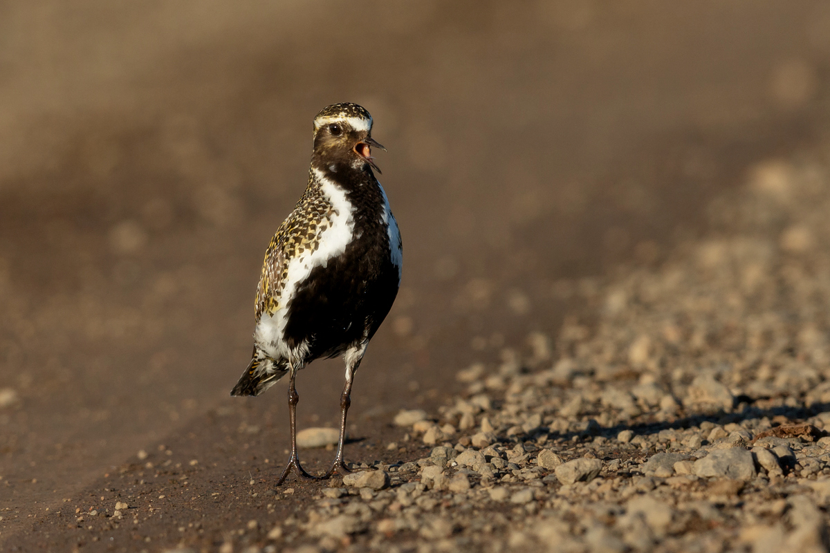 Siewkę złotą miałem przyjemność fotografować kilka razy podczas pobytu na Islandii. Zdarzało się, że jej poszukiwanie zaczynałem w chwili, gdy słyszałem rzewny, pojedynczy pisk siewki. Niestety sam odgłos informował o istnieniu ptaka, ale z jego zlokalizowaniem nie było tak prosto. Kiedy poruszałem się w kierunku głosu bardzo powoli, sieweczka nie zrywała się nagle, jak to robią bażanty żeby zniknąć w oddali, ale powoli zaczynała odchodzić, by zwiększyć odległość na taką, którą uzna za bezpieczną. Jednego poranka trafiła mi się sieweczka, która widać za wszelka cenę chciała być fotografowaną, zamiast kulika mniejszego, za którym podążałem. Nie mogła mieć w pobliżu gniazda, bo ja poruszałem się po drodze, po której okresowo jeżdżą samochody. Kulik powoli przechodził po łące równolegle do drogi tak, że mogłem za nim podążać. Sieweczka była zawsze 10 metrów za mną. Co jakiś czas spojrzałem na nią i nie wiem kto kogo tego poranka obserwował tak naprawdę. Rozpiętość skrzydeł sieweczki złotej to około 75 centymetrów, przy wadze około 300 gramów. Sieweczkę fotografowałem zawsze samą, nigdy nie udało mi się zobaczyć dwóch na raz.