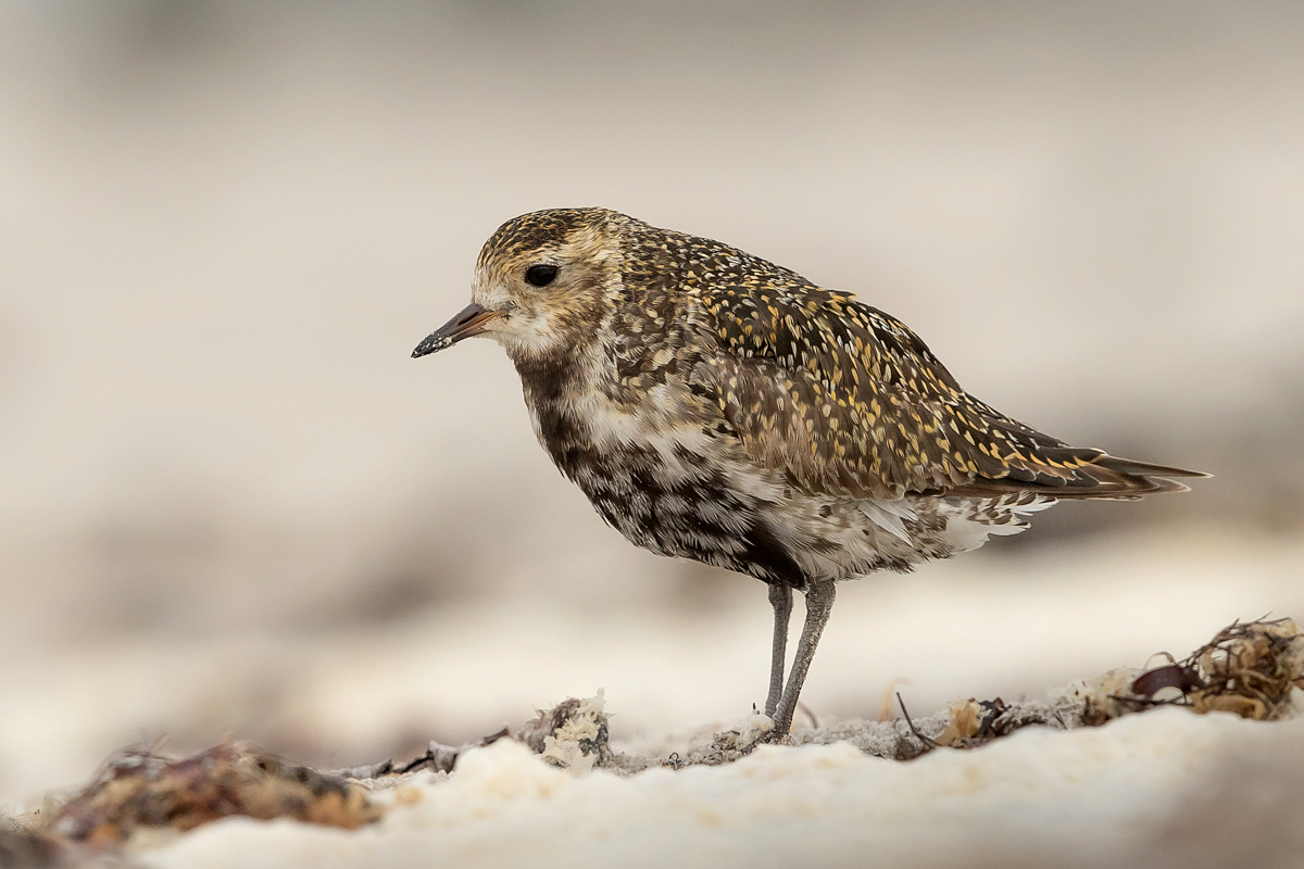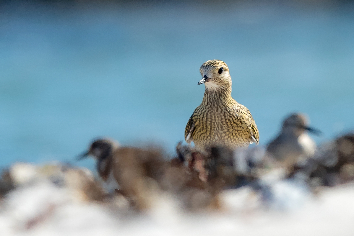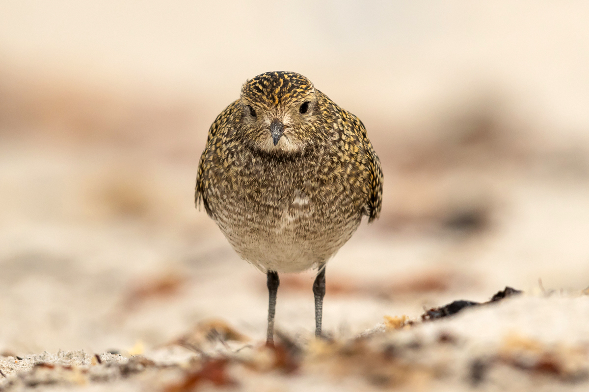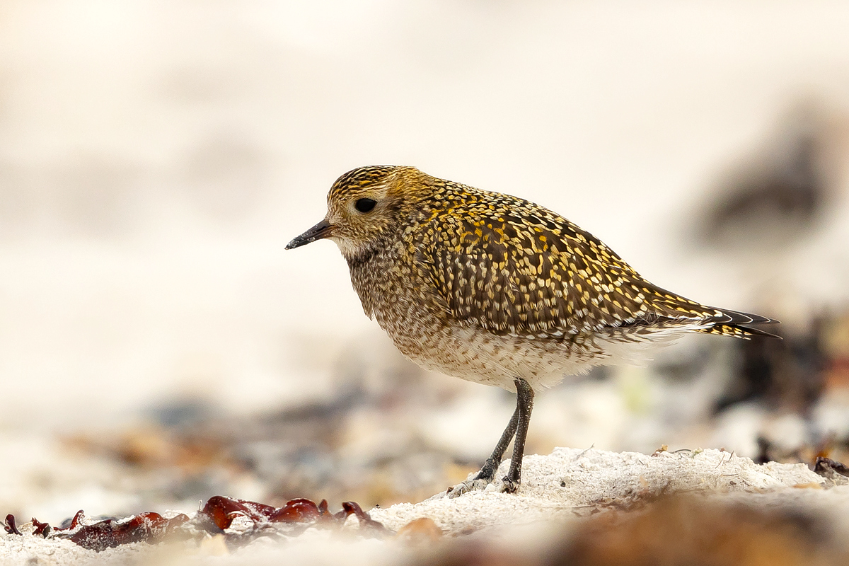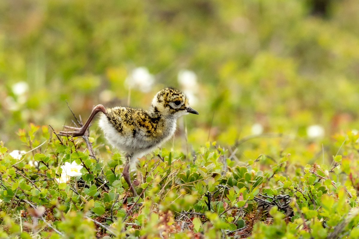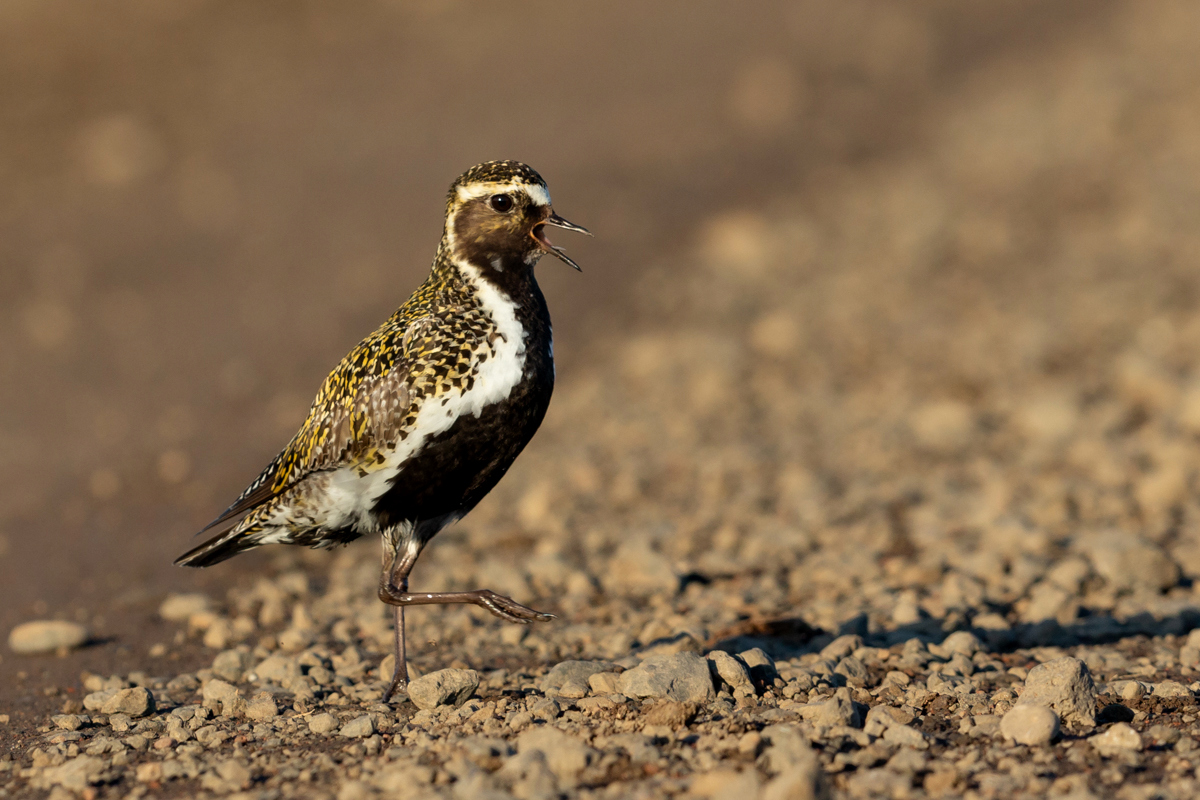 Siewkę złotą miałem przyjemność fotografować kilka razy podczas pobytu na Islandii. Zdarzało się, że jej poszukiwanie zaczynałem w chwili, gdy słyszałem rzewny, pojedynczy pisk siewki. Niestety sam odgłos informował o istnieniu ptaka, ale z jego zlokalizowaniem nie było tak prosto. Kiedy poruszałem się w kierunku głosu bardzo powoli, sieweczka nie zrywała się nagle, jak to robią bażanty żeby zniknąć w oddali, ale powoli zaczynała odchodzić, by zwiększyć odległość na taką, którą uzna za bezpieczną. Jednego poranka trafiła mi się sieweczka, która widać za wszelka cenę chciała być fotografowaną, zamiast kulika mniejszego, za którym podążałem. Nie mogła mieć w pobliżu gniazda, bo ja poruszałem się po drodze, po której okresowo jeżdżą samochody. Kulik powoli przechodził po łące równolegle do drogi tak, że mogłem za nim podążać. Sieweczka była zawsze 10 metrów za mną. Co jakiś czas spojrzałem na nią i nie wiem kto kogo tego poranka obserwował tak naprawdę. Rozpiętość skrzydeł sieweczki złotej to około 75 centymetrów, przy wadze około 300 gramów. Sieweczkę fotografowałem zawsze samą, nigdy nie udało mi się zobaczyć dwóch na raz.