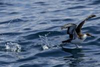Podziwiając zdjęcia rurkonosych w Internecie można je tak naprawdę docenić dopiero kiedy samodzielnie próbuje się wykonać takie zdjęcia. Pomijam już problemy logistyczne z dotarciem na wyspę Scilly w Anglii, choć też warto o nich wspomnieć, bo nie była to łatwa i przyjemna podróż, ale pełna utrudnień i niespodzianek. Jednak fotografowanie na otwartym oceanie było nie lada wyzwaniem. Czym gorsza i bardziej wietrzna pogoda, tym większe prawdopodobieństwo spotkania ptaków. Ale dla fotografujących oznacza to trudności techniczne związane z samym fotografowaniem. Bo jak tu fotografować długimi teleobiektywami z pokładu niewielkiej łodzi, gdy samemu trudno zachować równowagę. Ręce zajęte sprzętem, a ptaki pojawiały się czasem w dość znacznej odległości. Jest to duże wyzwanie techniczne i próba refleksu dla oka i autofokusa. Oczywiście większość zdjęć trafiła do kosza, ale na szczęście nie zawsze było tak źle, nie zawsze padał deszcz, a ptaki czasami pojawiały się naprawdę blisko. Poziom trudności był taki sam jak przy fotografowaniu albatrosów. Pewnym rozwiązaniem jest zabranie dwóch zestawów do fotografowania: 600 i 300 milimetrowych obiektywów. Oczywiście jest duże ryzyko upadku nieużywanego zestawu, ale czego się nie robi dla uwiecznienia nowych gatunków. Czasami ptaki szybowały na tyle długo i spokojnie, że była sekunda, dwie na zmianę zestawu. Na przykład wydrzyk długosterny w pewnym momencie pojawił się tak blisko, i to nad naszymi głowami, że nawet 300-tka nie zmieściła ptaka w kadrze. Zupełnie inaczej było z nawałnikami burzowymi. Dynamika ich lotu i filigranowa sylwetka piętrzyły trudności w wykonaniu zdjęć. Mam wrażenie, że część prezentowanych zdjęć powstała wręcz przypadkowo. Tym, którzy próbowali wykonać zdjęcia jaskółek nad wodą, dopowiem, aby do tych utrudnień związanych z fotografowaniem ptaków dodali problemy ze staniem na łodzi, falami, które czasami znienacka zasłaniają ptaka. Czasu potrzebnego na ustawienie ostrości przez autofokus już nie było. Była to duża próba sprawności i jak zwykle potrzeba było trochę szczęścia. Niespełna 20 godzin spędzonych na łodzi, w trzech podejściach, zakończyło się uwiecznieniem 5 gatunków burzyków, nawałnika burzowego, dwóch gatunków wydrzyków, fulmarów oraz głuptaków. Niestety część z zaprezentowanych zdjęć ma wartość jedynie dokumentacyjną, ale może kiedyś i w przypadku tych rzadkich i trudnych w fotografowaniu gatunków pojawi się okazja na zmiany w tych galeriach. Tak jest teraz z galerią burzyka północnego, która z kilku dokumentacyjnych zdjęć radykalnie zmieniła swą zawartość. Tradycyjnie na stronie pozostaje ślad po spotkaniu z nowymi gatunkami, czy jednak będą zmiany w tych galeriach, czas pokaże. Podziękowania i pozdrowienia dla Boba, organizatora samych rejsów, no i Cezarego, bez którego nie byłoby samej wyprawy. Mimo trudności organizacyjnych, pogodowych warto było znieść to wszystko na bezkresnym oceanie na chyboczącej się łodzi, by móc podziwiać tych doskonałych i wytrawnych lotników, jakimi są ptaki morskie…