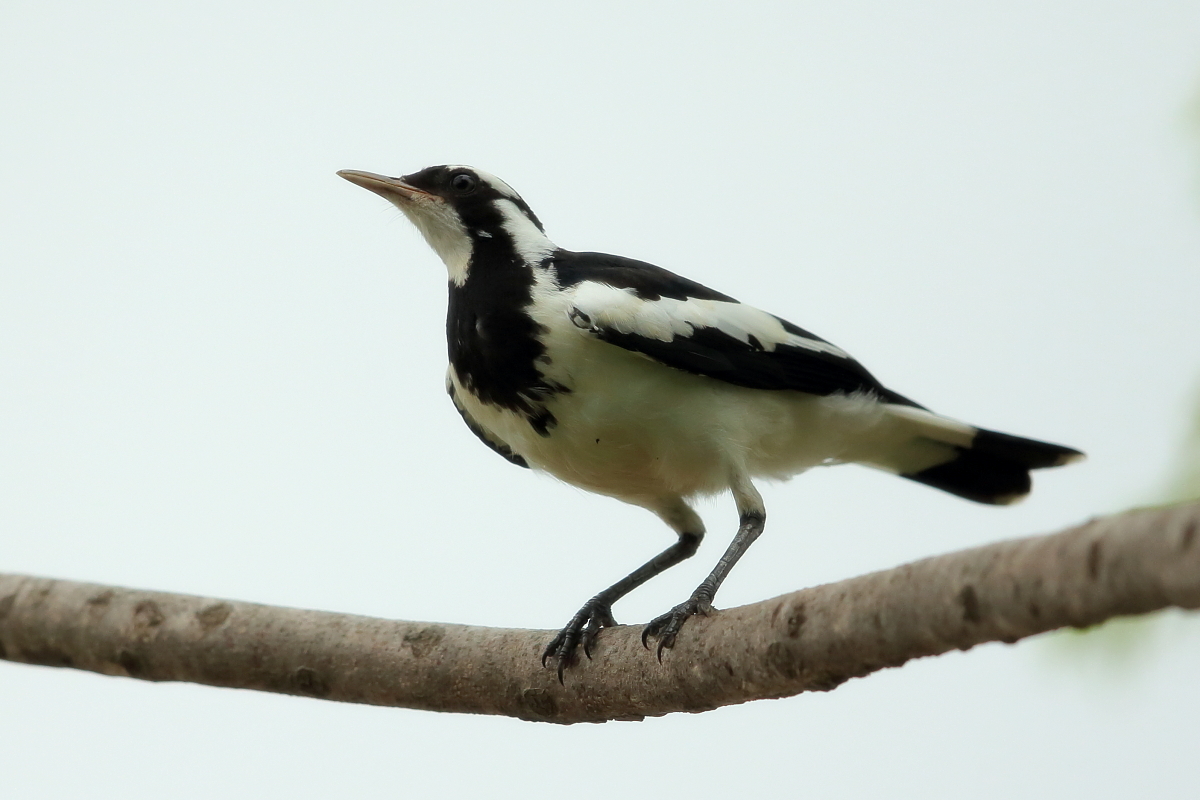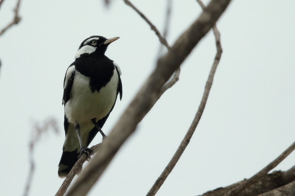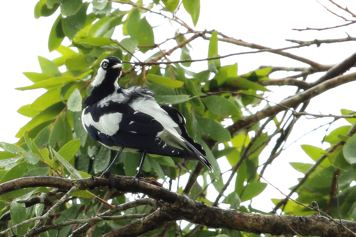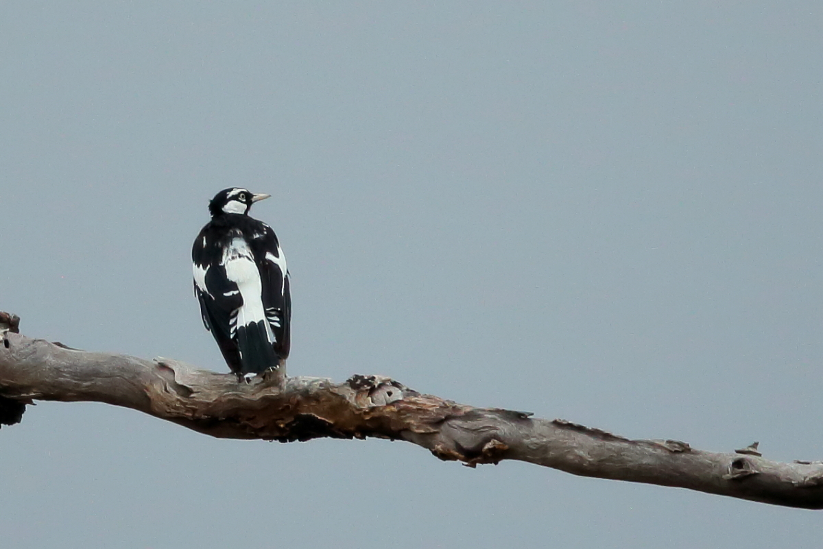 Dość powszechnie występuje w całej Australii. Kolorystyka upierzenia nakazuje kojarzenie ją z naszą sroką. Jest jednak od niej nieco mniejsza i lżejsza. Długość ciała nie przekracza 30 centymetrów, a wag to około 100 gramów (60-120 gramów) . Ciekawym jest, że buduje gniazdo, podobnie jak nasze jaskółki z gliny. Jest owadożerna i bardzo terytorialna, do tego stopnia, że może zaatakować człowieka na swoim terytorium. Jako nieliczny ptak potrafi śpiewać w duetach.