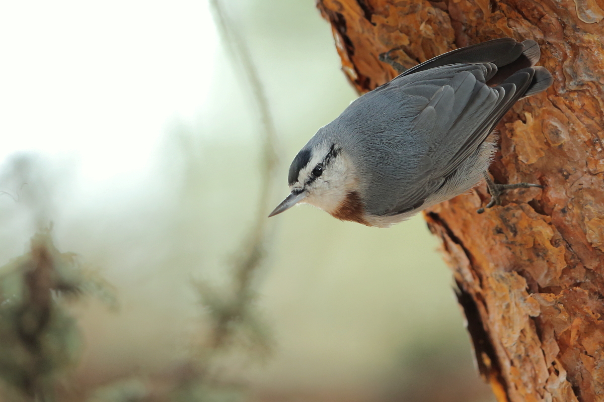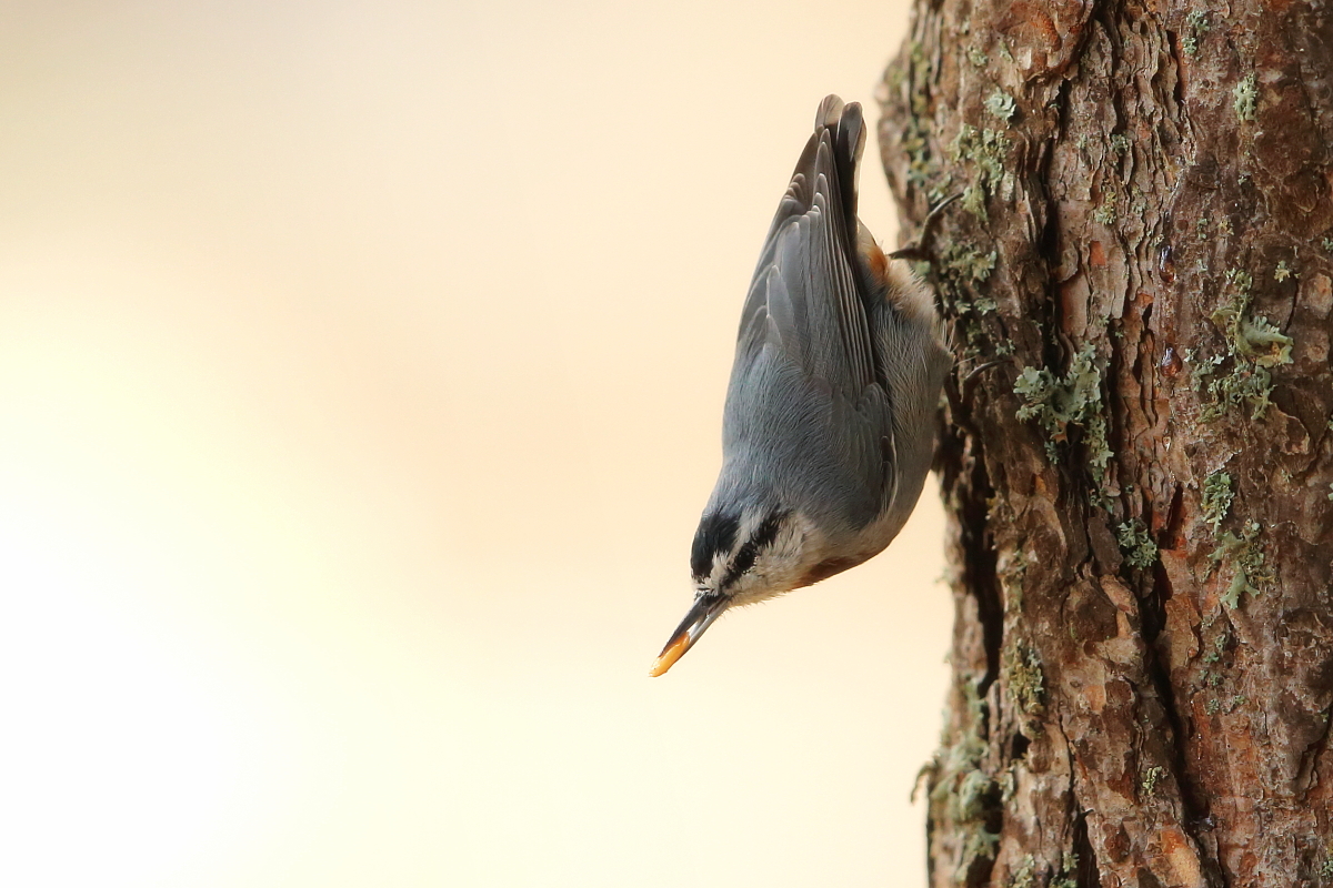 Kerem, już na początku naszego spotkania powiedziałem, że nie wyjeżdżam z Turcji bez zdjęć kowalika tureckiego. Powody takiego stwierdzenia są dwa. Pierwszy, najważniejszy, to że to ptak z logo firmy Kerema. Tak, więc mieć go w swojej galerii to dla mnie bezwzględnie ważne. Druga, nie mniej ważna sprawa, to to, że można go spotkać wyłącznie w tej części świata. Poszliśmy do pięknego parku, gdzie były starodrzewia sosnowe. Trochę poszukiwań i powstają pierwsze zdjęcia. Niestety kowalik turecki, jest bardziej bojaźliwy od naszego kowalika, choć, w miarę upływu czasu, chyba nabierał zaufania i powstawały coraz to nowe zdjęcia, z coraz bliższej odległości. Wydaje zupełnie inne odgłosy od naszego kowalika. Tak, jak lubię fotografować nasze kowaliki, ten wykonywał  zupełnie takie same charakterystyczne ruchy. Ciekawym jest, że kowalik magazynuje pożywienie. Ktoś w parku pozostawił jakieś chrupki, a kowalik raz po raz podlatywał do opakowania, zabierał jeden płatek i leciał na drzewo wciskając między korę płatek. Stojąc w odległości kilku metrów, udało się wykonać wiele zdjęć. Jego zachowanie było zgoła odmienne sprzed godziny, gdzie fotografowaliśmy ptaki z dość dużej odległości. Kowalik turecki jest nieco mniejszy od naszego i co ciekawe, że obok niego występował nasz kowalik europejski, ale także w niedalekiej odległości udało się sfotografować kowalika skalnego. Niesamowite, jedyne miejsce na ziemi, gdzie występują trzy odmiany kowalika, a jak trochę rozszerzymy krąg występowania w kierunku wschodnim, to cztery, bo występuje tam kowalik duży, który żyje podobnie jak kowalik skalny w górach, ale jest od niego większy.  Nie ma co miała być galeria kowalika tureckiego i jest …