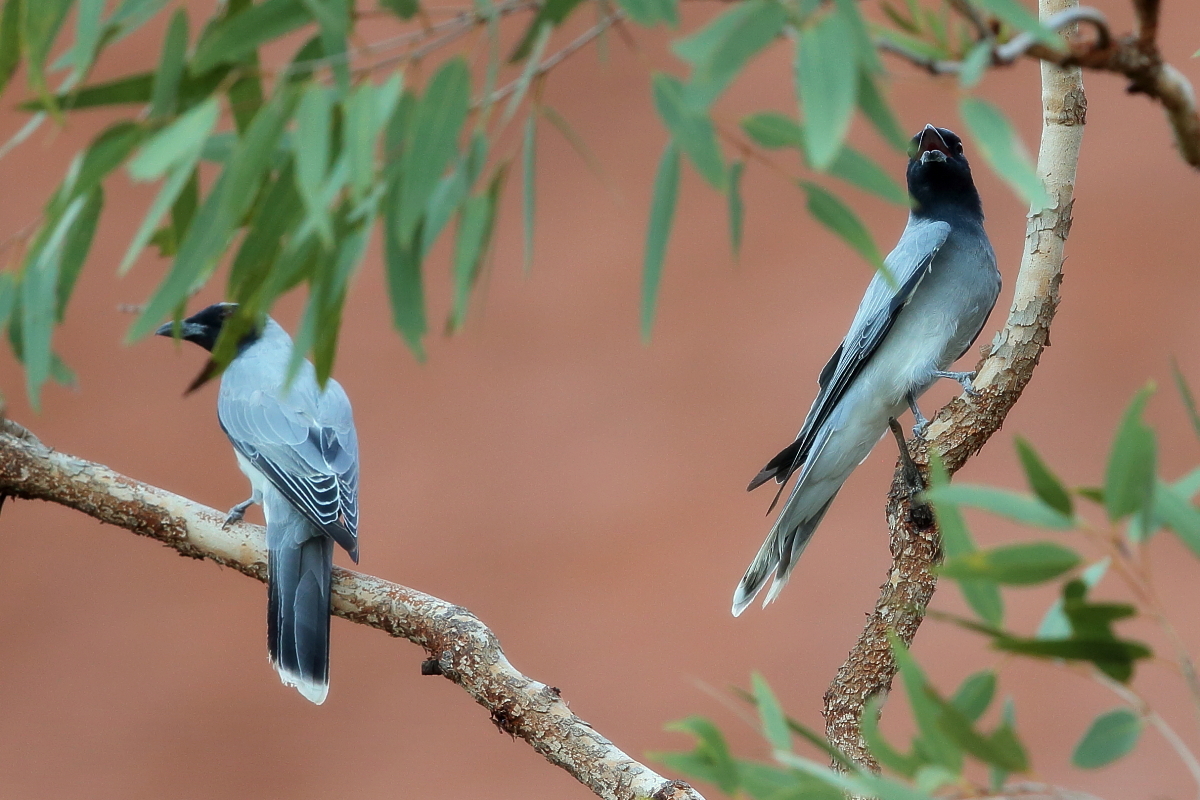 Dwa spotkania zaowocowały powstaniem prezentowanych zdjęć. Kruczyna czarnolica to średniej wielkości ptak. Długość  ciała to około 33 cm.  Występuje  w Australii, Nowej Gwinei. Jest wszystkożerny: zjada owoce, nasiona, ale także owady, bezkręgowce. Młode po opuszczeniu gniazda nie mają tak wykształconej „maski”  jak dorosłe osobniki. Jest ona znacznie mniejsza. Patrząc na prezentowane zdjęcia, chyba udało mi się spotkać i sfotografować raz dorosłego osobnika, raz młodego. Co ciekawe, ten gatunek jest w Australii pod ochroną.