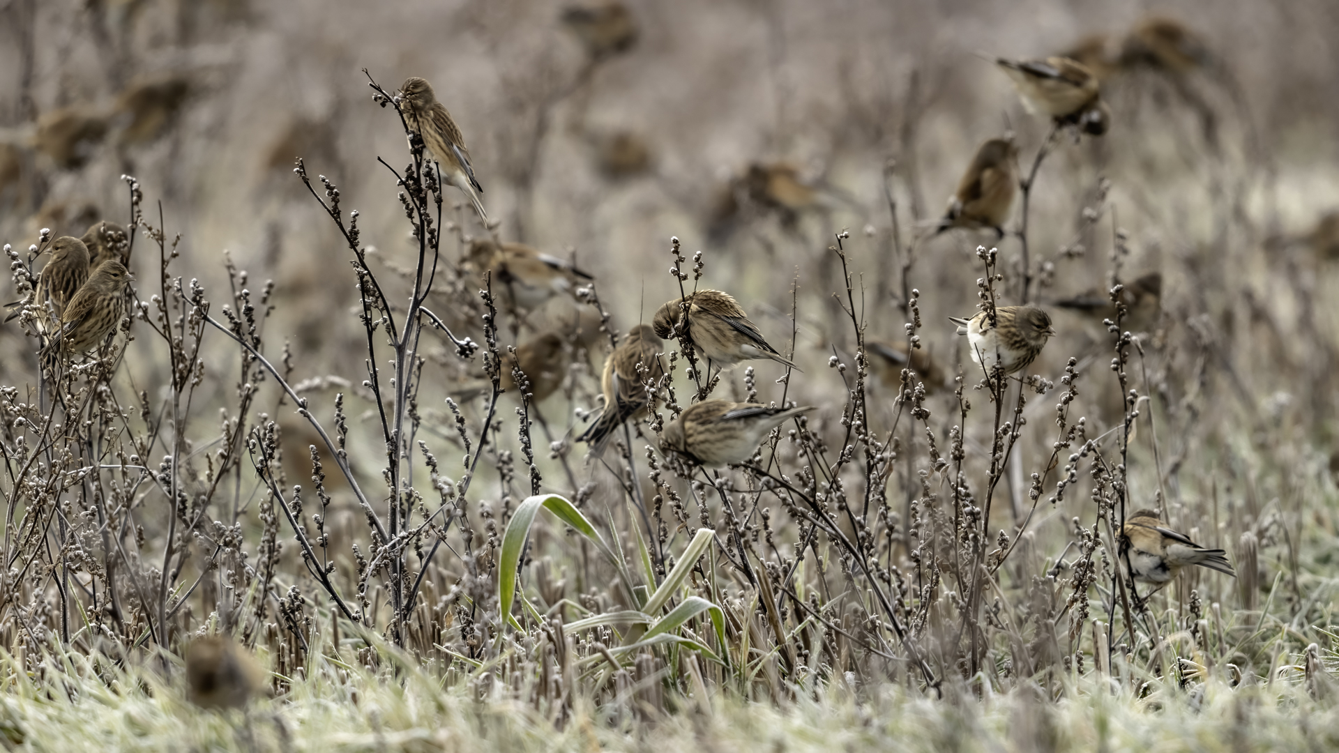 Na przestrzeni ostatnich lat powstało kilka przypadkowych zdjęć makolągwy. Te zdjęcia oraz te wykonane w grudniu 21’ były powodem do przebudowy galerii. Tym razem ptaki żerowały stadnie. Stado liczyło 60 osobników. Niestety stado było bardzo płochliwe i nerwowe- powodem był krogulec, który kilka razy próbował swoich sił łowieckich na moich oczach.