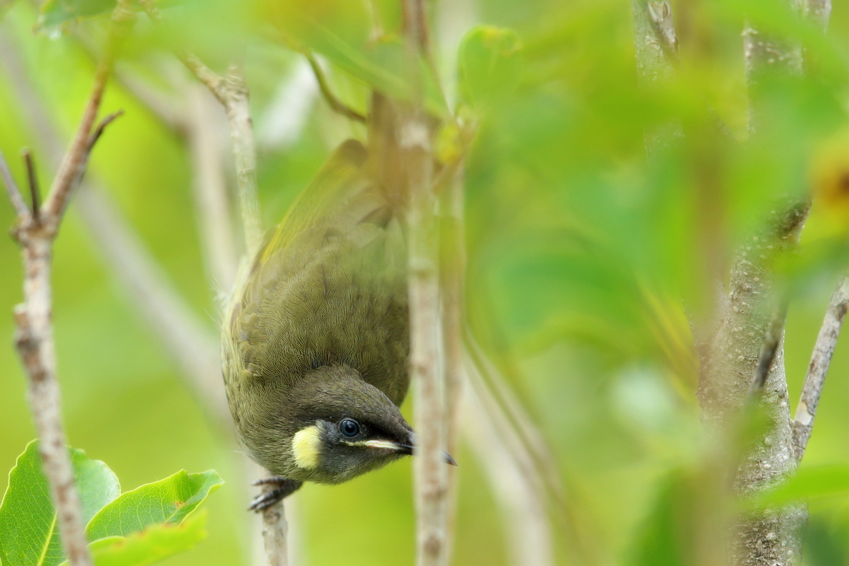 Kolejny przedstawiciel rodziny miodojadów uwieczniony w Australii. Miodojad ciemny jest nieco większy od wróbla, dorasta do około 20 cm. Niestety, przynajmniej jak dla mnie, bardzo rzadki. Udało się wykonać tylko kilka zdjęć z jednego miejsca.