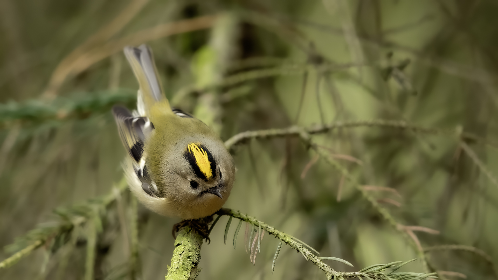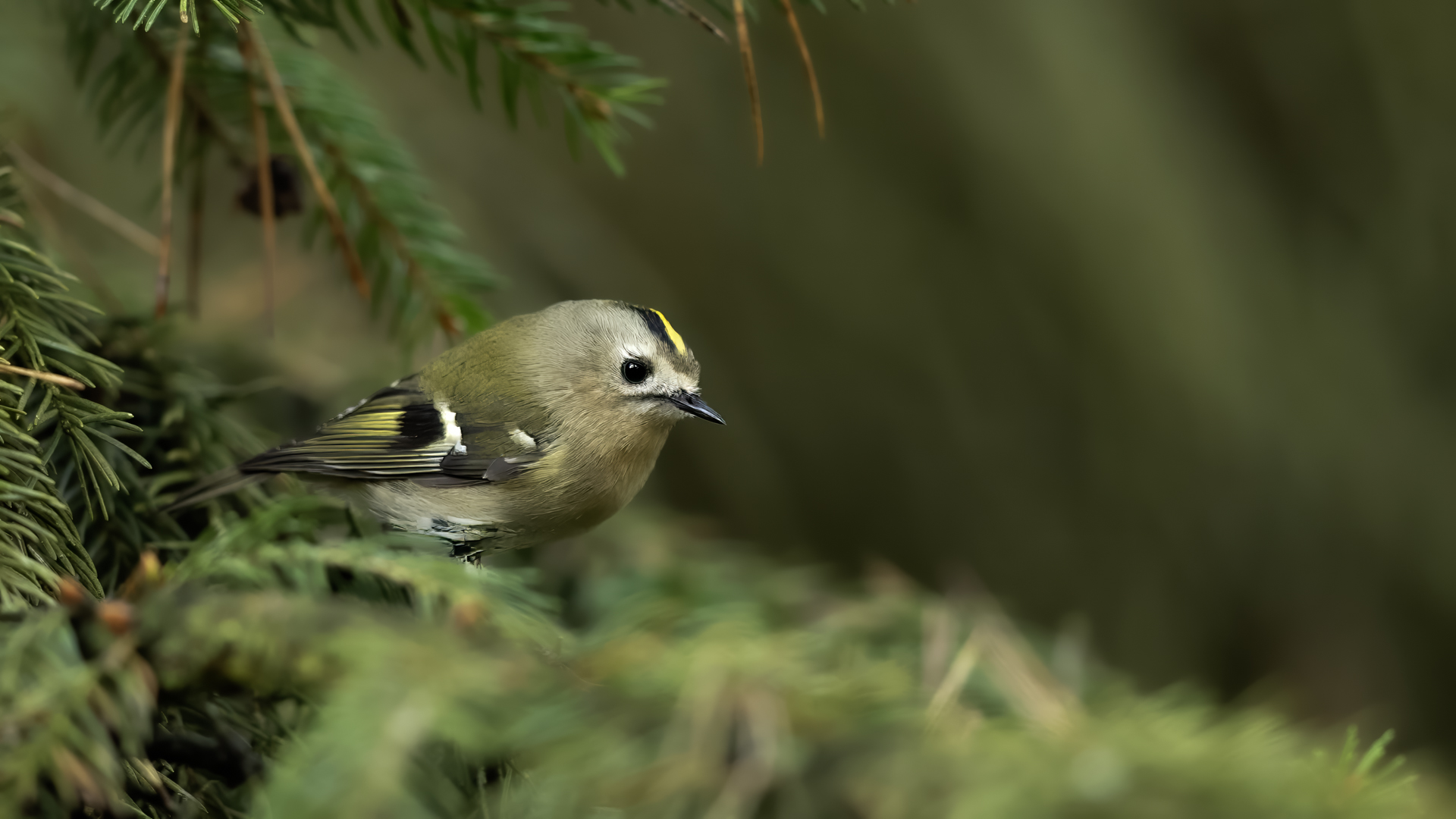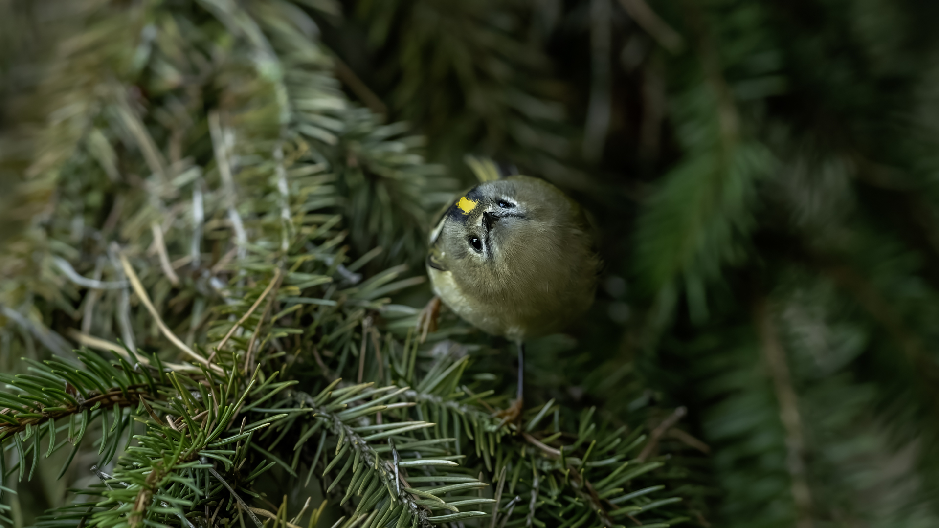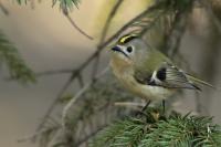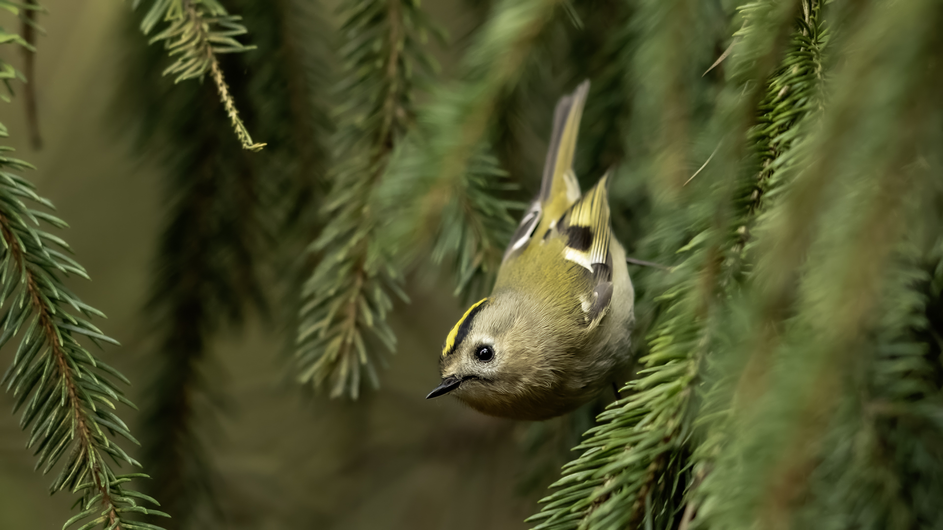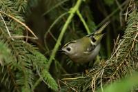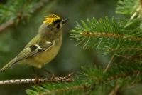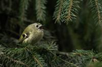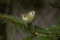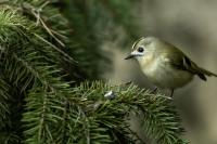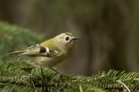 Jeżeli zobaczysz w lesie grupę starych, dorodnych świerków, możesz być prawie pewien, że będą tam żyły mysikróliki. Niestety trudno je dostrzec, gdyż wolą korony drzew i „wewnętrzną” stronę świerka. Ale czemu tu się dziwić, skoro jest uznany za najmniejszego europejskiego ptaka. Jego masa ciała to około 5 gramów ! Przy takich rozmiarach trzeba się obawiać wszystkiego. Sam fotografując mysikróliki widziałem, jak uciekały przed szpakiem (masa ciała około 80 gramów, czyli kilkanaście razy większy od niego). To porównanie dość dobrze obrazuje jego niewielkie, wręcz miniaturowe rozmiary. Zapewniam, że nadrabia urodą. Jego żółty „przedziałek” na głowie, oliwkowe ubarwienie z elementami bieli i czerni powoduje, że chętnie do niego wracam, jako tematów plenerowych. Identyfikując mysikrólika trzeba uważać, bo łatwo go pomylić ze zniczkiem. Pod względem rozmiarów i na pierwszy rzut oka są niemal identyczne, dopiero po bliższym porównaniu da się zauważyć, białą brewkę nad okiem zniczka. Mysikrólik mimo swej drobnej postury zimuje u nas. Tak więc możemy się cieszyć jego obserwowaniem przez cały rok i to praktycznie wszędzie (skupiska świerków). Zapewniam, że widok poruszających się po gałązce świerku ptasich, jakże pięknych miniaturek, jest niemałym przeżyciem. Zobacz też opis zniczka.