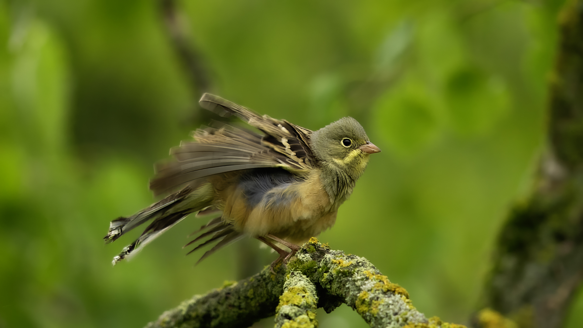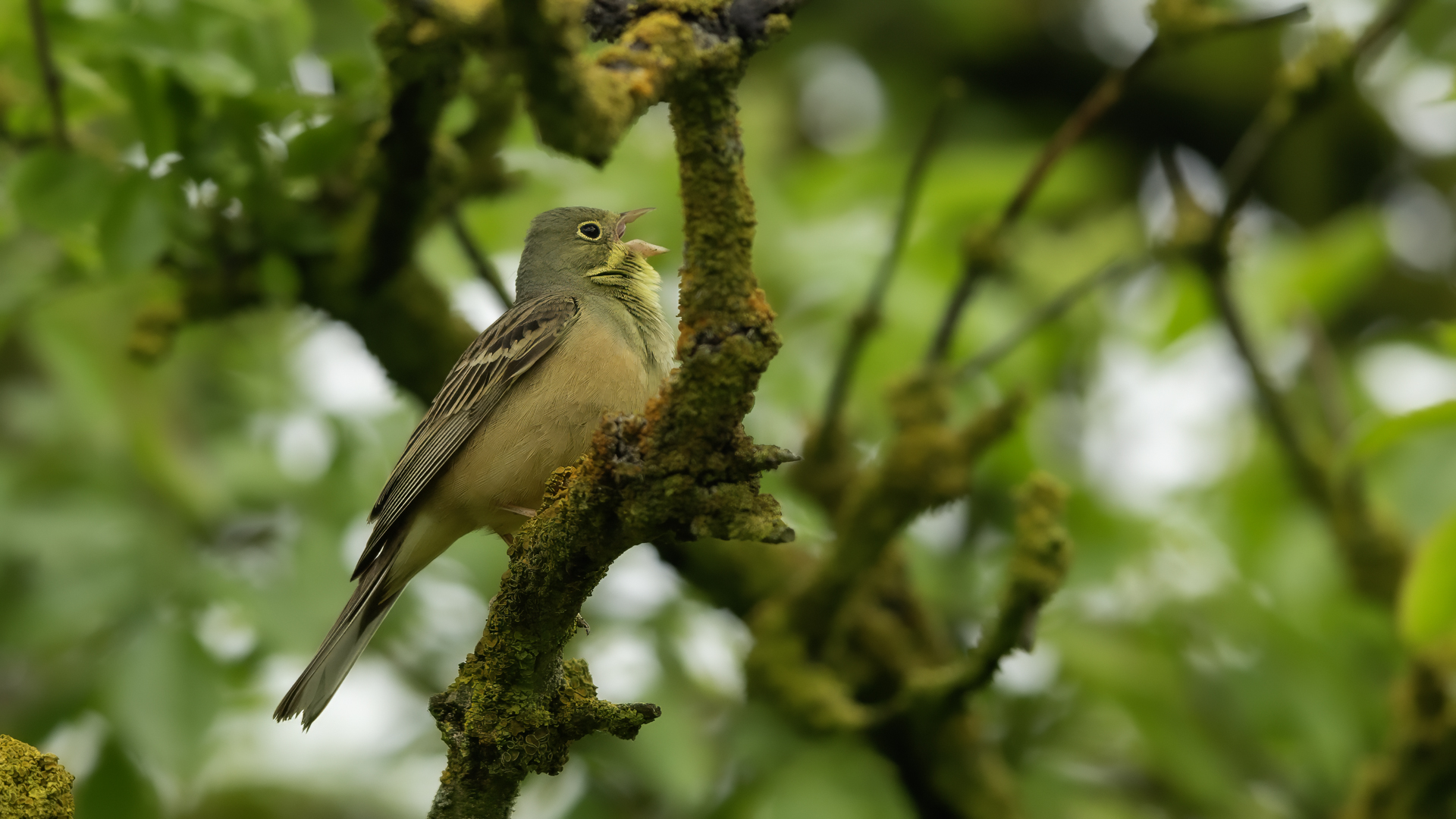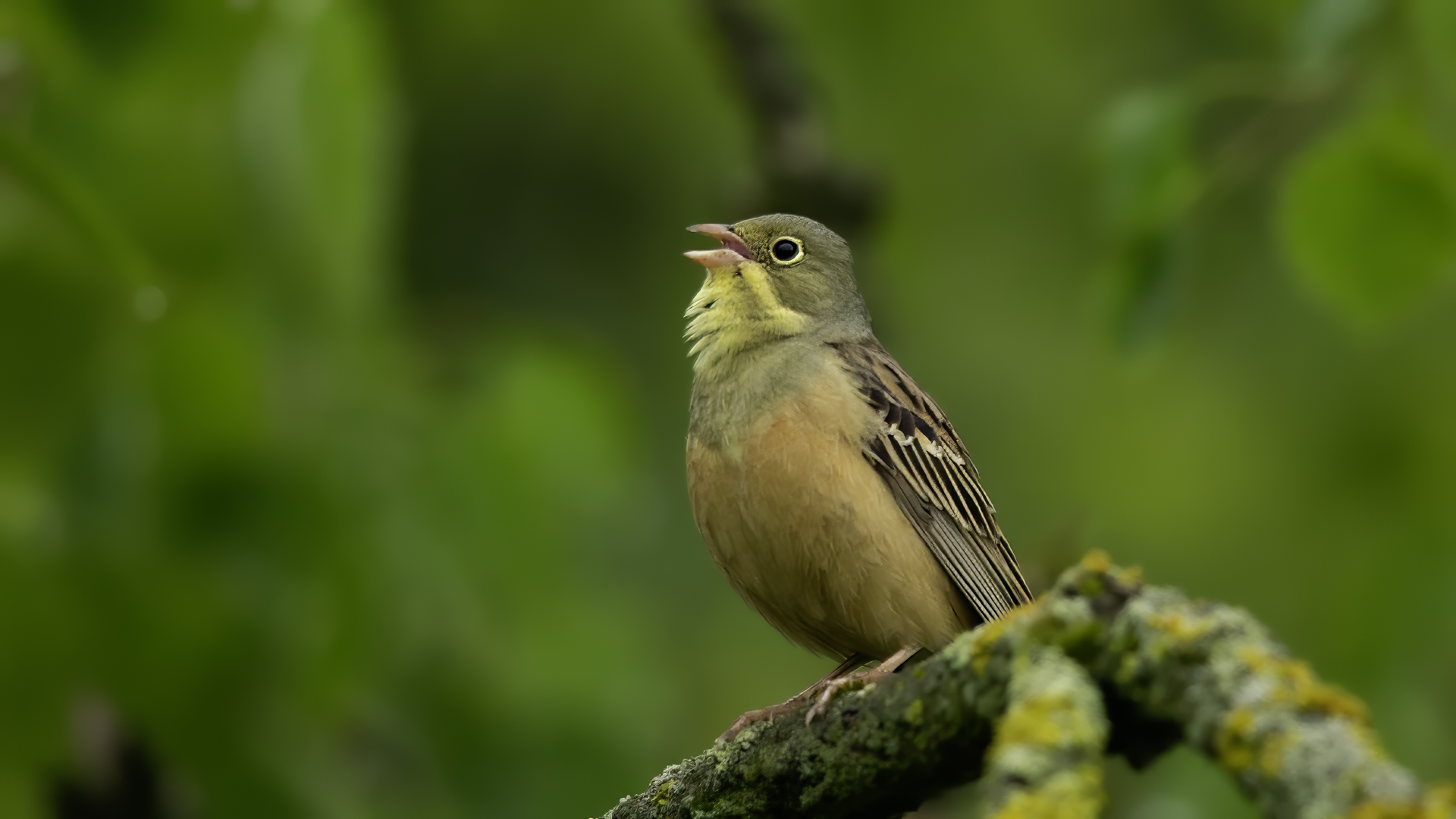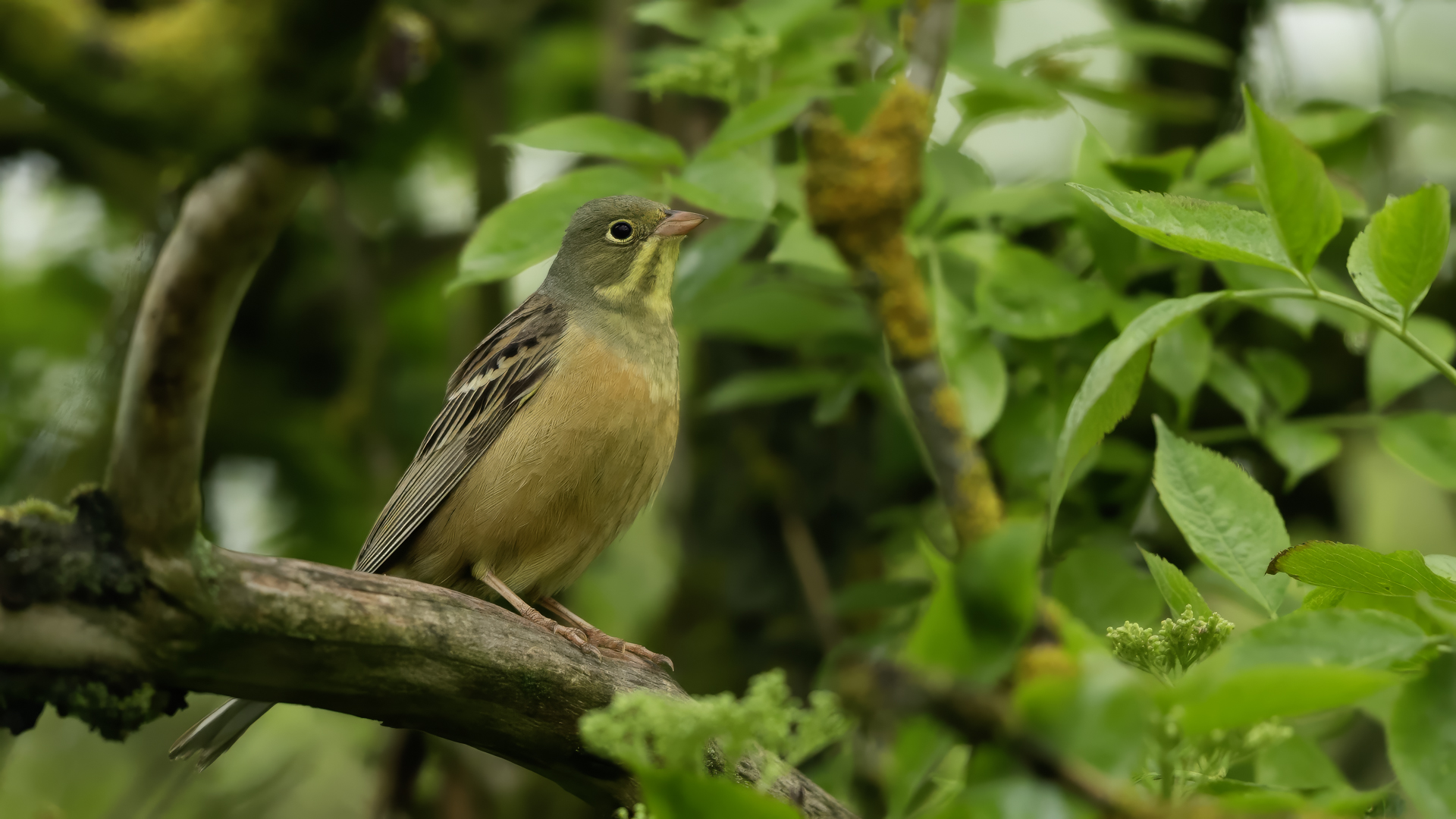 Z nagraniem dźwięku ortolana nie było problemu. Siedział na wysuszonej gałęzi starego dębu i z odległości kilkunastu metrów można było spokojnie nagrać dźwięk. Bezwzględnie lubi śpiewać. Prawie za każdym razem, jak przysiadł nie obyło się bez trelu. Ze zdjęciami już trochę gorzej. Trzeba było trochę cierpliwości i poczekać aż przyleci nieco niżej i będzie żerował na pobliskich przepięknych porośniętych mchem krzewach. Już po chwili można było się zorientować, że ma swoje ulubione gałązki, na których warto było skupić uwagę i wyczekać moment, aż usiądzie. Powstało wiele pięknych zdjęć i to pierwszym spotkaniu z ortolanem. Otolan wielkością przypomina trznadla, jest nieco mniejszy od wróbla. Rozpiętość skrzydeł to około 26 centymetrów, przy wadze ciała około 25 gramów. Przepiękny ptak, przepięknie śpiewa, cenna zdobycz dla mojej galerii- zobaczcie i posłuchajcie sami...