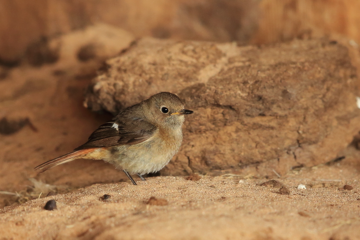 Gdzieś na Gobi znaleźliśmy zadaszenie dla wypasanych zwierząt. Obok po lewej i prawej stronie kamieniste murki, w których gniazda miały wróble skalne i białorzytka pustynna. Nieoczekiwanie pod tym zadaszeniem pojawiła sie pleszka, która podobnie jak my szukała schronienia od wiatru. W tym dniu był tak silny wiatr przez cały dzień, że fotografowanie było niemożliwe na otwartym terenie. Pleszka zaakceptowała nasze towarzystwo i pozwalała wykonać szereg zdjęć. Po wyłożeniu jej owadów zaufała nam do reszty i podchodziła na 5-7 metrów. Powstało wiele zdjęć w dość dziwnej kolorystyce spowodowanej fotografowaniem pod wiatą.