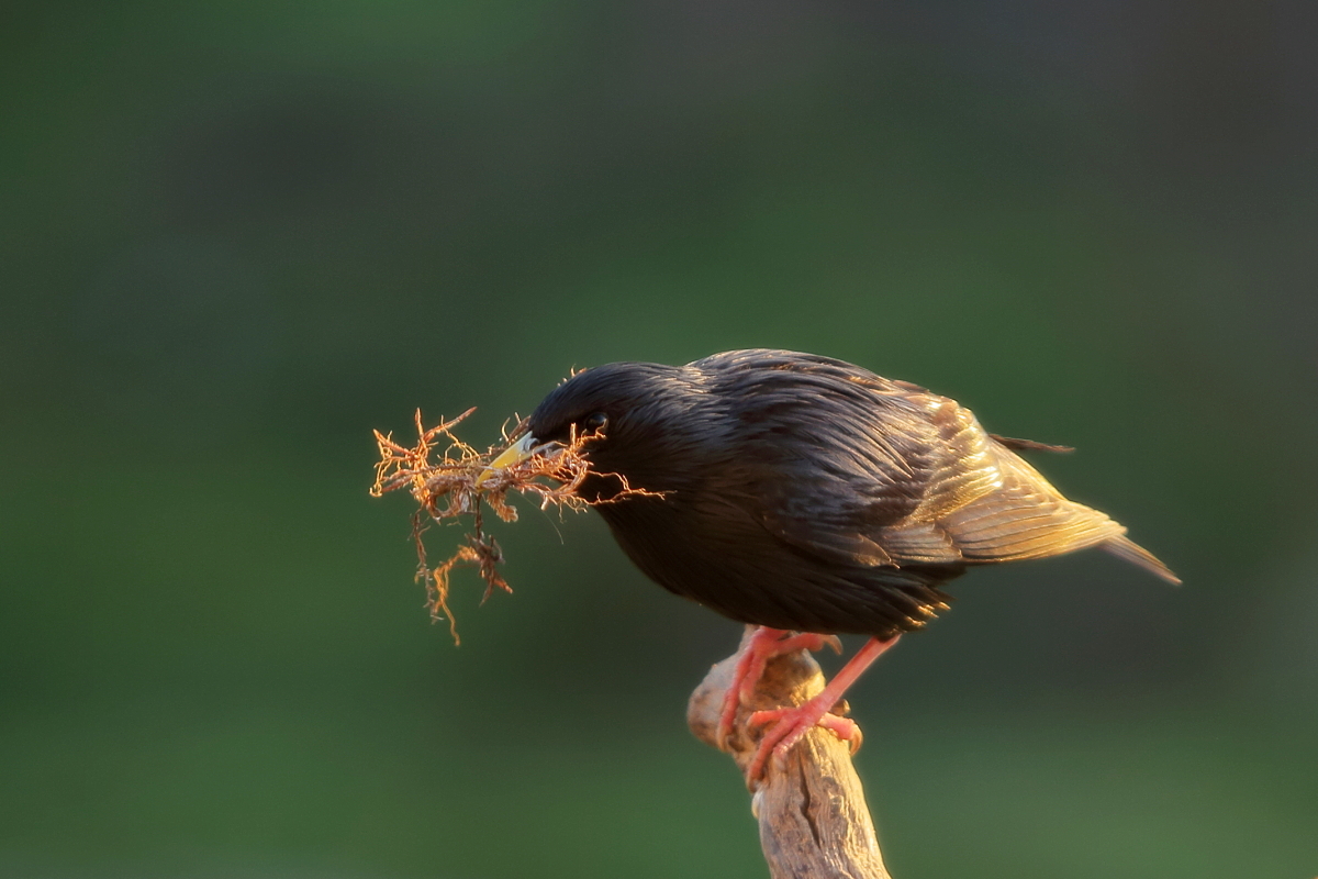 Wszystkie zdjęcia szpaka jednobarwnego wykonane były w Hiszpanii. W przerwie pomiędzy morderczymi zasiadkami w czatowniach drobiowych (całodniowe) dla odpoczynku proponowano nam „łatwiejsze” tematy. Takim łatwiejszym gatunkiem do fotografowania miały być pustułeczki i bociany.  Na wysokiej wieży, chyba jakiegoś dawnego spichlerza, swoje gniazda miały pustułeczki, bociany i prezentowane szpaki. Szpaków było kilkanaście par i funkcjonowały bezkolizyjnie z parą pustułeczek. Z uwagi na to, że miał to być dzień przeznaczony na odpoczynek, wstaliśmy nieco później. Tym samym łagodne poranne światło było już za nami. A szkoda, bo czarne połyskujące upierzenie szpaka jednobarwnego trudniej wyeksponować w takim oświetleniu, niemniej jednak powstało kilka prezentowanych zdjęć. Z daleka, patrząc na stadne zachowania i sylwetkę tych szpaków trudno, dostrzec różnice i jest się przekonanym, że to po prostu szpak.