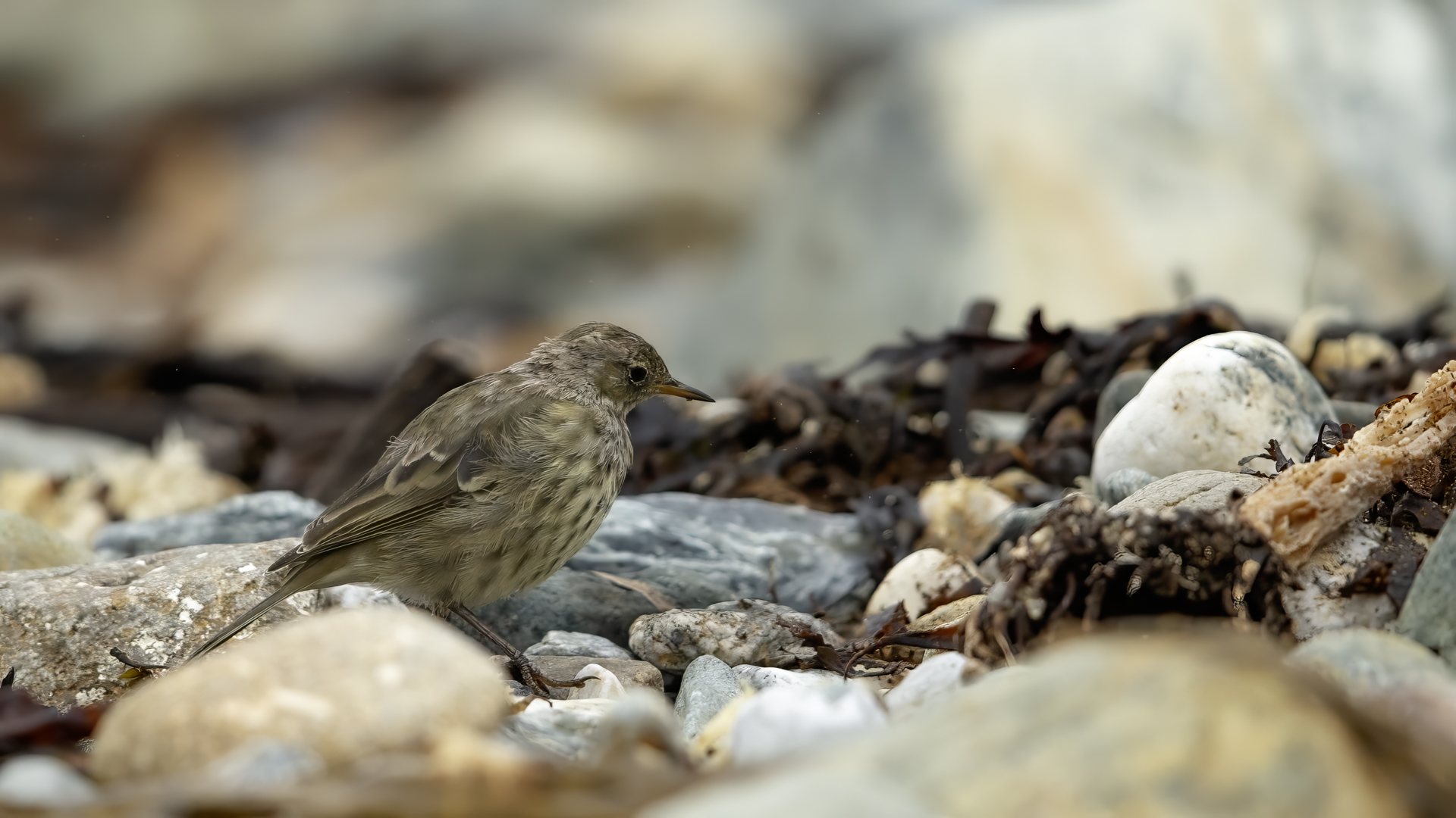 Wreszcie świergotek nadmorski trafia do mojej galerii. Będąc nad Bałtykiem wielokrotnie szukałem tego ptaka, niestety bezskutecznie. W Polsce to rzadko obserwowany ptak. Tymczasem w Anglii, na plaży niedaleko Panzance, można było je zaobserwować żerujące w małych stadach po kilka osobników. Nie były zbyt płochliwe i gdyby nie przechodzący turyści powstałoby jeszcze wiele ciekawych zdjęć. Siedząc spokojnie wśród skał nad morzem można było je fotografować. Jak zawsze cieszy fakt sfotografowania nowego gatunku, a zwłaszcza w takiej jakości i liczbie zdjęć. Świergotki nadmorskie osiągają masę ciała do 30 gramów, a rozpiętość ich skrzydeł wynosi do 28 centymetrów. Świergotek trafia do nowości.