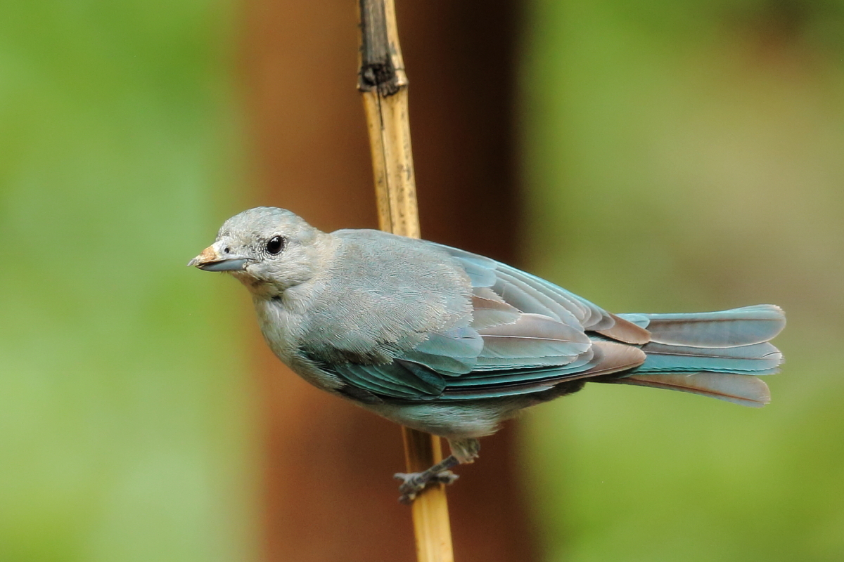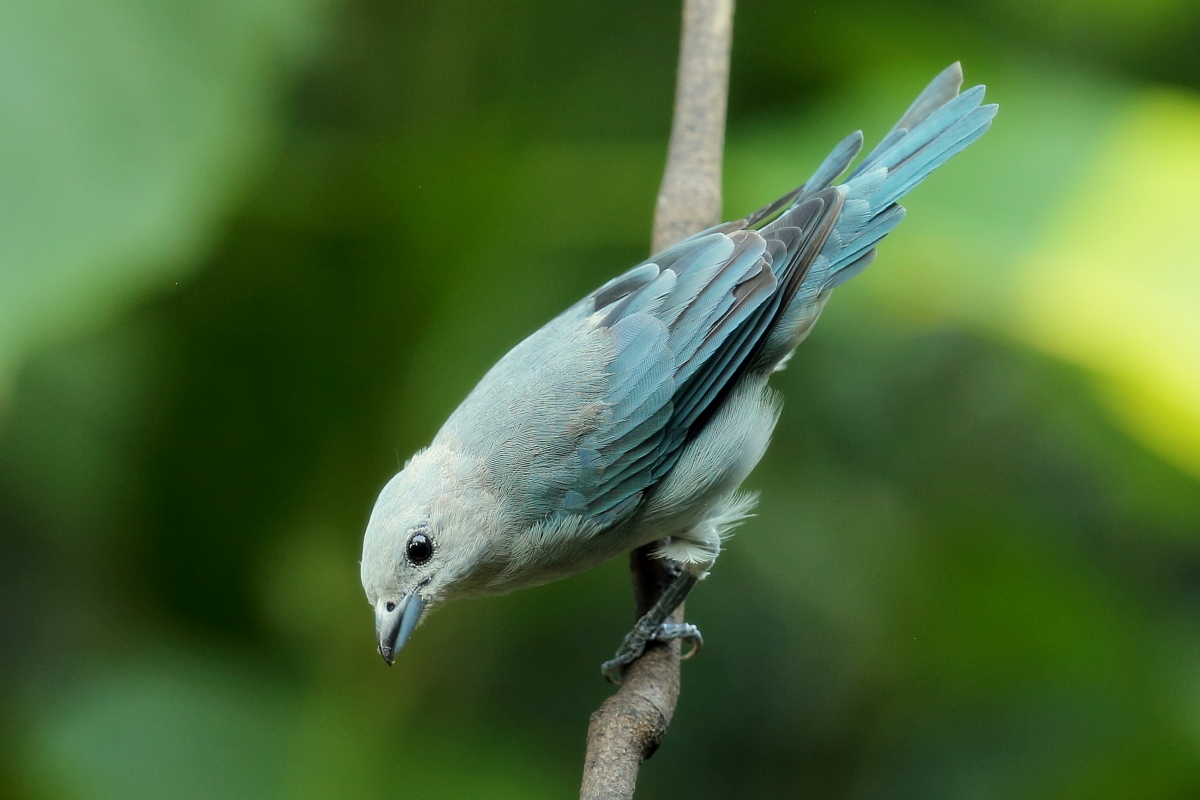Kilka razy udało się fotografować tego ptaka. Piękne błękitne upierzenie, zupełnie nie adekwatne do polskiej nazwy tego ptaka. Niemniej jednak powstało kilka zdjęć, także podczas pleneru z kolibrami i jak na moje dotychczasowe ptasie galerie, ten błękitny ptak, stanowi ciekawą odmianę. Tangarki ważą około 30 gramów.