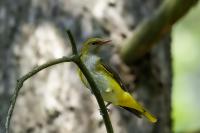 Jest to ptak do którego będę wracał, jeszcze pewnie wiele razy, o ile mi na to on pozwoli. Fotografuje się go bardzo trudno, bo jego ulubionym miejscem są korony drzew i bywa w naszym kraju od maja do września. Marzeniem jest sfotografowanie samca i samicy razem. Samiec żółto-czarny, samica oliwkowo-szara byłoby niesamowitym zestawieniem. Trel / śpiew samca wilgi to balsam dla uszu. Często słyszany w lesie, także w PRL-owskich filmach sceny nagrywane w lesie zawierają w tle śpiew wilgi, tylko większość o tym nie wie, że to właśnie ten ptak. Latem siedząc w lesie w czatowni jego głos umila wyczekiwanie nie nudząc i nie drażniąc w porównaniu z odgłosem brzęczki. W maju jest nieco łatwiej je fotografować, kiedy to samce rywalizując o samice skaczą z gałęzi na gałąź dają się podejść i sfotografować. Rozpiętość skrzydeł wilgi to niespełna 0,5 metra, przy wadze ciała około 75 gramów. Wilga należy do skrytych i trudnych do zaobserwowania ptaków. Jedynym ułatwieniem jest to, że samiec wyśpiewując swoją pieśń siedzi w koronie drzew dość nieruchomo. Słyszymy go i wolno się poruszając może uda nam się znaleźć wśród mocno obrośniętych świeżymi liśćmi drzew (maj/czerwiec) linię kontaktu wzrokowego w której zobaczymy pięknego samca. Uwaga długie ogniskowe mile widziane, a samo ujecie „oddolnego” fotografowania nie będzie apogeum radości i zadowolenia. Ale od czegoś trzeba zacząć…