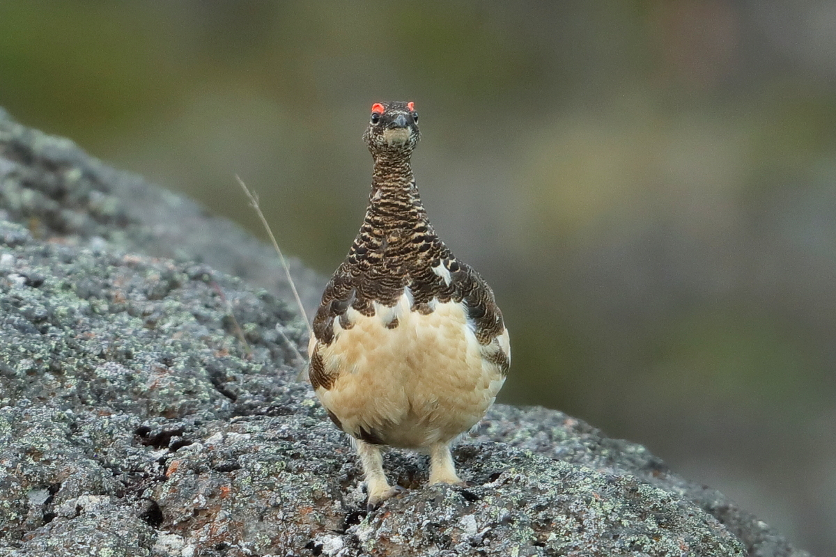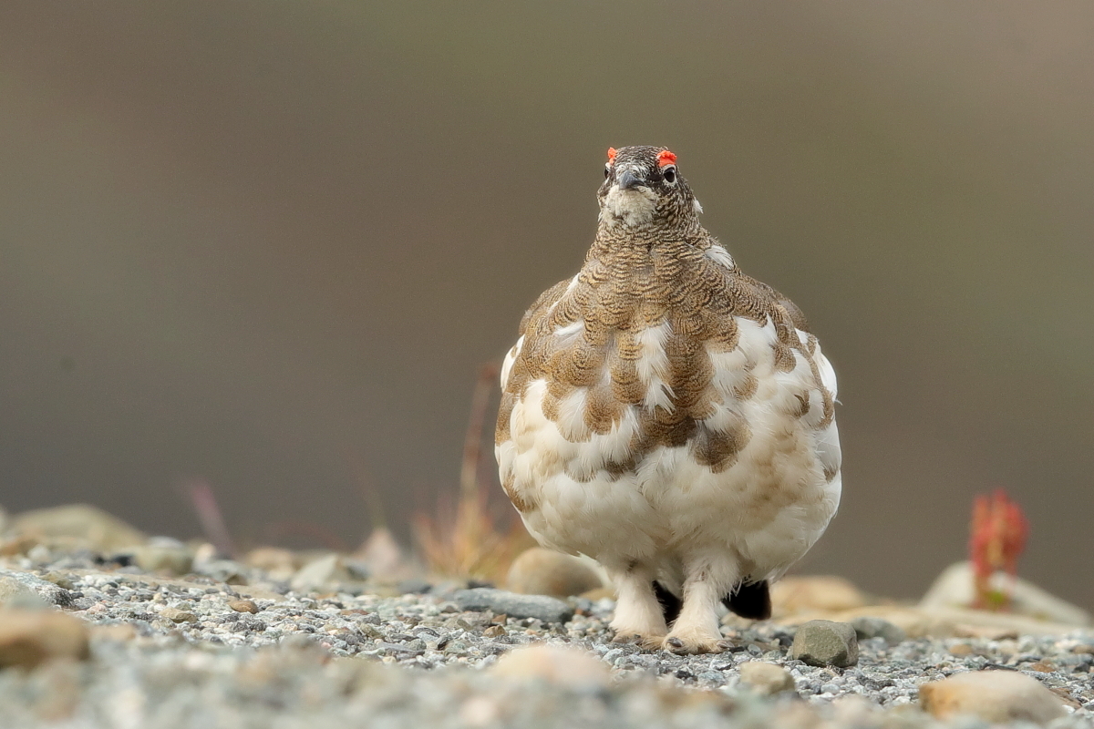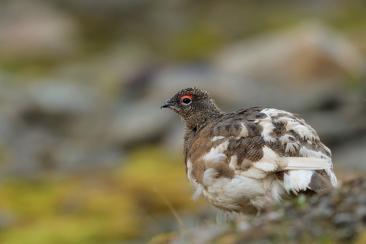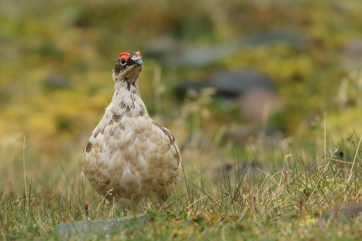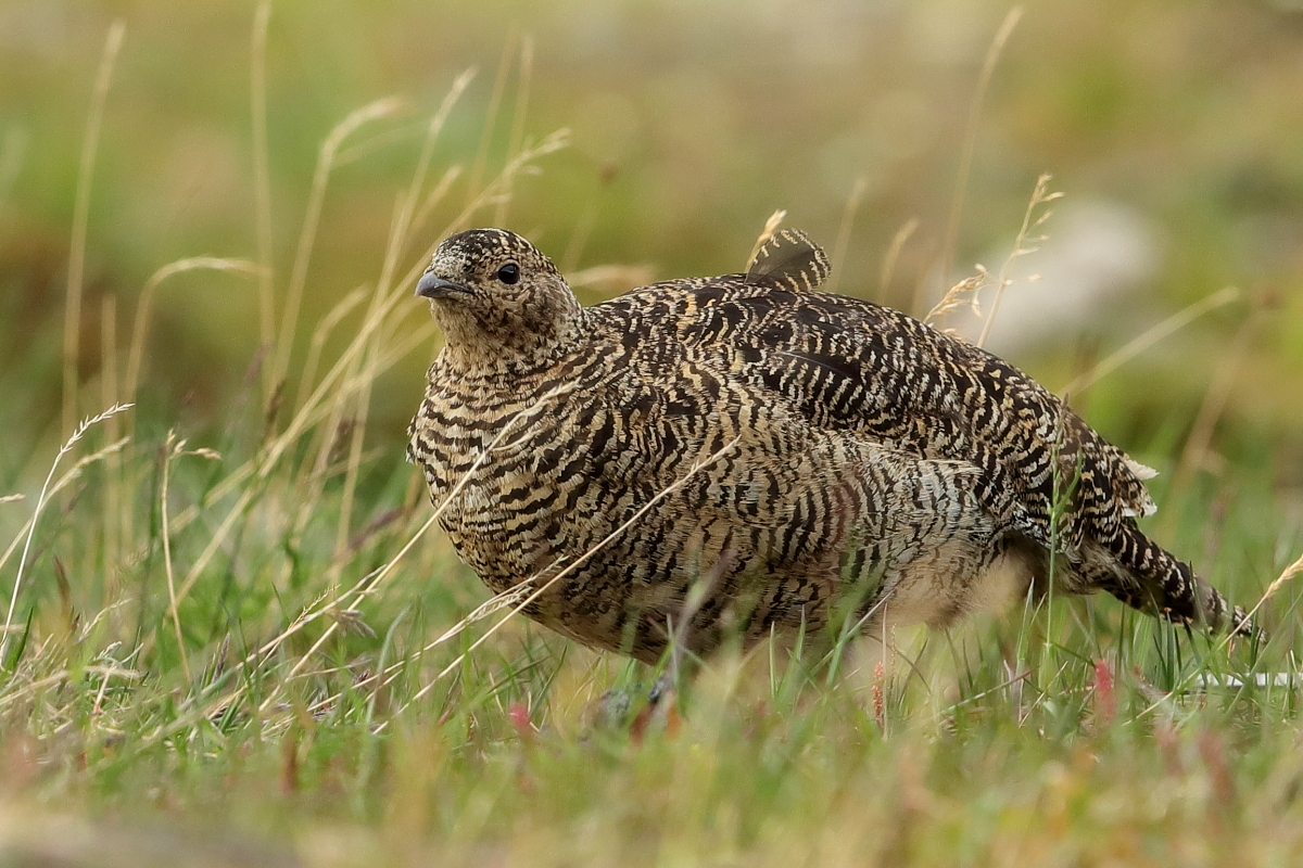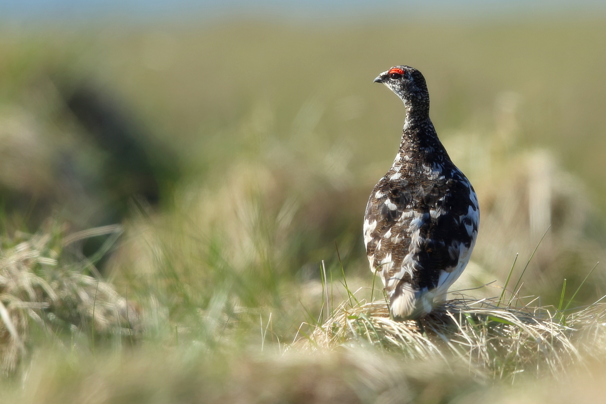 Na Islandii z pardwą górską miałem trzy spotkania. Pierwsze podobne do porannych spotkań z naszym bażantem w Polsce. Gdy przechodziłem wzdłuż ogrodzenia podmokłej łąki nagle samiec wyrósł jak spod ziemi odlatując w pospiechu. Myślałem początkowo, że ma w pobliżu gdzieś gniazdo, ale sprawdziłem dokładnie okolice i gniazda nie było. Z drugiego spotkania powstało kilka zdjęć. Samiec siedział na trawiastym podwyższeniu podmokłej łąki i był widoczny z daleka. Bardzo powoli, klucząc po łące zmniejszałem odległość do ptaka. Klucząc, bo łąka była tak podmokła i intensywnie nawożona przez krowy i owce, że trzeba było bardzo uważać w podejściu do ptaka i stąpać wyłącznie po podwyższonych kępach traw. Ale cierpliwość i determinacja popłaca. Po kilkudziesięciu minutach ptak siedział naprzeciwko mnie dokładnie tak jak chciałem w kadrze. Nie wydawał odgłosów, a jedynie bacznie się mi przyglądał. Tak powstały pierwsze zdjęcia mojej pardwy górskiej. O trzecim spotkaniu nie będę pisał bo i tak byłoby w to trudno uwierzyć, ale dziękuję Johanowi i Orn-owi z to niesamowite spotkanie. Powstało wiele pięknych zdjęć i co ważne też samicy pardwy górskiej. Pardwa należy do rodzin grzebiących, osiąga wagę do 450 gram, przy rozpiętości skrzydeł do 60 cm. Jej populację na Islandii (2014’) szacuje się na 60 do 230 tys. par.