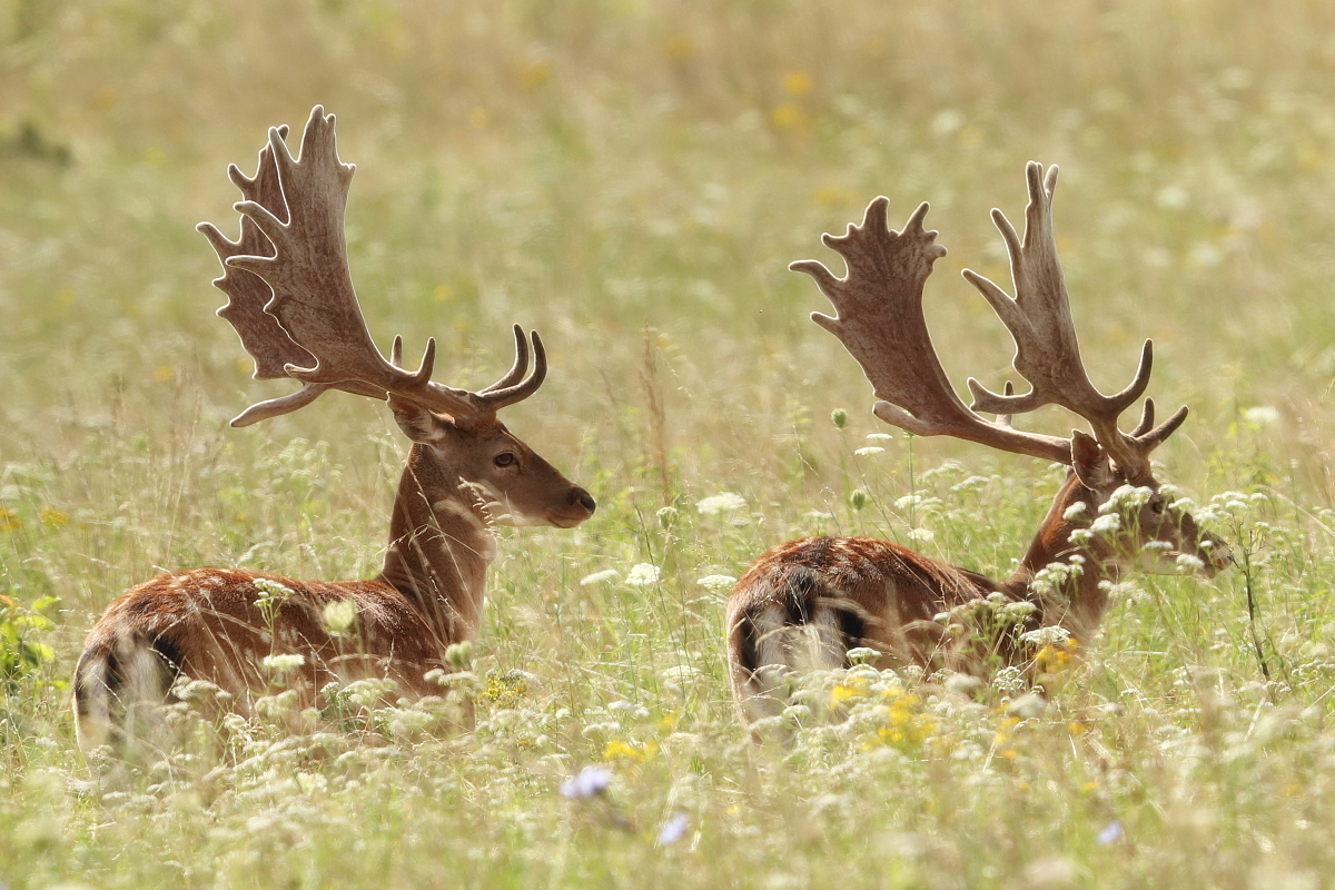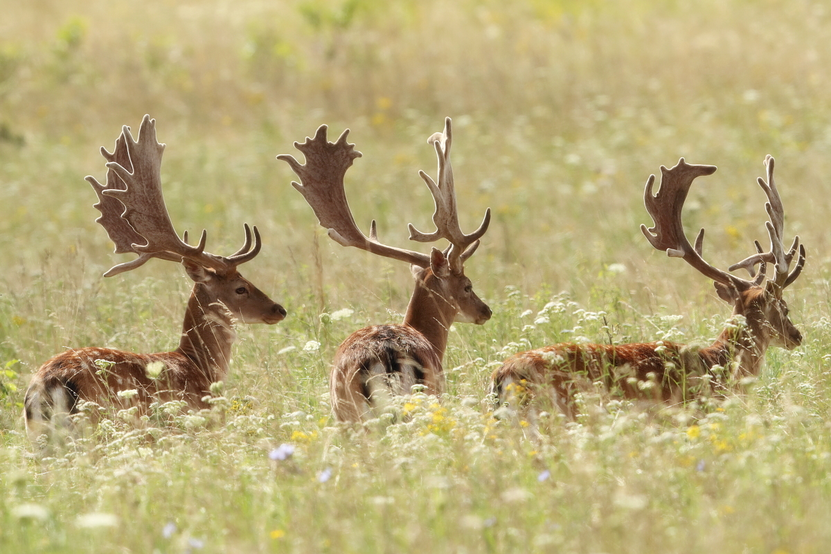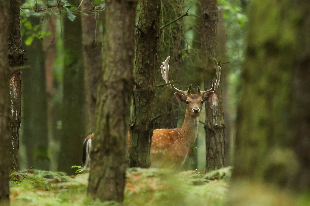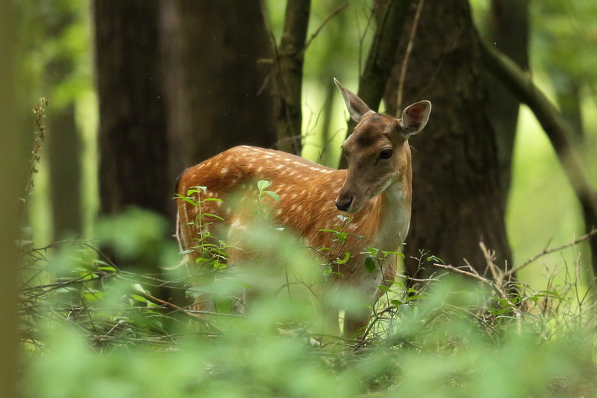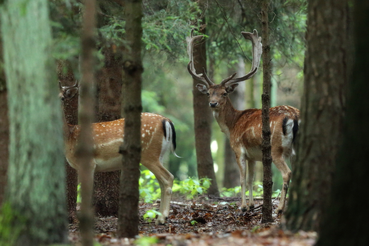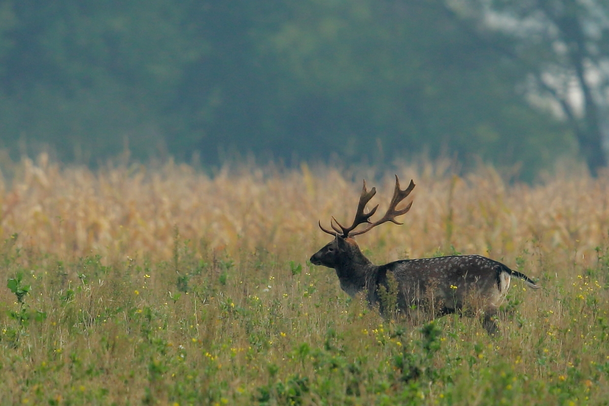 Wreszcie jakaś poprawa w galerii danieli na mojej stronie. Od kilku lat nie nadarzyła się okazja na wykonanie lepszych zdjęć danieli, aż do dzisiaj. Na obrzeżach Poznania daniele dało się co jakiś czas zaobserwować, a co ważniejsze sfotografować. Oczywiście nie ma tu żadnego przypadku w tych spotkaniach. Robert (pozdrawiam!) poznał zwyczaje danieli, zna miejsca, gdzie warto trochę na nie poczekać. No i proszę - powstało kilka zdjęć, jak dotąd najciekawszych w mojej galerii. Nie obyło się też bez zaskoczenia i zabawnej sytuacji. Około 10-tej słońce było już na tyle intensywne, że spakowaliśmy obiektywy i wyjeżdżamy z lasu. Na jego obrzeżach była łąka, otoczona z dwóch stron drogą, na której odbywał się normalny ruch samochodów, rowerzystów. Niespełna 100 metrów od nich z trawy wystawały poroża całej chmary danieli. Nie sposób było nie podejść do nich i nie wykonać kilku zdjęć pięknych okazałych samców danieli. Nie jest to jeszcze 5-cio gwiazdkowa galeria, ale zmiany są już na tyle znaczące, że nastąpiła przebudowa galerii.
