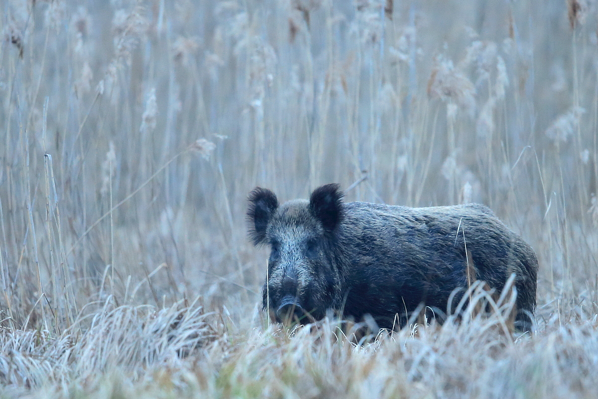 Z pierwszego fotografowania w nowej czatowni powstało kilka zdjęć..... dzika. Niestety dziki chyba zwęszyły nas i powstało jedynie kilka zdjęć, po czym zniknęły w trzcinowisku. Kilka zdjęć, ale chyba najciekawszych, jak dotąd tego ssaka na mojej stronie.