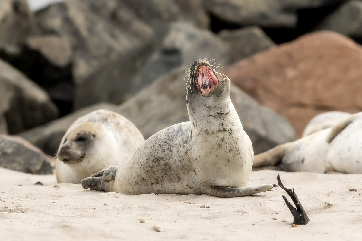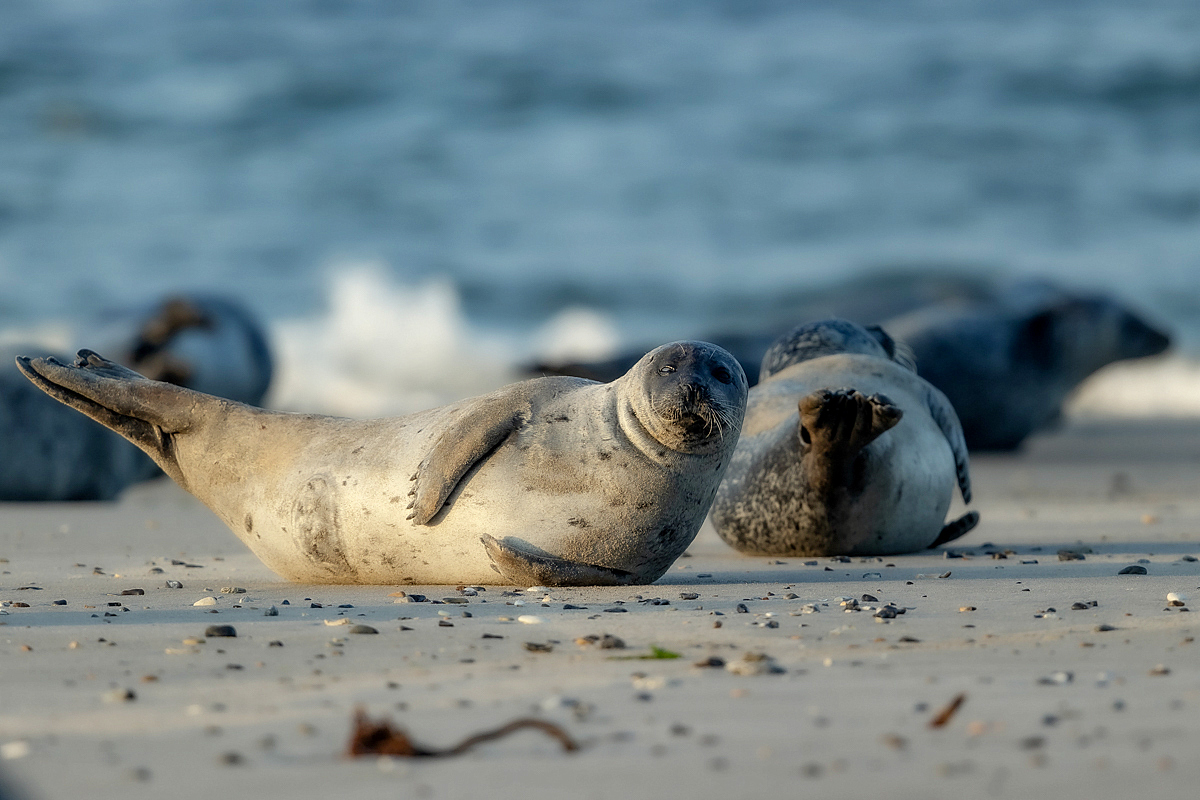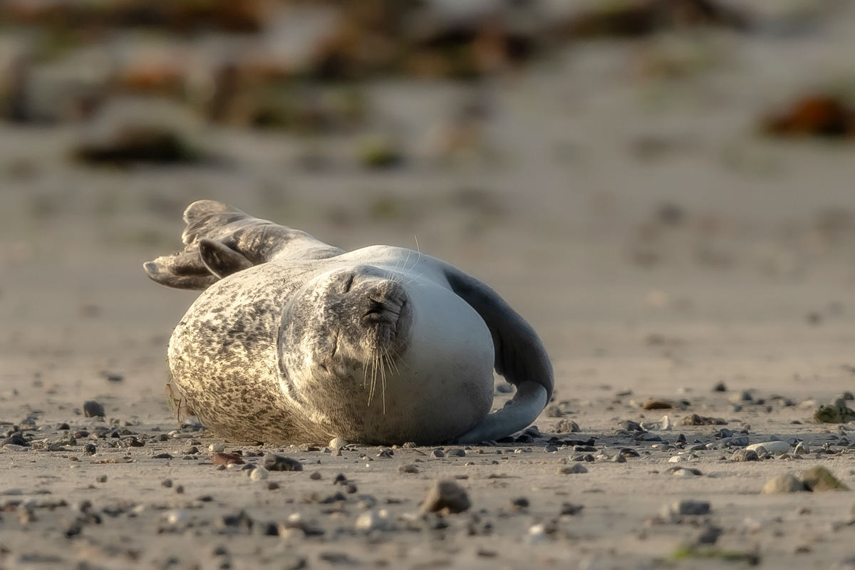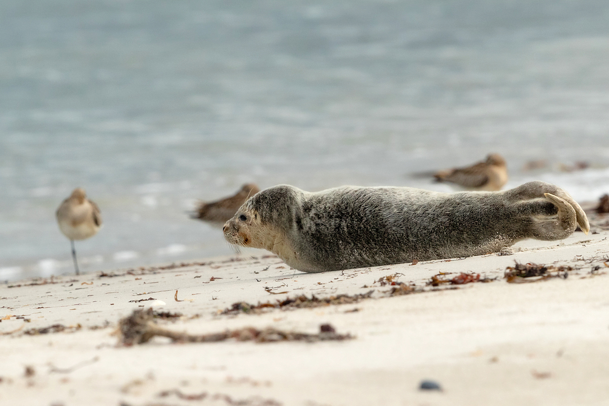 Z identyfikacją ptaków bywają jeszcze problemy, ale na przestrzeni lat poznałem wielu ekspertów w tym zakresie i wiadomo do kogo się zwrócić o pomoc w identyfikacji sfotografowanych ptaków. A co z ssakami i to dość specyficznymi jakim są foki. Wiele razy przyglądałem się wykonanym zdjęciom fok i widać było różnice pomiędzy poszczególnymi osobnikami. Pytanie, czy młode osobniki różnią się od dorosłych, czy to może inny gatunek foki, bo ostatecznie na Helgolandzie mogą być ich trzy gatunki. W Polsce chyba najlepiej zwrócić się do Instytutu Oceanografii Uniwersytetu Gdańskiego. Tak też zrobiłem i spotkałem się z bardzo życzliwym odbiorem i zaangażowaniem, w pomocy w oznaczonych przeze mnie fok jako fok szarych. Okazało się, że pośród fok szarych na plaży wylegiwały się też foki pospolite. Tak, więc opasła galeria foki szarej została umniejszona o zdjęcia fok pospolitych, które trafiły do właściwej galerii. Uwaga na niektórych zdjęciach są dwa gatunki fok -pospolita i szara. Wielkie podziękowania dla Pracowników Instytutu Oceanografii Uniwersytetu Gdańskiego, a podziękowania składam na ręce Pana Wojciecha z którym miałem przyjemność się kontaktować i który sprawnie i bezinteresownie mi pomógł- DZIĘKUJĘ, POZDRAWIAM!
