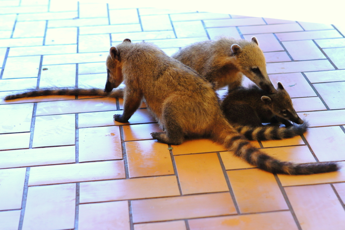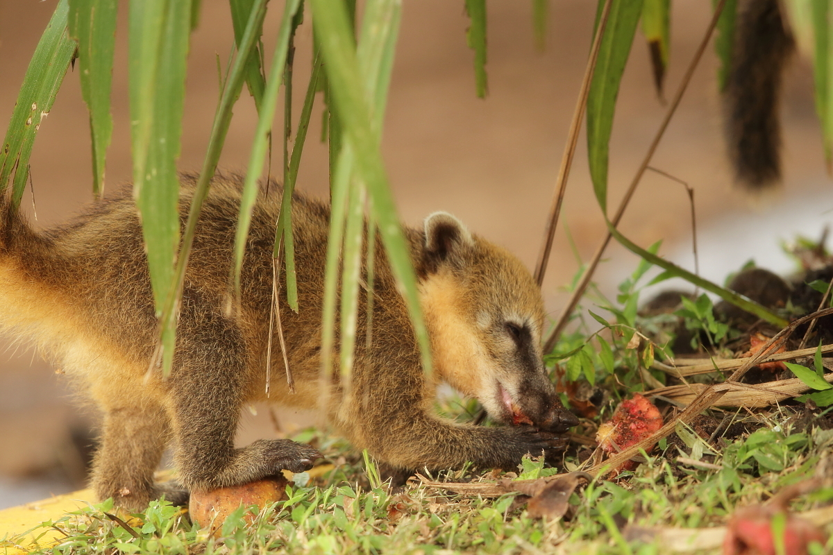 Ostronosy rude były powszechne w okolicach Iguazu. Chyba zbyt powszechne, bo wręcz niebezpieczne dla turystów. Bezceremonialnie podchodziły do zwiedzających, a co bardziej lekkomyślny turysta, mający jedzenie w ręce lub w cienkich foliowych torbach, był agresywnie zaatakowany i pozbawiony prowiantu. W ponad 30 stopniowym upale trudno było się było nawet napić  bez zaczepki z ich strony. Jeden uczestników naszej wycieczki (Paweł pozdrawiam) usiadł w pobliskiej restauracji otworzył puszkę z napojem, którą ze stołu skonfiskowały mu ostronosy. Zrobiły to szybko, zdecydowanie i agresywnie. Nie jest to miłe uczucie, bo ostronosy to nie filigranowe stworzenia, zwłaszcza ich zęby. Długość ich ciała z ogonem wynosi 1,4 metra, a waga dorosłych osobników może dochodzić do 7 kilogramów. Na dodatek tego grasowały w małych stadach, odnosząc  zawsze sukcesy w swych napadach na torby i napoje turystów. Są inteligentne i sprytne. Otwarcie kosza z resztkami jedzenia to dla nich żaden problem. Występują Ameryce Południowej od północy po północną Argentynę, prócz terenów górskich na zachodzie kontynentu. Były na tyle agresywne i niesympatyczne w swoim zachowaniu, że nie wykonałem im wielu zdjęć...