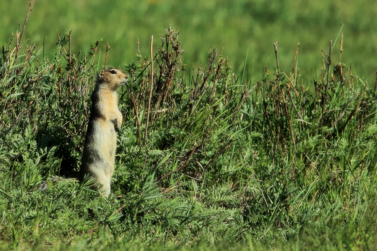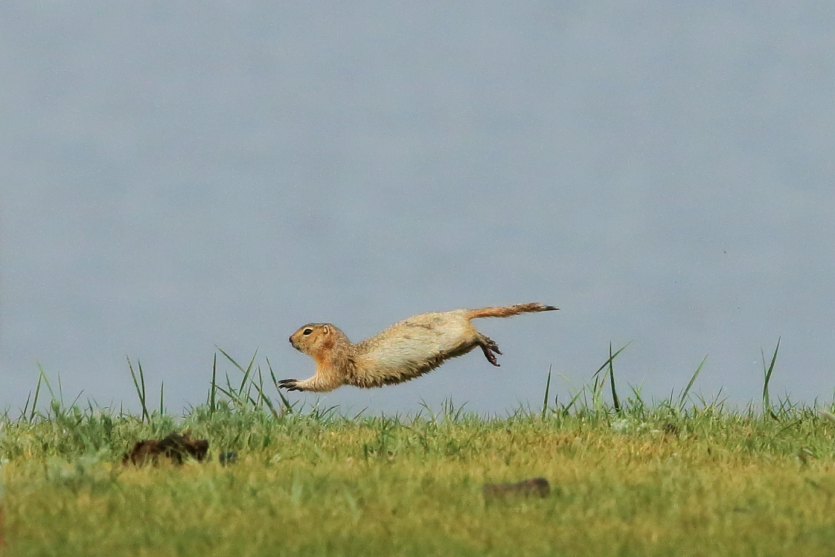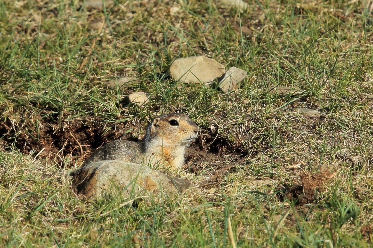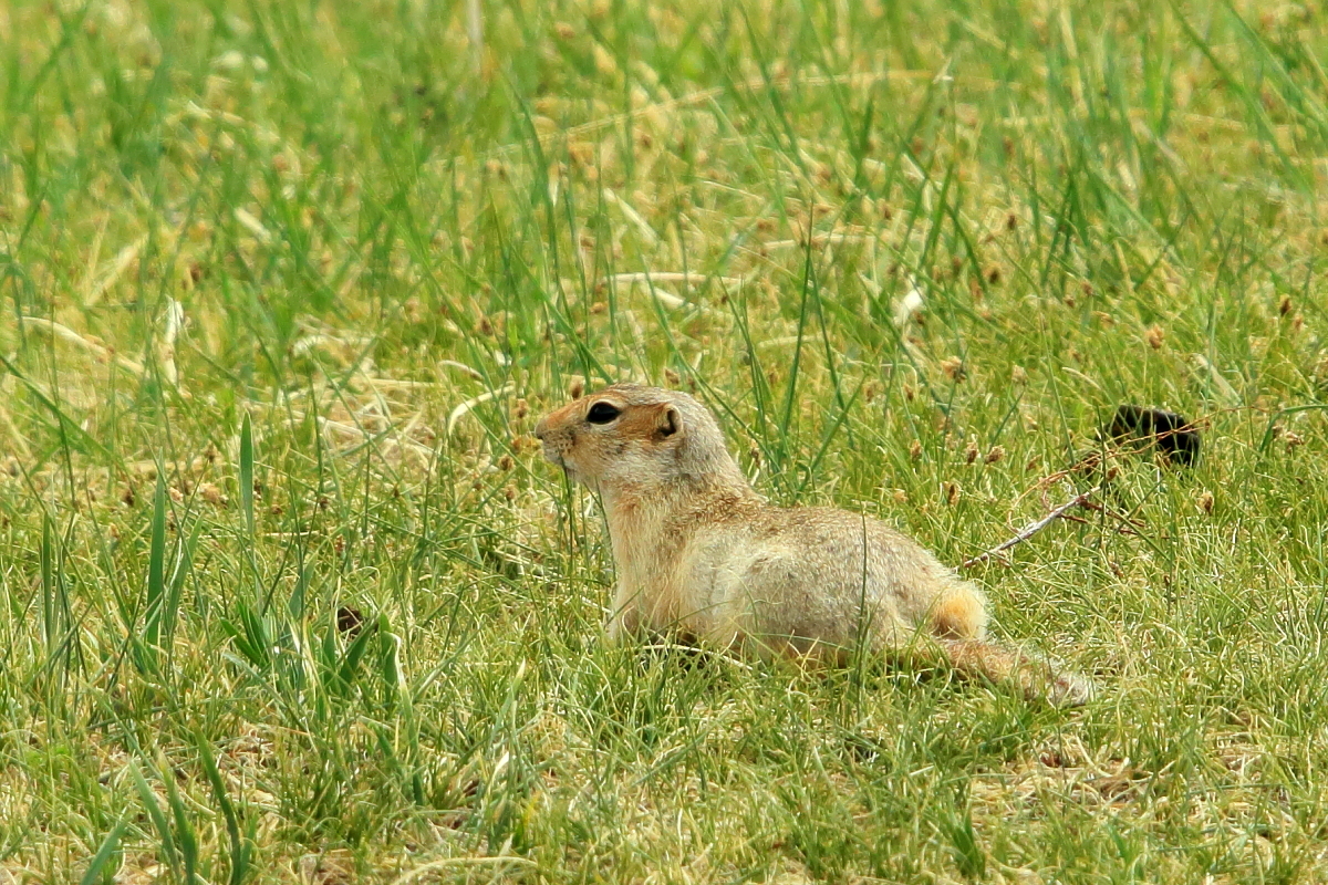 Susły występowały w wielu miejscach. Siedząc spokojnie niedaleko ich nor obserwowałem jak co jakiś czas suseł powoli wysuwał głowę i sprawdzał, czy można bezpiecznie opuścić norę. Kilka takich prób fotografowania dało materiał na powstanie galerii. Podczas próby fotografowania susłów przez moich współtowarzyszy wyprawy powstało nagranie głosu ostrzegającego inne susły, że w kolonii susłowej znajduje się dwóch podejrzanych, fotografujących intruzów…
