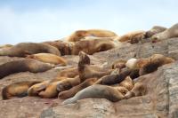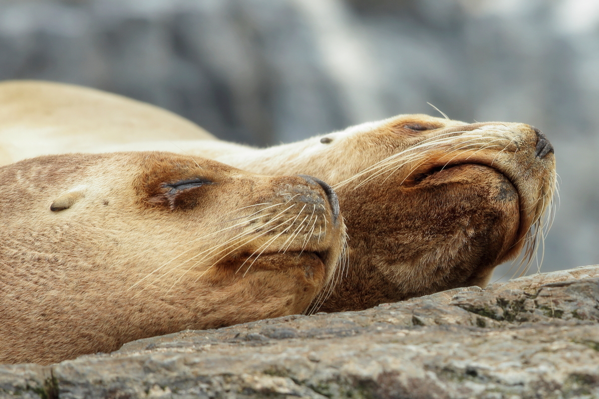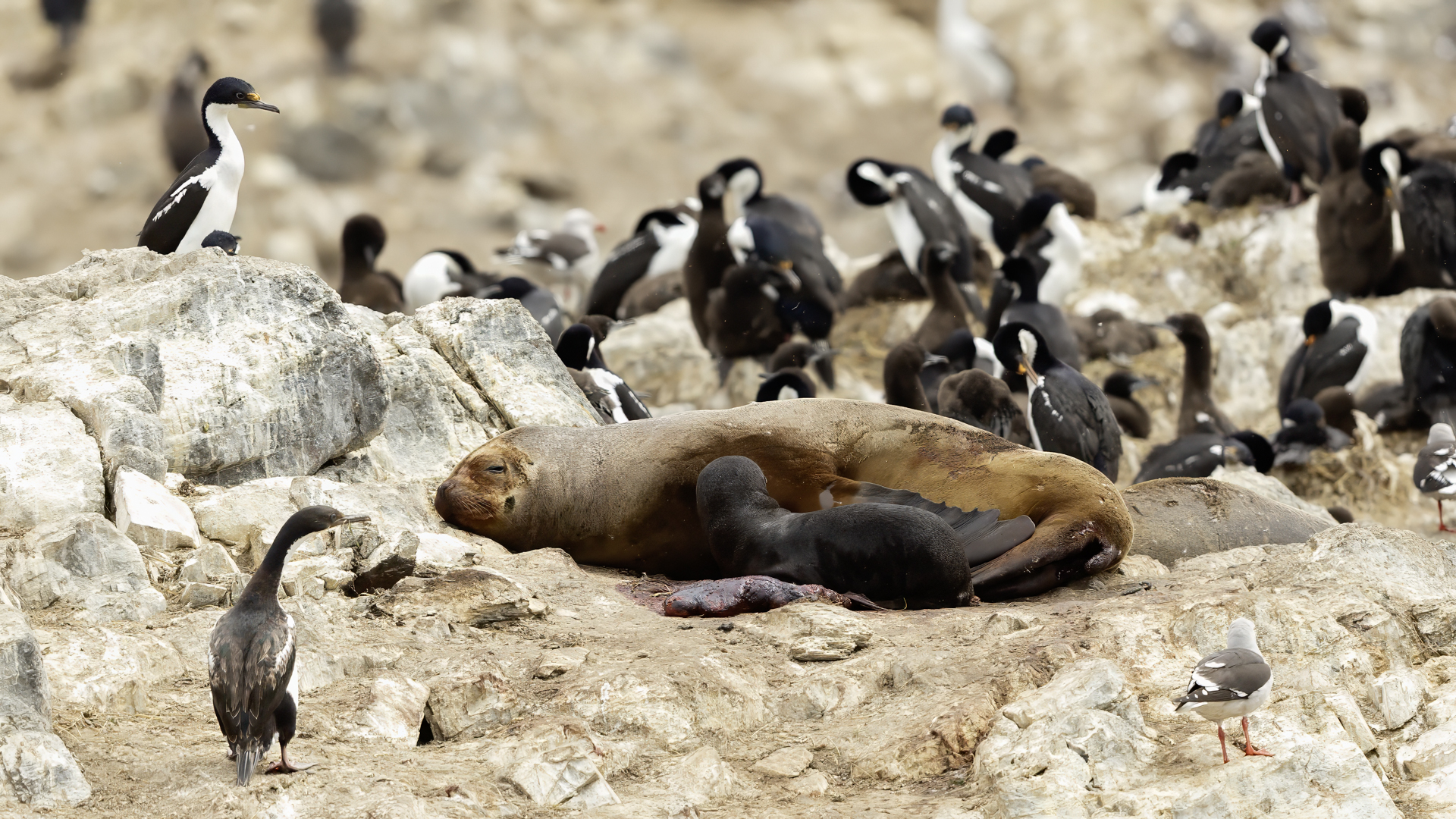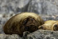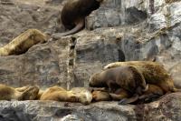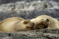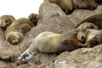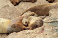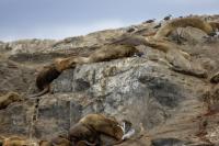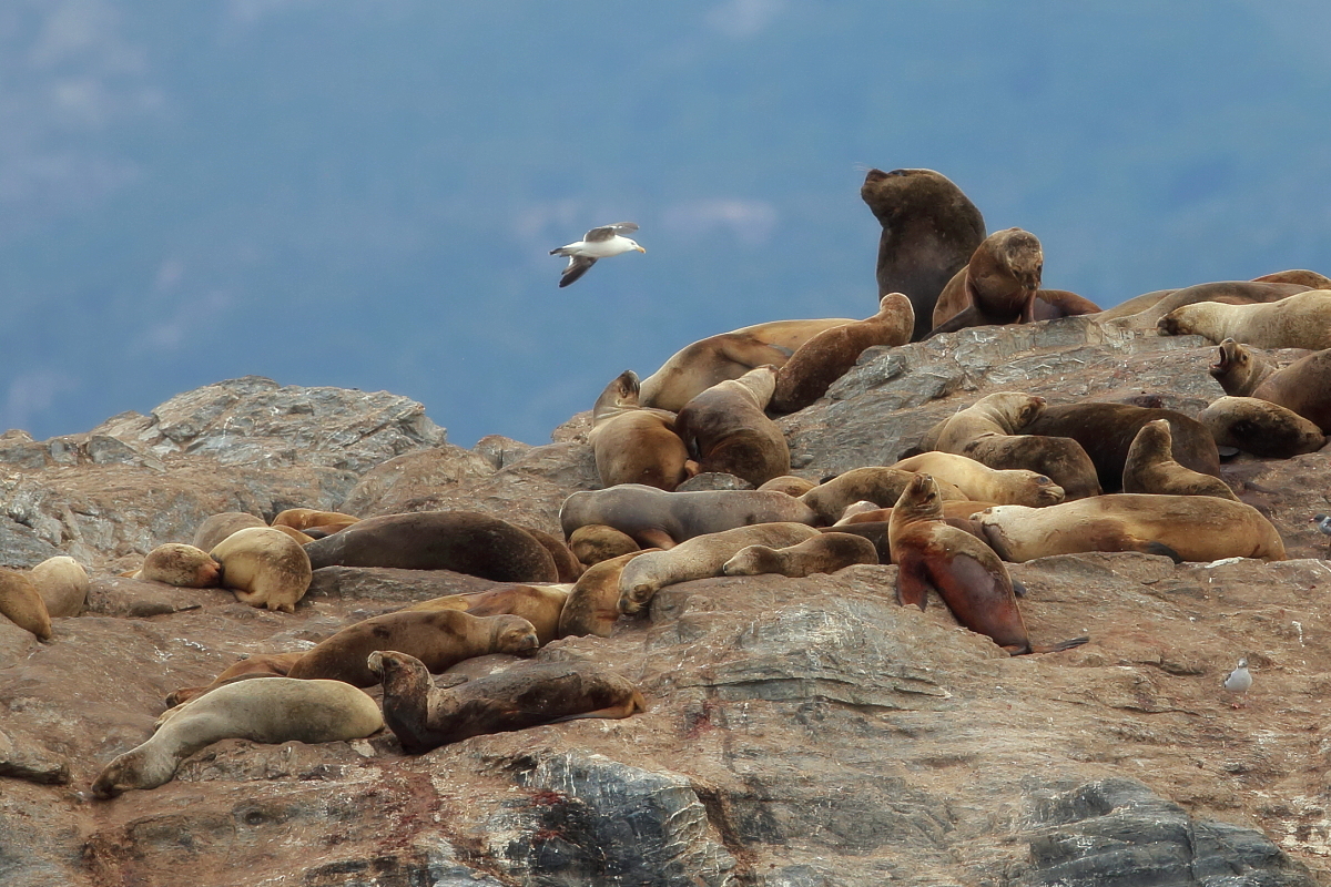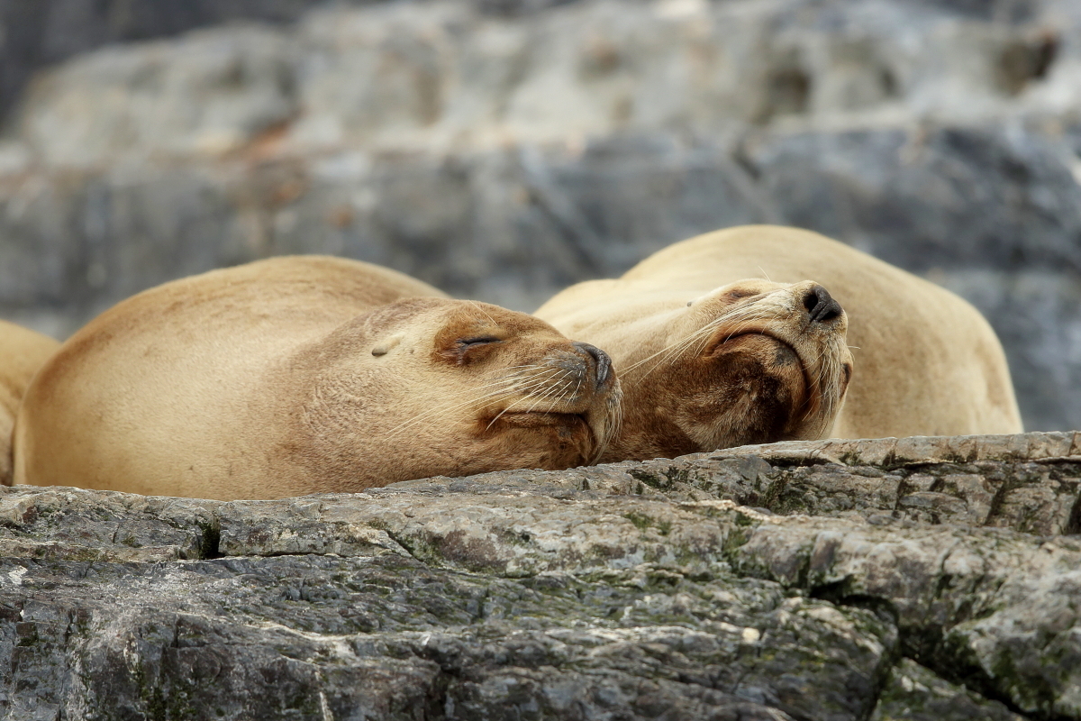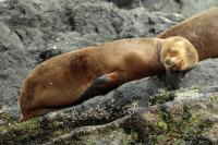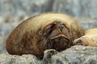 Uchatki patagońskie fotografowałem podczas krótkiego rejsu wokół wysp leżących niedaleko Ushuaia. Chyba się trochę spóźniliśmy by być światkiem narodzin młodej uchatki. W każdym bądź razie "resztki" poporodowe były przedmiotem zainteresowania mewy magellańskiej i mewy południowej, które ostrożnie podchodziły do uchatki i jej dopiero co narodzonej pociechy. Samiec jest znacznie większy od samic i wyróżniał spośród dziesiątek uchatek wygrzewających się na skałach. Waga samców może osiągnąć 350 kilogramów i długości ciała 2,7 metra. Samice są znacznie mniejsze, bo osiągają wagę do 150 kilogramów i długości ciała do 2 metrów. Występują wzdłuż wybrzeży Argentyny, Urugwaju, południowej Brazylii, Chile, Peru i Ekwadoru.