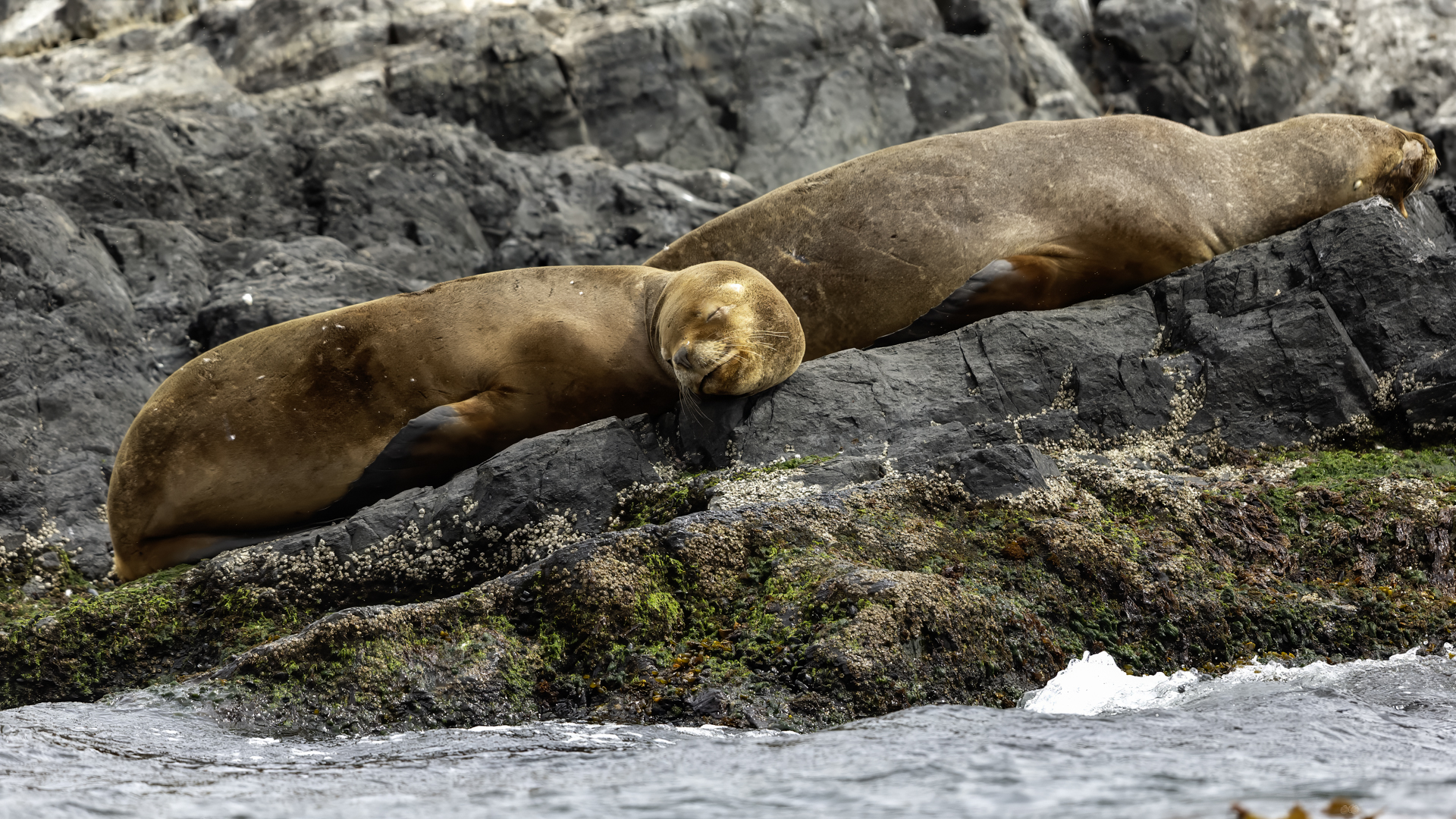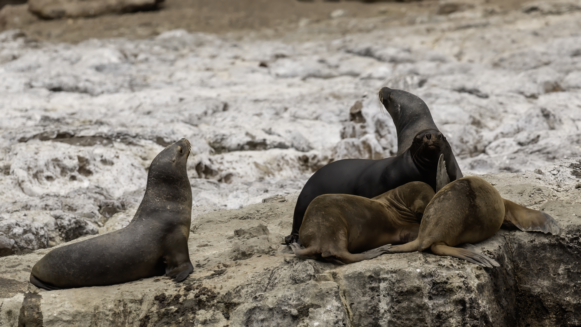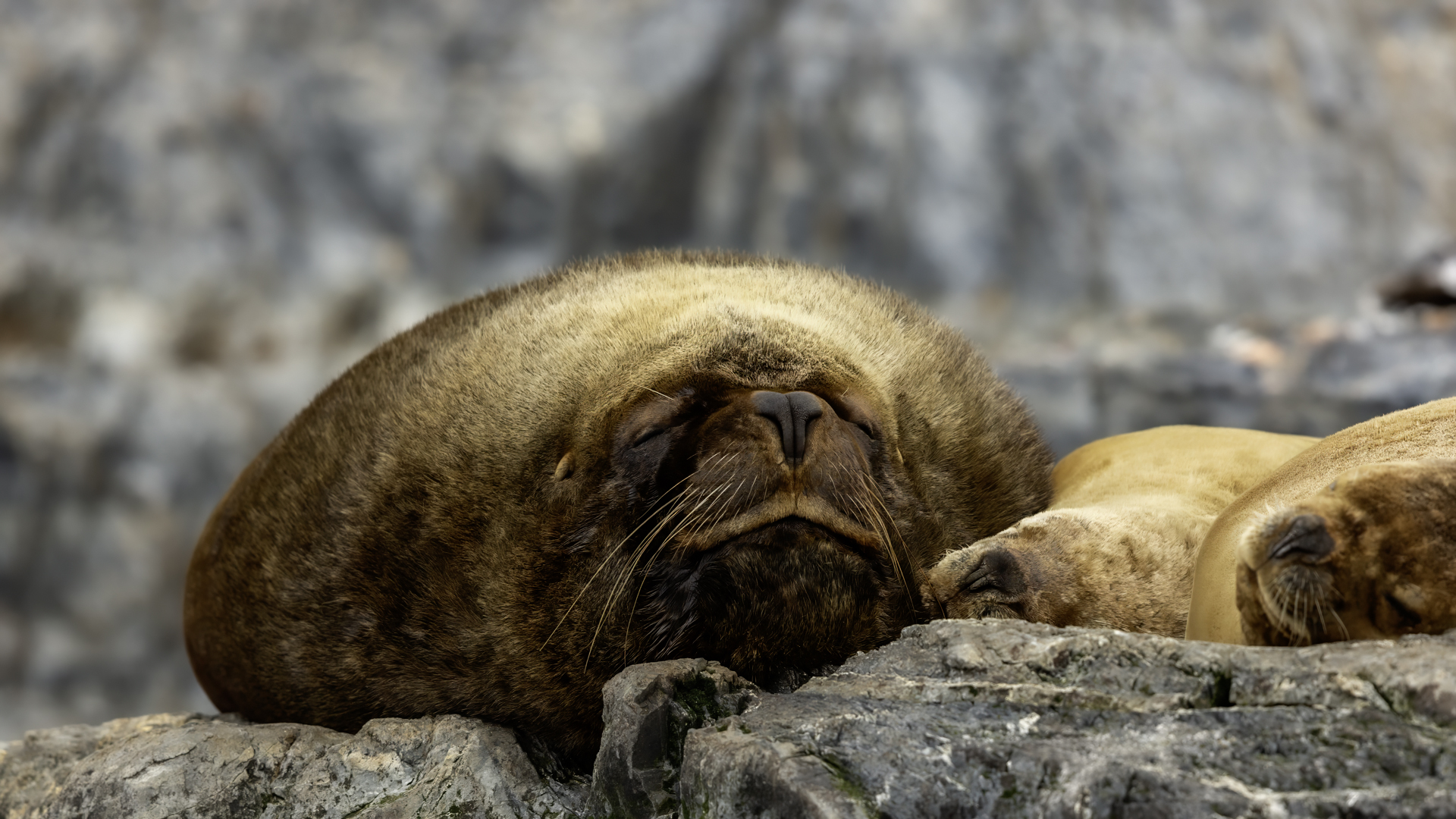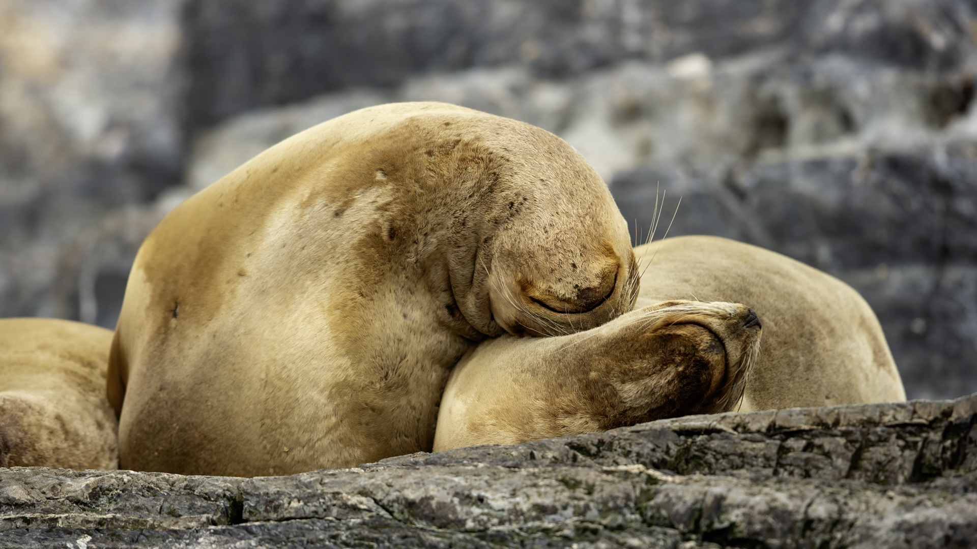 Uchatki patagońskie fotografowałem podczas krótkiego rejsu wokół wysp leżących niedaleko Ushuaia. Chyba się trochę spóźniliśmy by być światkiem narodzin młodej uchatki. W każdym bądź razie "resztki" poporodowe były przedmiotem zainteresowania mewy magellańskiej i mewy południowej, które ostrożnie podchodziły do uchatki i jej dopiero co narodzonej pociechy. Samiec jest znacznie większy od samic i wyróżniał spośród dziesiątek uchatek wygrzewających się na skałach. Waga samców może osiągnąć 350 kilogramów i długości ciała 2,7 metra. Samice są znacznie mniejsze, bo osiągają wagę do 150 kilogramów i długości ciała do 2 metrów. Występują wzdłuż wybrzeży Argentyny, Urugwaju, południowej Brazylii, Chile, Peru i Ekwadoru.