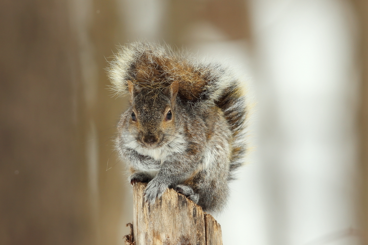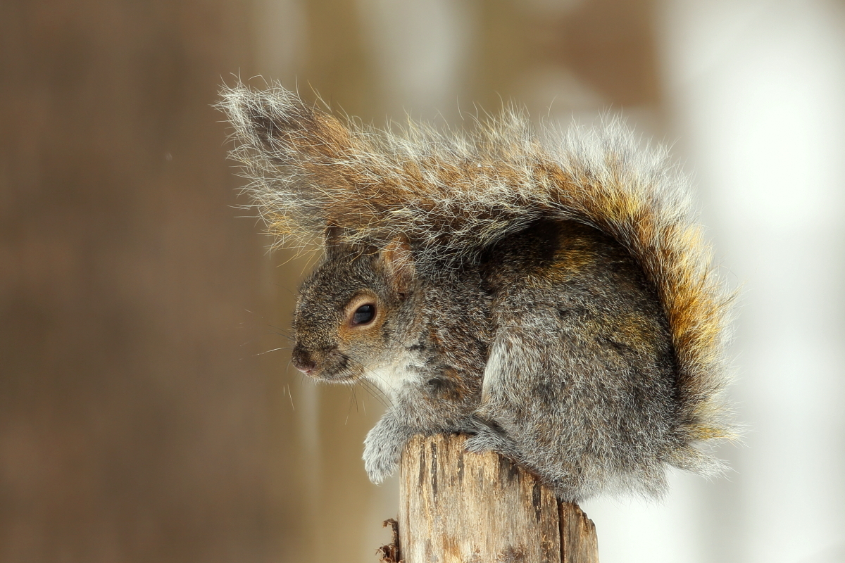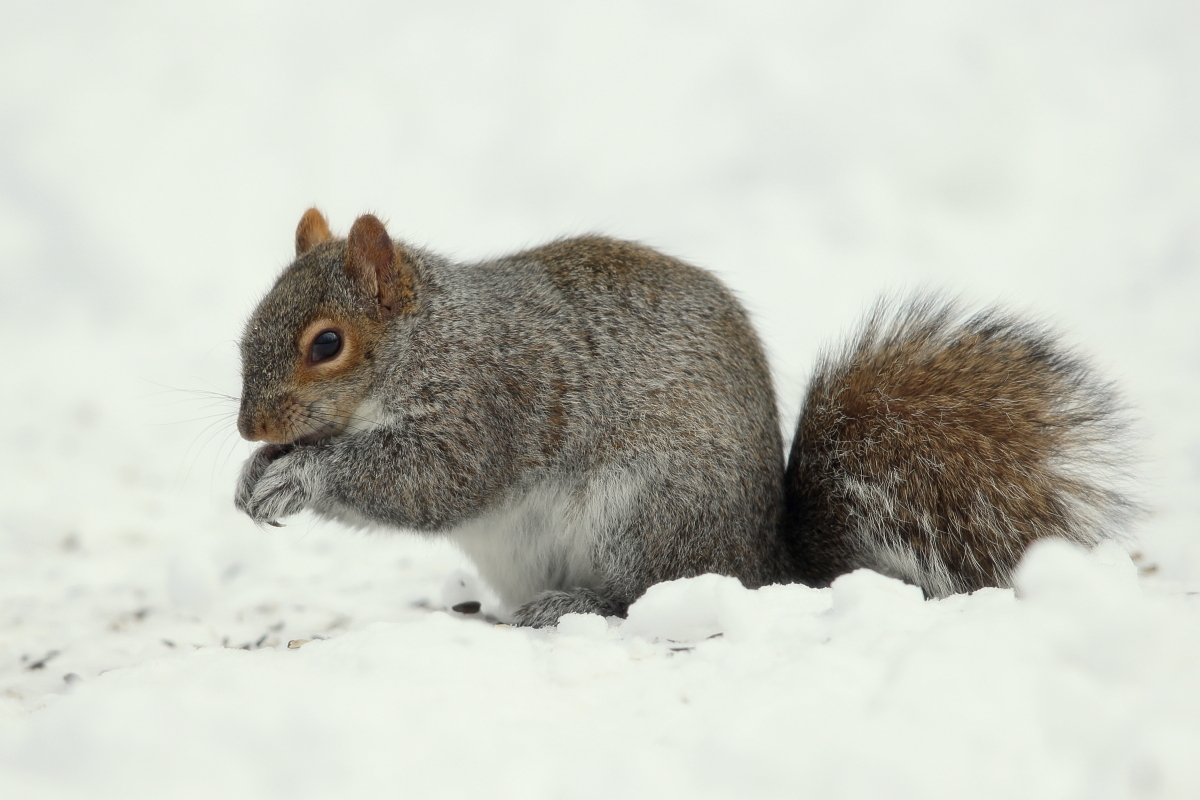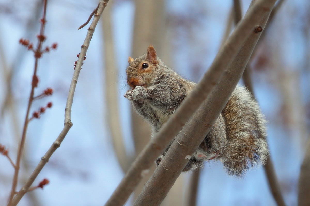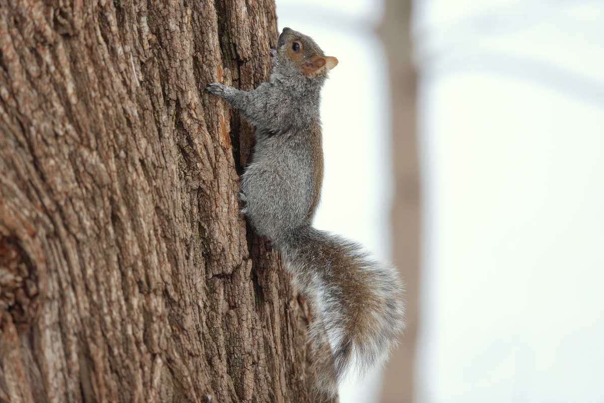 Prezentowane wiewiórki wykonałem w okolicach Montrealu, Ottawy w Kanadzie. Zimą były na tyle wygłodniałe, że bez problemów dały się fotografować w parkach miejskich. Komentarz do wiewiórki szarej i czerwonej jest ten sam z racji traktowania tych zdjęć jako ciekawostki niż galerii, o rozwój których będę zabiegał. Wiewiórki szare są większe od wiewiórek czerwonych. Waga wiewiórek szarych może przekroczyć 600 gramów, podczas gdy wiewiórek czerwonych to około 100-300 gramów. Nie były tak jednak oswojone jak wiewiórki w warszawskich parkach, gdzie jedna z nich nie dostając łakoci ode mnie podczas fotografowania ptactwa wodnego „przypięła” się do mojej nogi. Wprawdzie lubię kontakty z przyrodą, ten jednak był za bliski. Do fotografowania tych wiewiórek lepszym zestawem okazują się lekkie, krótsze obiektywy, na kanadyjskie dłuższe.