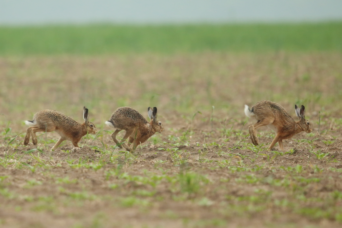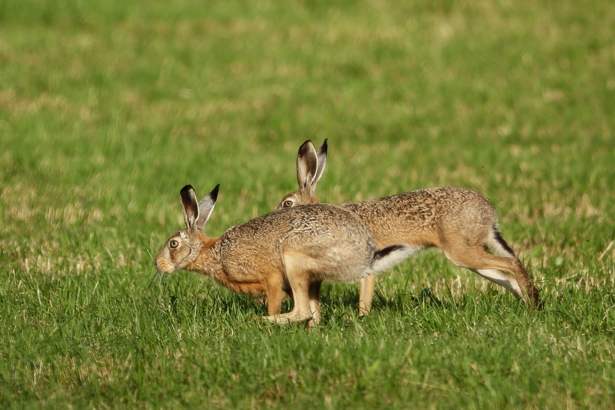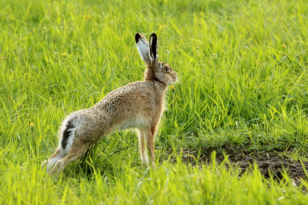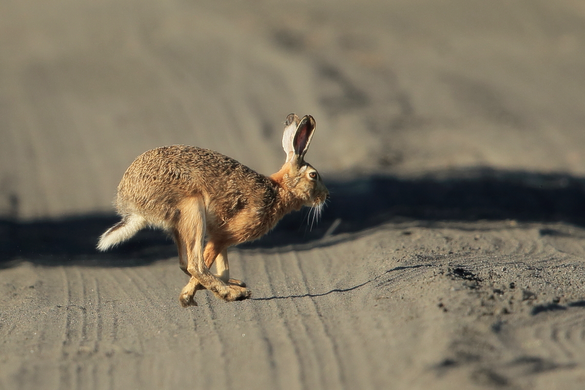Zając szarak nie należy do zwierząt o wymyślnych strategiach obronnych. Widząc zagrożenie zamiera w bezruchu, licząc, że będzie niezauważony. Dopiero, gdy dojdzie do wniosku, że odległość jest zbyt mała, rusza z impetem do ucieczki. I tu przychodzą mi do głowy dwie historie. Pierwsza, gdy ostrożnie podchodziłem zza krzaków na dogodne miejsce do fotografowania żurawi. Dopiero z 2 metrów ruszył zaskakując i wprawiając mnie w osłupienie. Tu rzeczywiście na skraju pola jego kamuflaż i strategia działania były słuszne. Natomiast druga historia wycisnęła mi łzy ze śmiechu. Przechodzę i patrzę, że na soczysto zielonej łące pośrodku siedzi zając szarak, który zamarł w bezruchu. Bardzo powoli zbliżałem się do niego robiąc zdjęcia, a on myśląc, że jest niezauważony nadal się nie ruszał. Odległość się zmniejszała, aż ocenił, że te kilka metrów to zbyt blisko i odskoczył kilka metrów, by znów zacząć się mi przyglądać. Sadzę, że zające nie maja zbyt dobrego wzroku, a ten był do tego albo ciekawski, albo nieco już oswojony. Niestety populacja zajęcy jest coraz mniejsza w naszym kraju i są regiony, gdzie myśli się już o programach reintrodukcji zajęcy. Największym wrogiem zajęcy, prócz człowieka jest lis, dla którego łup z młodych zajęcy jest łatwym kąskiem.