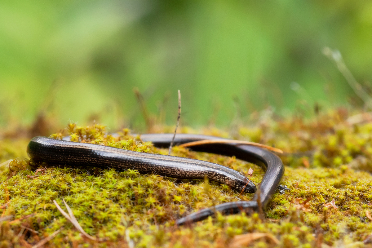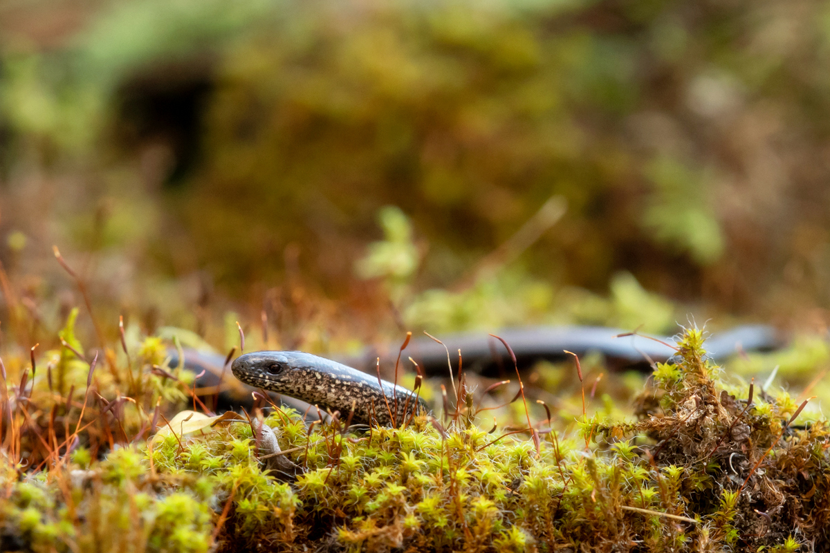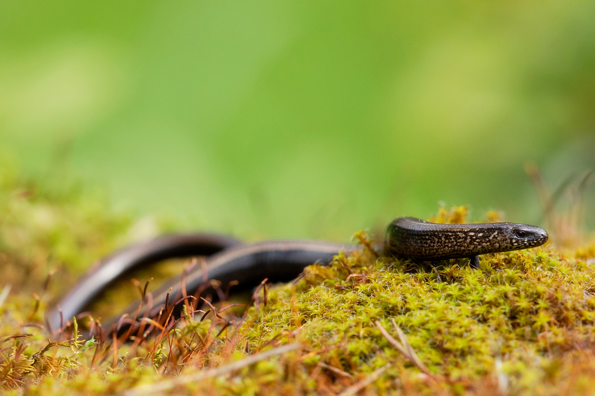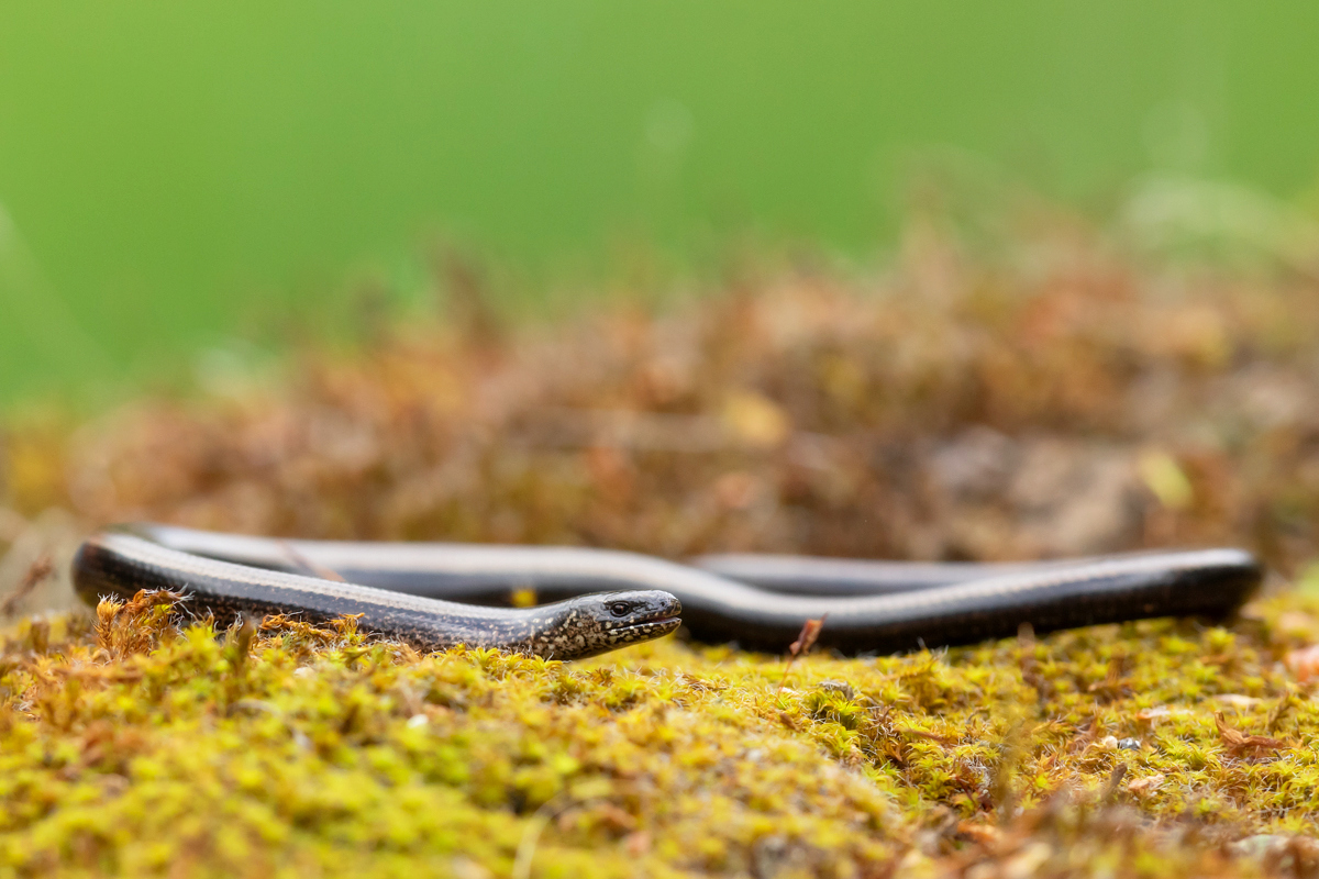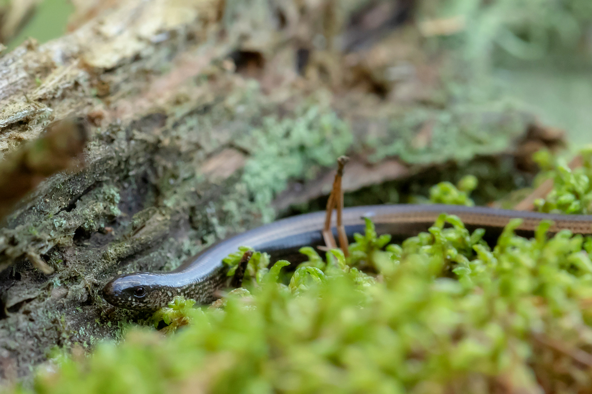 Tę beznogą jaszczurkę udało się sfotografować przemierzając las w poszukiwaniu łosi. Niestety nie zabrałem wyjątkowo swojej 100-tki macro i improwizowałem z innymi obiektywami i to krótko. Niestety w pewnym momencie padalec "zanurkował" we mchu i jego odnalezienie i dalsza sesja była już niemożliwa. No cóż, zdjęcia startowe tej beznogiej jaszczurki powstały, choć jak pomyślę jakie mogły by powstać z właściwym obiektywem, to złość ogarnia. Wszystkiego nosić sie nie da i tym razem ucierpiała na tym jakość zdjęć. A wszystko to z powodu jego niewielkich rozmiarów. Wprawdzie długość ciała to kilkadziesiąt centymetrów (nie przekracza pół metra), ale jest cienki, nie mówiąc już o maleńkiej główce, którą aby wyeksponować na zdjęci, trzeba nie lada powiększenia lub dużego zbliżenia podczas fotografowania. Tym razem wygrał wariant pierwszy, kosztem jakości zdjęć.