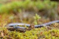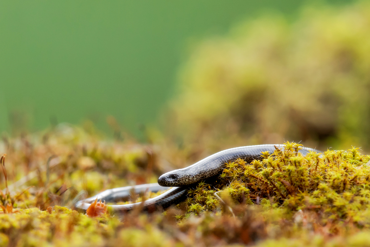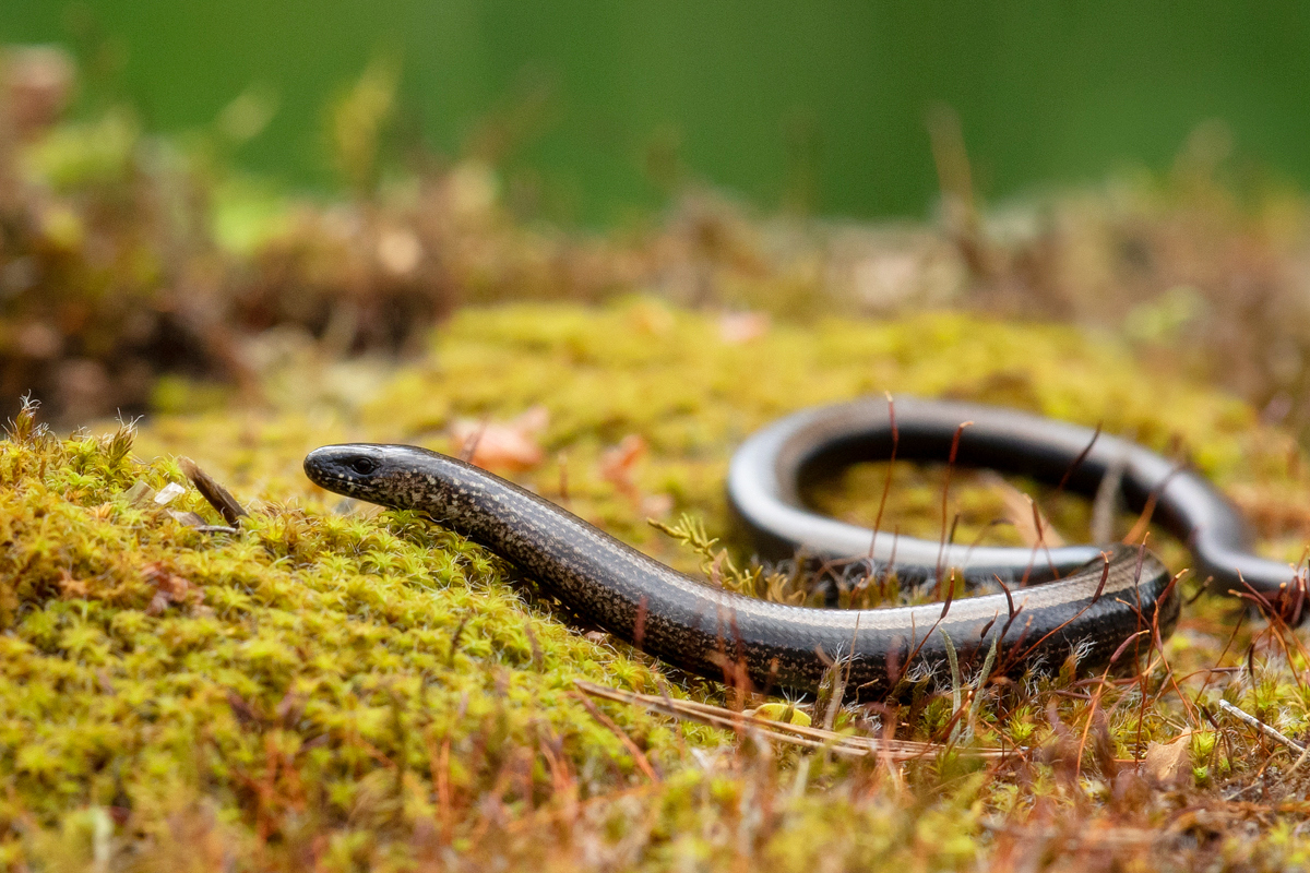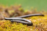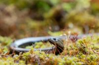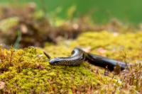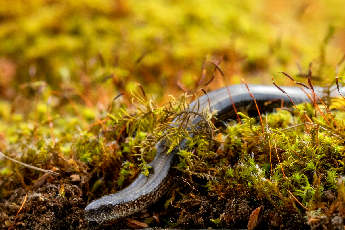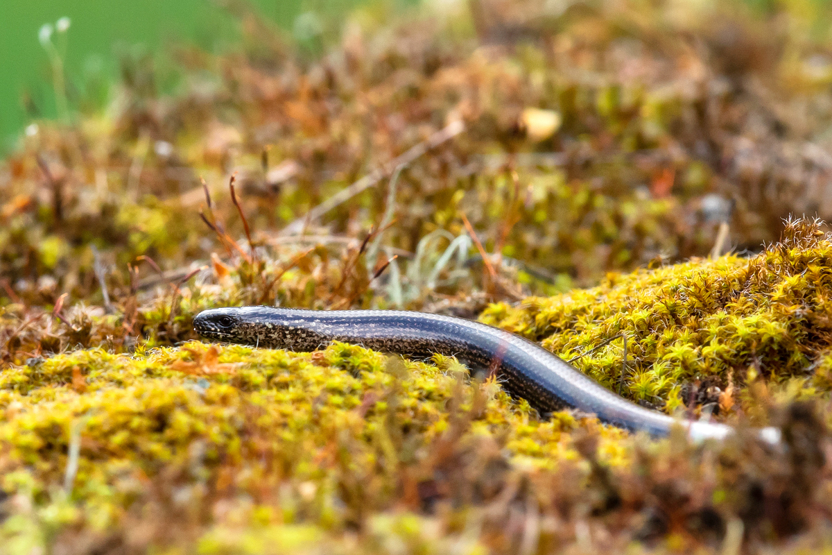 Tę beznogą jaszczurkę udało się sfotografować przemierzając las w poszukiwaniu łosi. Niestety nie zabrałem wyjątkowo swojej 100-tki macro i improwizowałem z innymi obiektywami i to krótko. Niestety w pewnym momencie padalec "zanurkował" we mchu i jego odnalezienie i dalsza sesja była już niemożliwa. No cóż, zdjęcia startowe tej beznogiej jaszczurki powstały, choć jak pomyślę jakie mogły by powstać z właściwym obiektywem, to złość ogarnia. Wszystkiego nosić sie nie da i tym razem ucierpiała na tym jakość zdjęć. A wszystko to z powodu jego niewielkich rozmiarów. Wprawdzie długość ciała to kilkadziesiąt centymetrów (nie przekracza pół metra), ale jest cienki, nie mówiąc już o maleńkiej główce, którą aby wyeksponować na zdjęci, trzeba nie lada powiększenia lub dużego zbliżenia podczas fotografowania. Tym razem wygrał wariant pierwszy, kosztem jakości zdjęć.