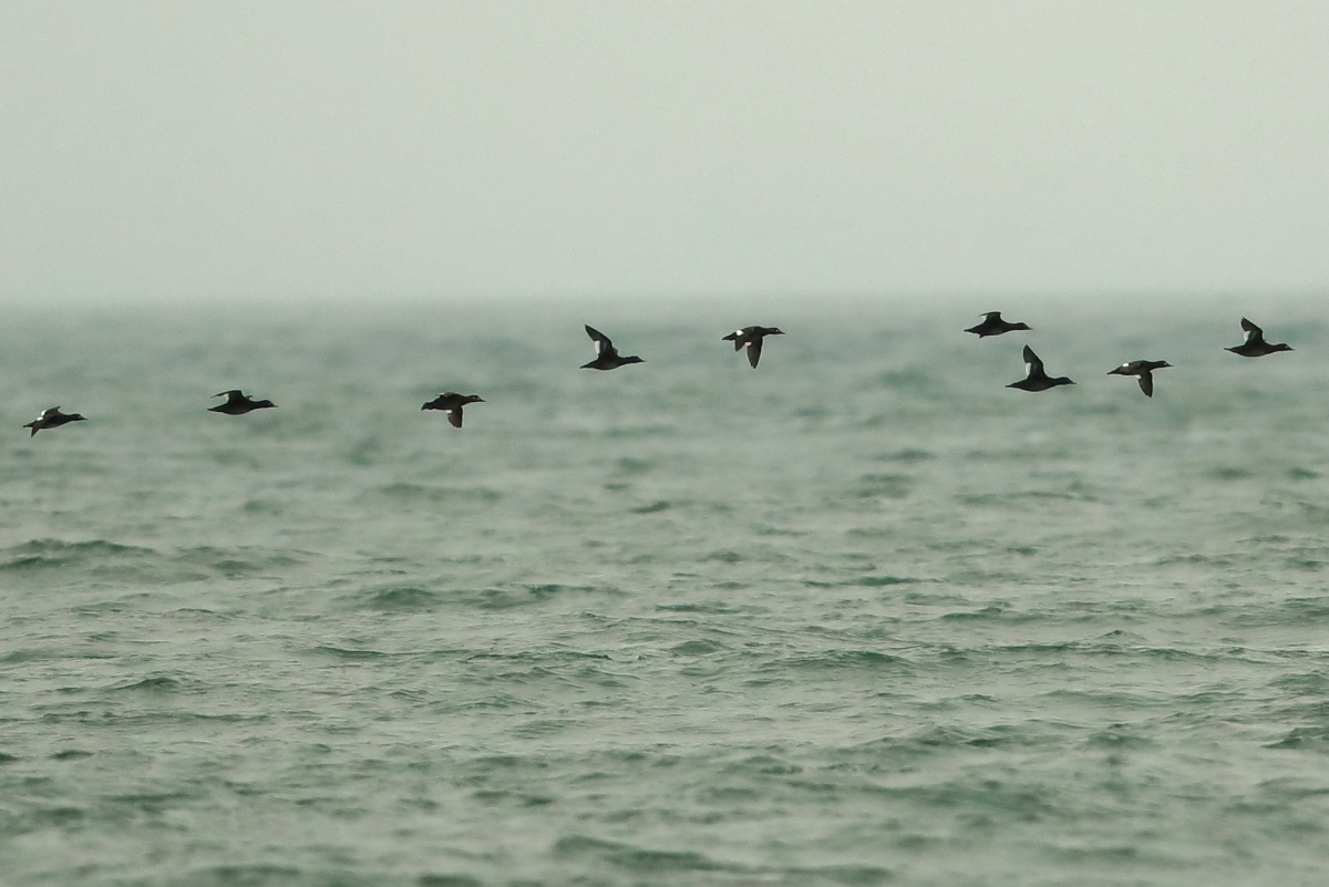 Aby sfotografować uhlę trzeba było wybrać się na zimowy rejs po Bałtyku. 8 -godzinny rejs jest wystarczający dla obserwatorów ptaków, ale nie okazał się wystarczający dla zrobienia dobrych zdjęć. Można powiedzieć, że pogoda dopisała, bo poranne falowanie morza z godziny na godzinę malało. Niestety z małymi przerwami towarzyszyła nam mgła prawie przez cały dzień. Tak powstała kolejna ptasia galeria, gatunku zaliczanego do fauny Polski, niestety z bardzo skromną zawartością. Dla mnie, mimo wszystko, jest powód do zadowolenia, bo uhle nie należą do powszechnie występujących ptaków i nie jest łatwym je sfotografować. Regularnie zimują u wybrzeży Polski, ale często trzymają sie z dala od brzegu. Na brak ptaków nie można było narzekać. Czasami w kadrze można było naliczyć kilkadziesiąt osobników, niestety jako czarne kropki. Tak, uhle były bardzo płochliwe i zachowywały zawsze znaczny dystans. Niemniej jednak galerię założyć trzeba, bo będzie co doskonalić, choć o kolejne spotkanie z uhlami pewnie nie będzie łatwo...